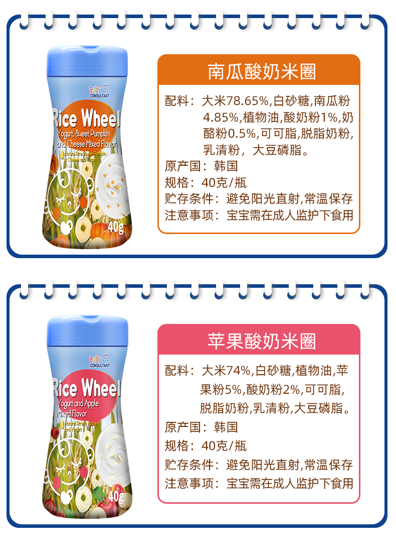 宝贝顾问米圈酸奶泡芙圈宝宝零食儿童零食韩国进口40g