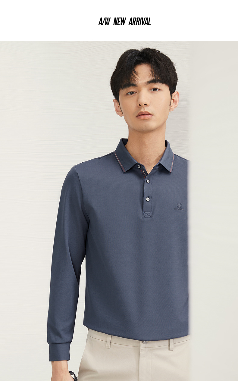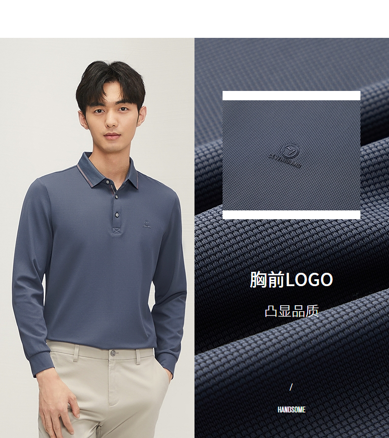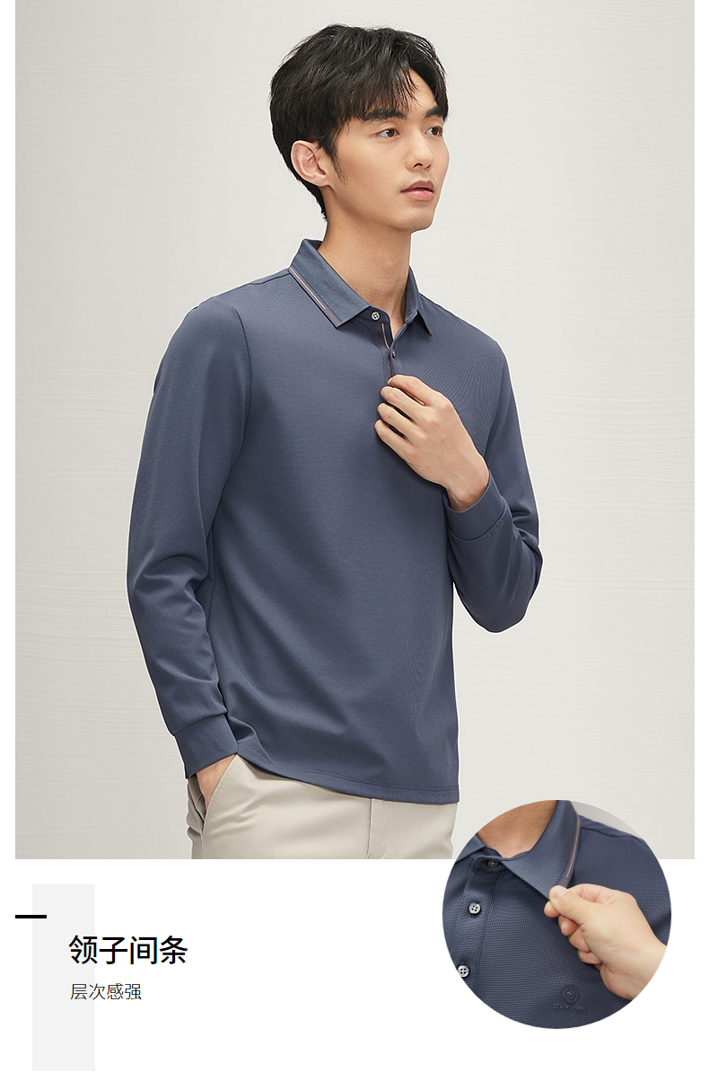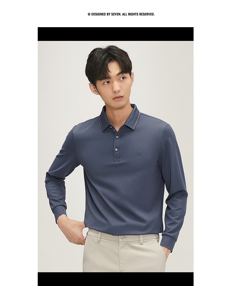 【不变形领】柒牌polo衫男士长袖2024秋冬新款商务百搭华夫格T恤 127T70290