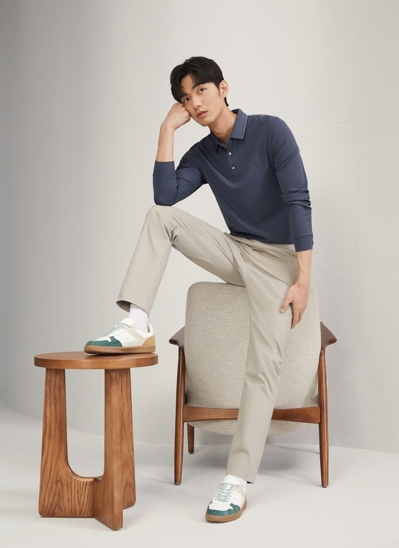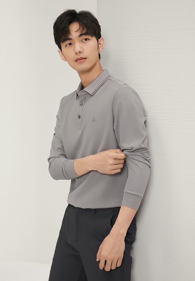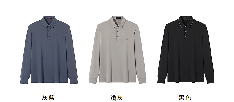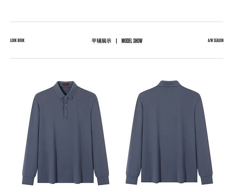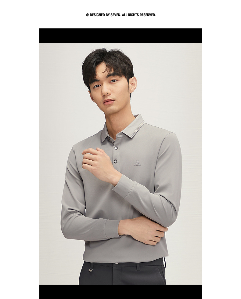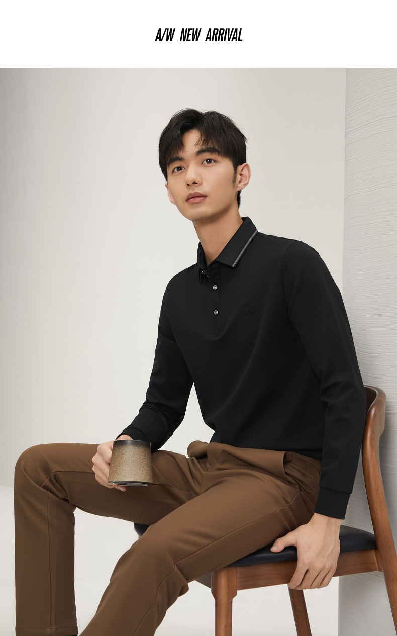 【不变形领】柒牌polo衫男士长袖2024秋冬新款商务百搭华夫格T恤 127T70290