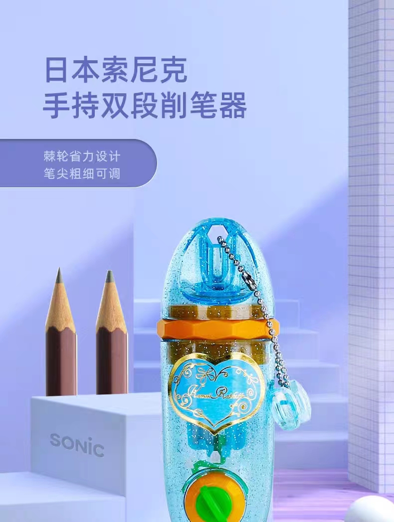 日本SONIC索尼克手持双段迷你棘轮式削笔器卷笔刀学生用可调笔尖转笔刀
