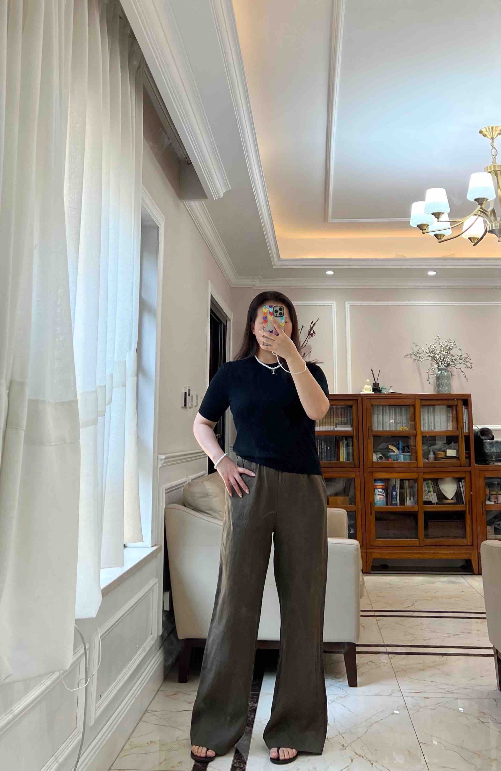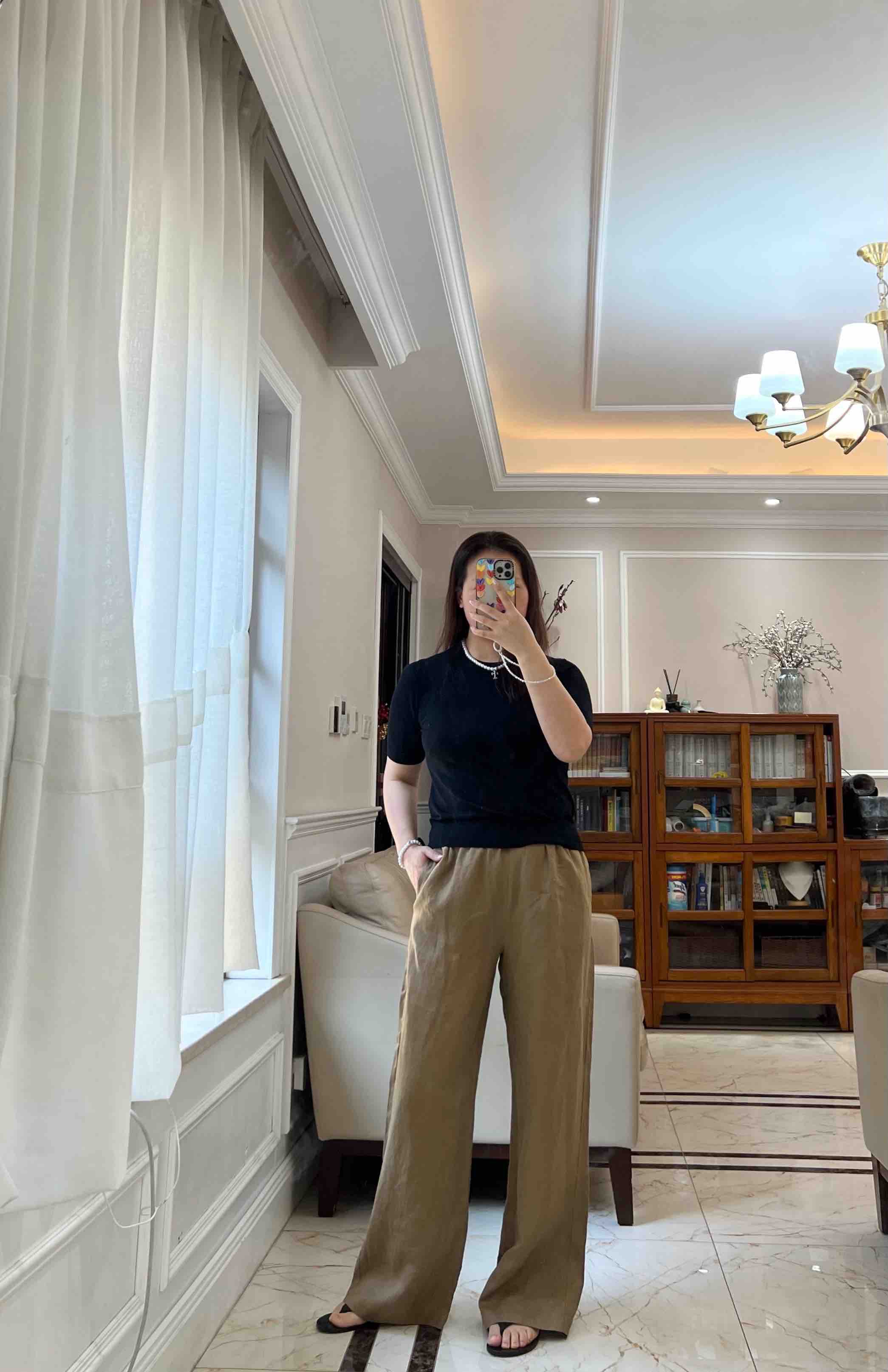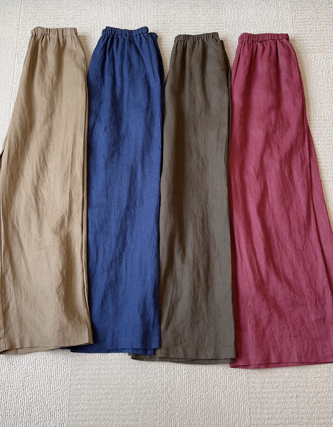 略有色差,大家以实物颜色为准哈。这条亚麻阔腿裤真的无槽点,天然的面料,穿上身感觉会呼吸,轻盈舒适,飘逸垂坠,吸汗、防臭、亲肤透气~自然高级~~~