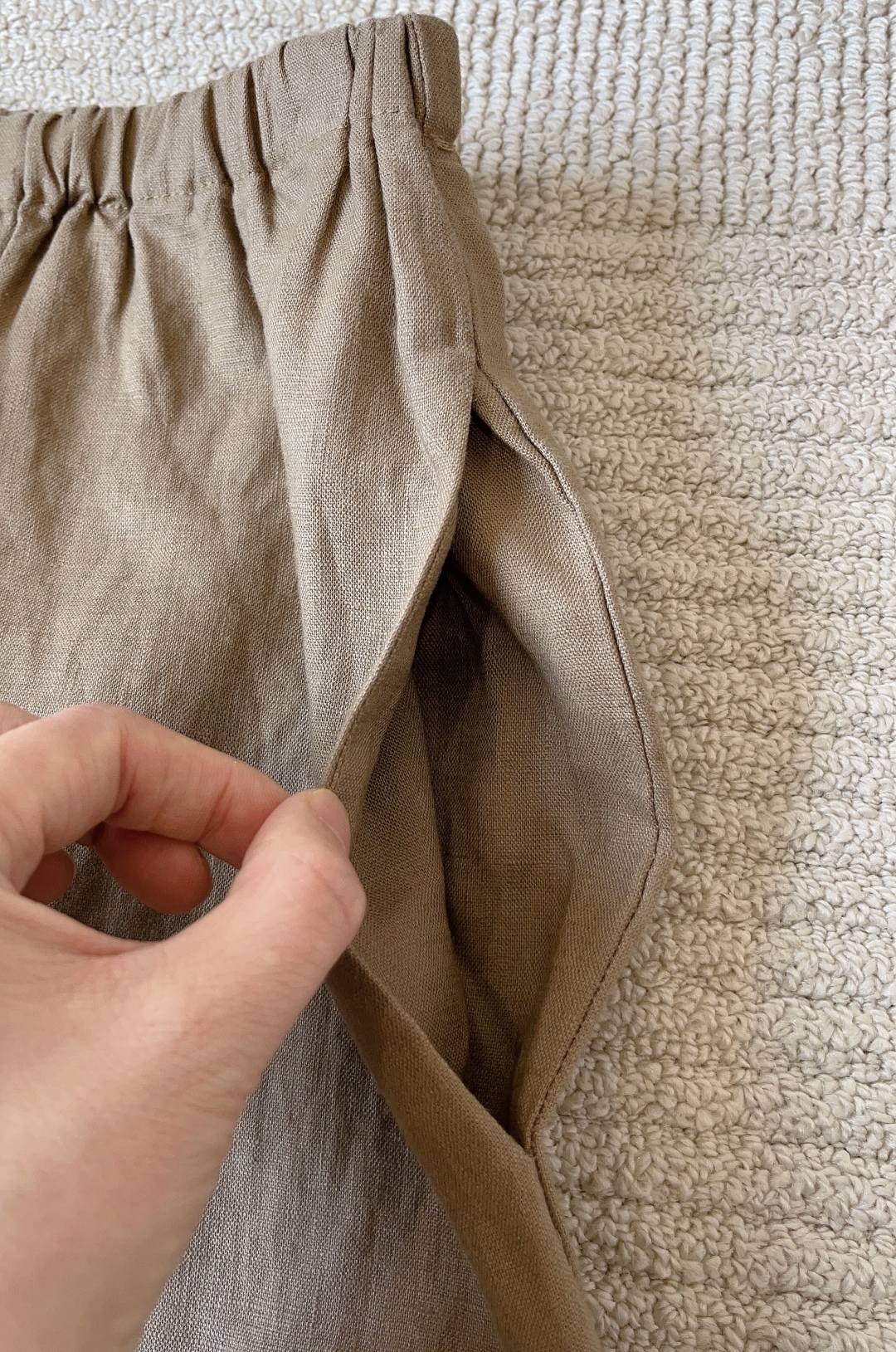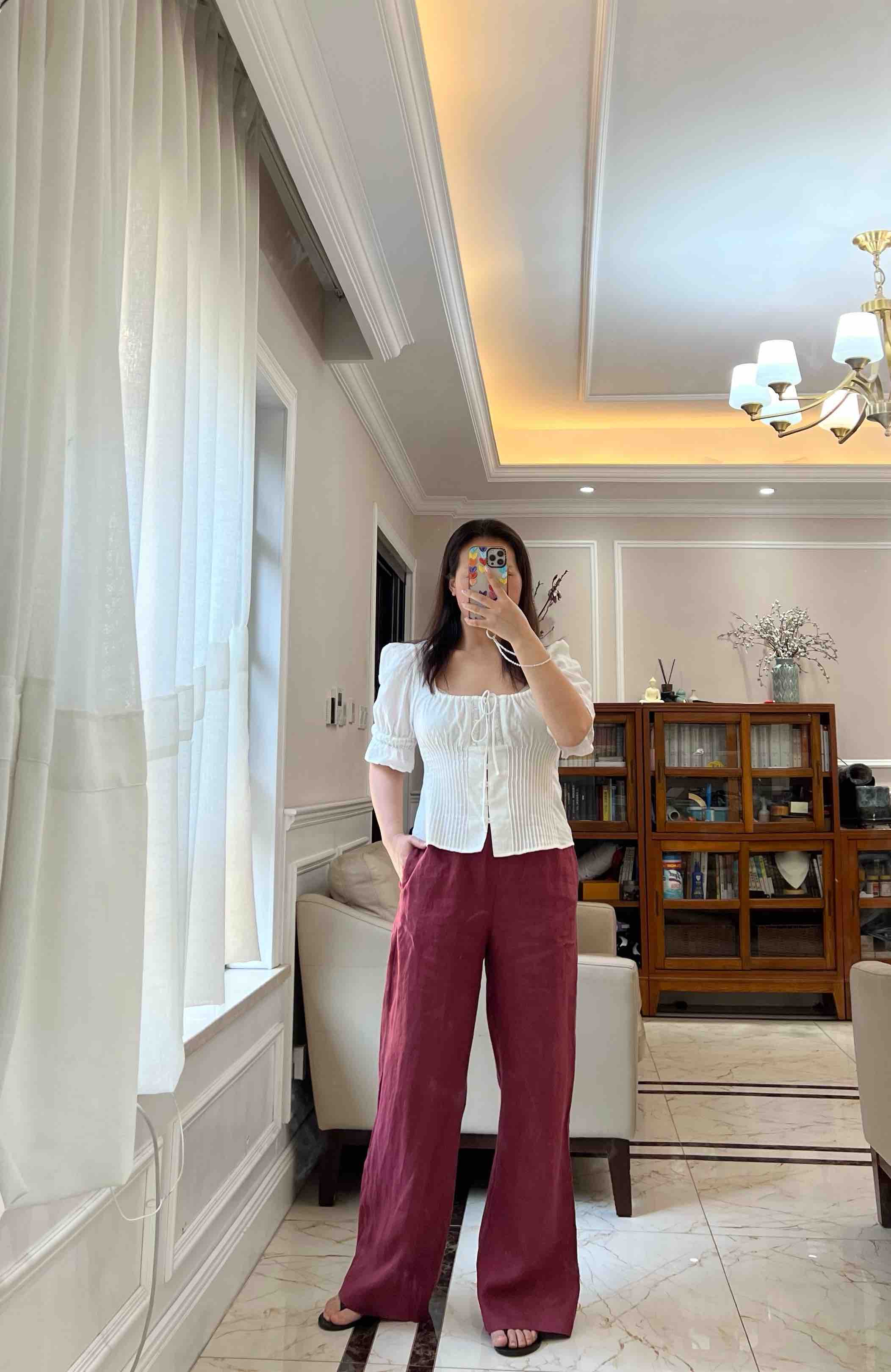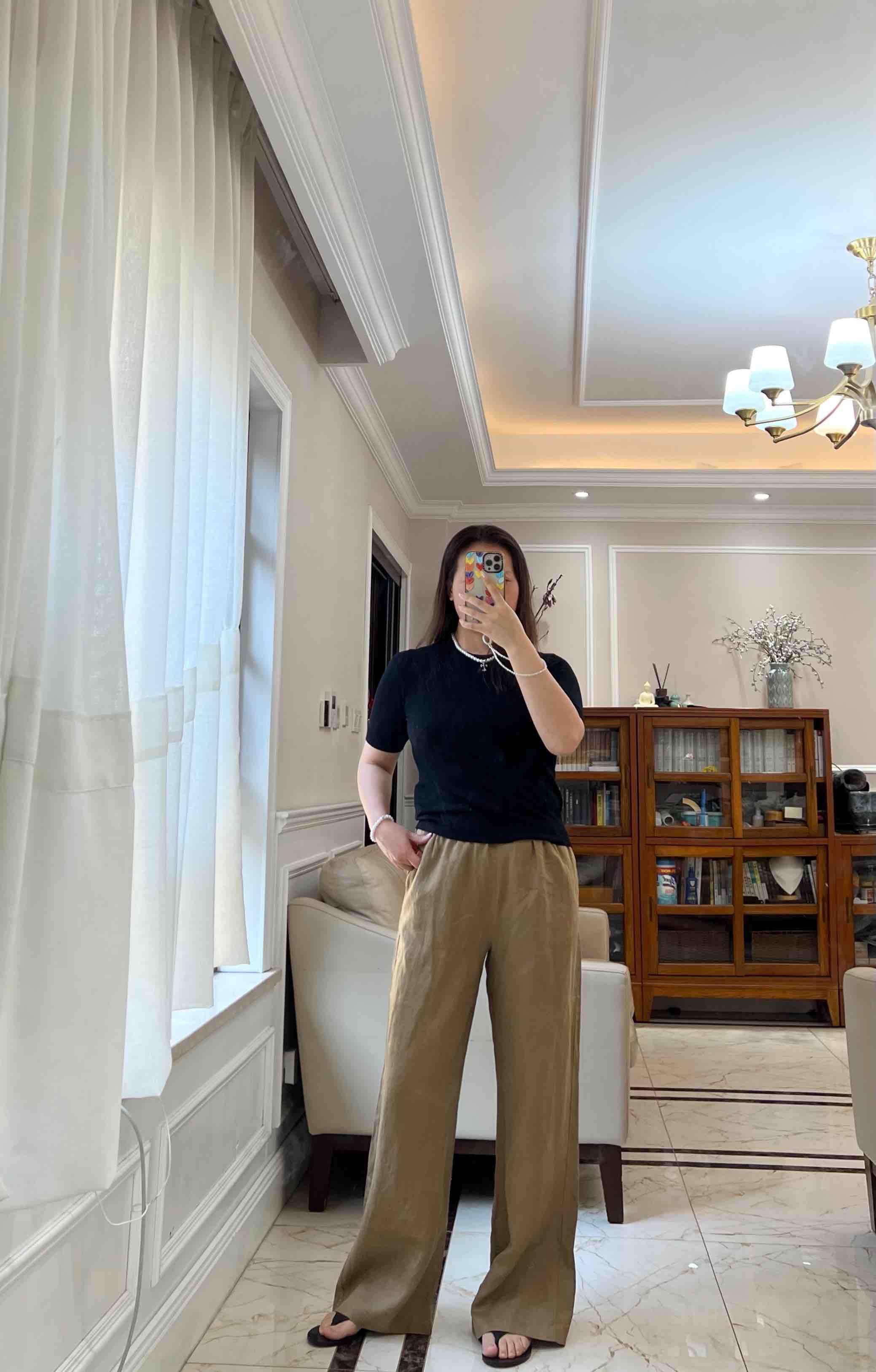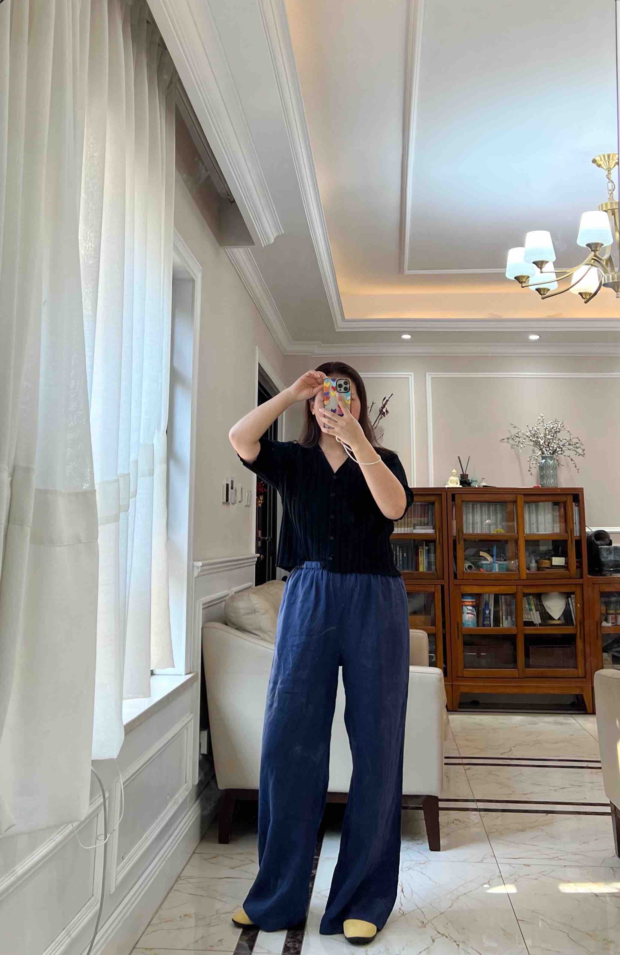 略有色差,大家以实物颜色为准哈。这条亚麻阔腿裤真的无槽点,天然的面料,穿上身感觉会呼吸,轻盈舒适,飘逸垂坠,吸汗、防臭、亲肤透气~自然高级~~~