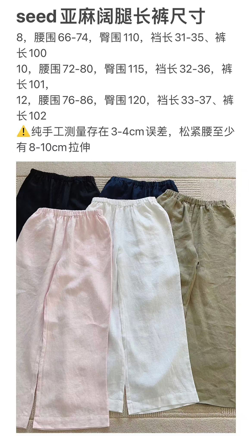 312-8 纯圆正 新配色 SEED亚麻阔腿长裤 很快会断码 我穿12码宽松效果