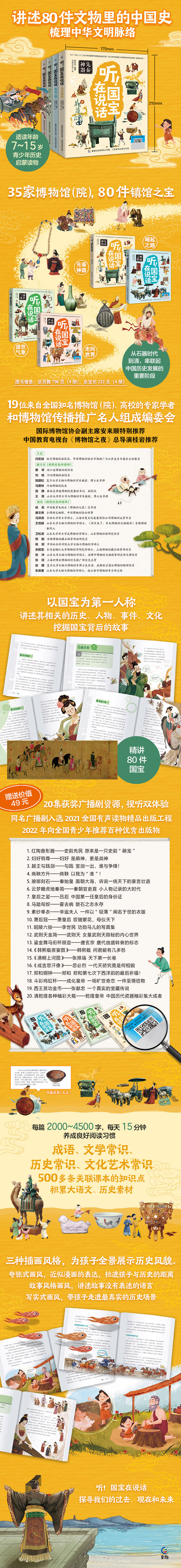 《听!国宝在说话》系列图书,一共4册,讲述80件文物里的中国史,梳理中华文明脉络,是7~15岁青少年历史启蒙读物。