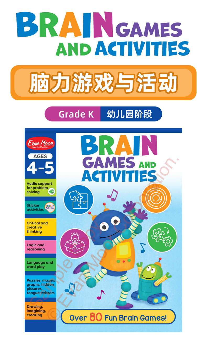 【中商原版】Brain Games and Activities Ages 4-5 脑力游戏与活动 幼儿园大班4-5岁 Evan-Moor 美国英文原版 学习启蒙练习书