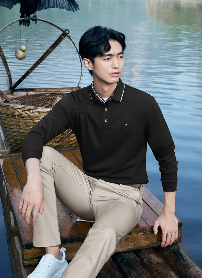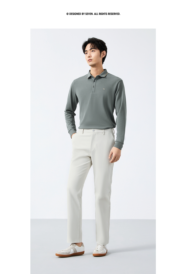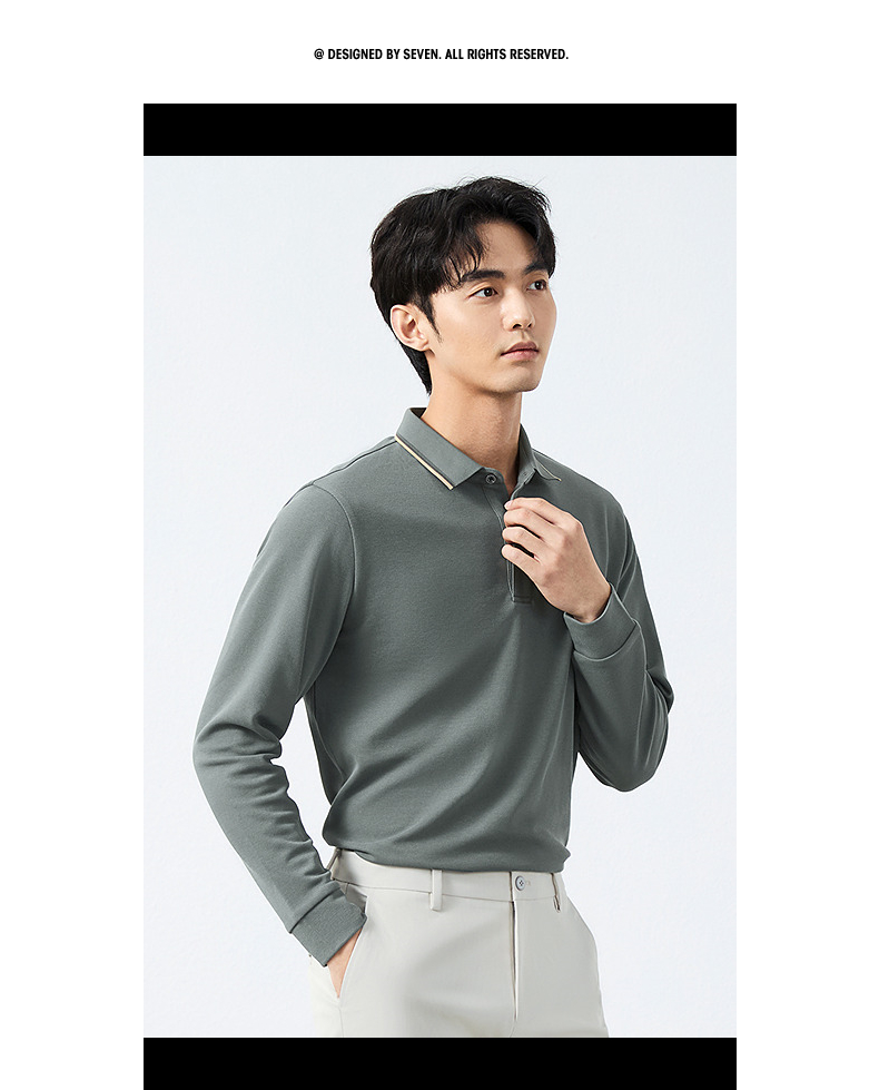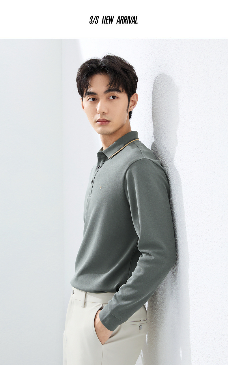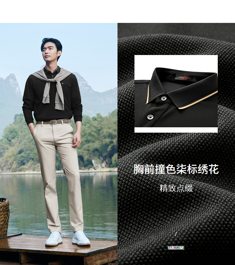 【不变形领】柒牌polo衫男长袖春季新款休闲商务含桑蚕丝翻领上衣128T71730