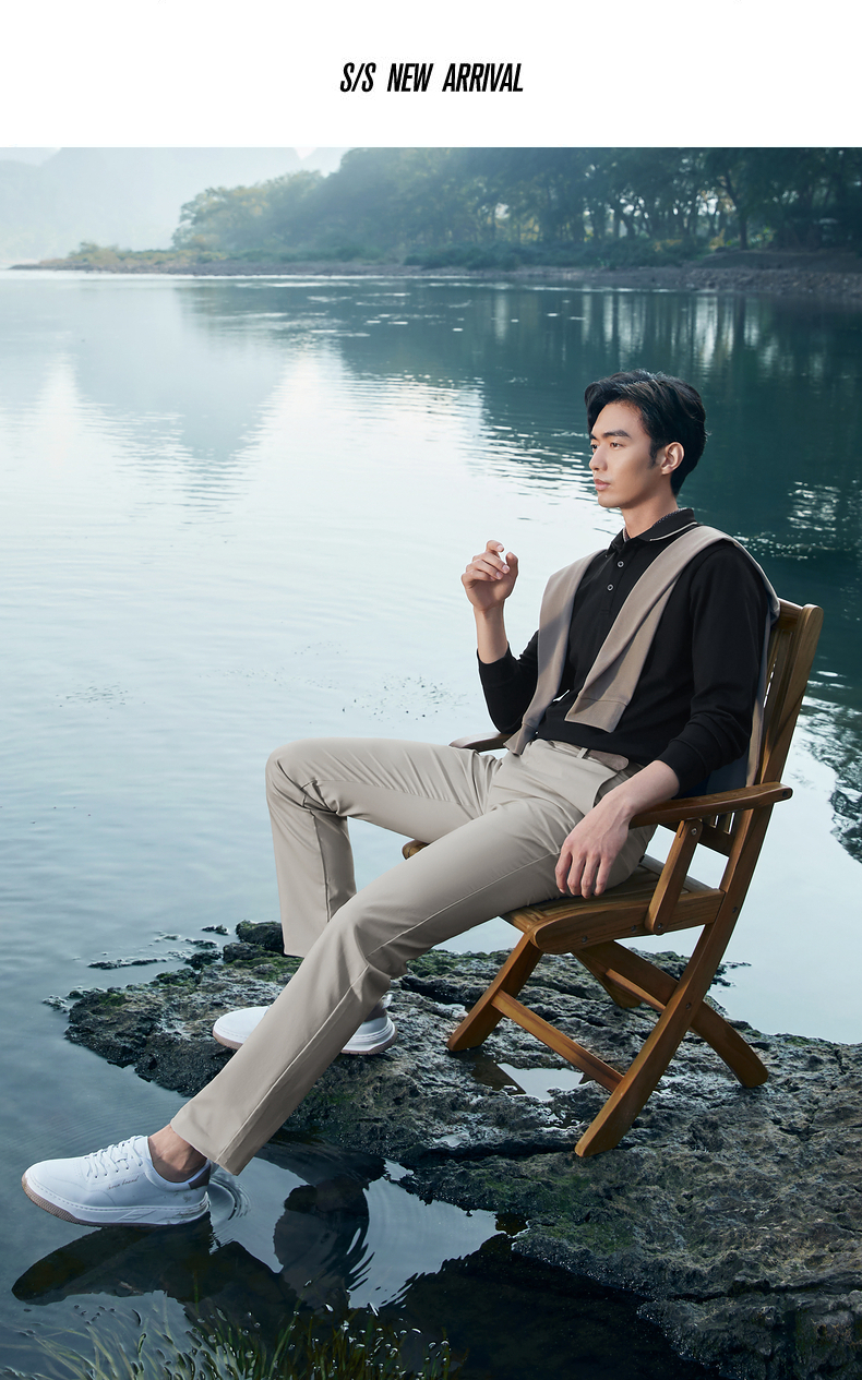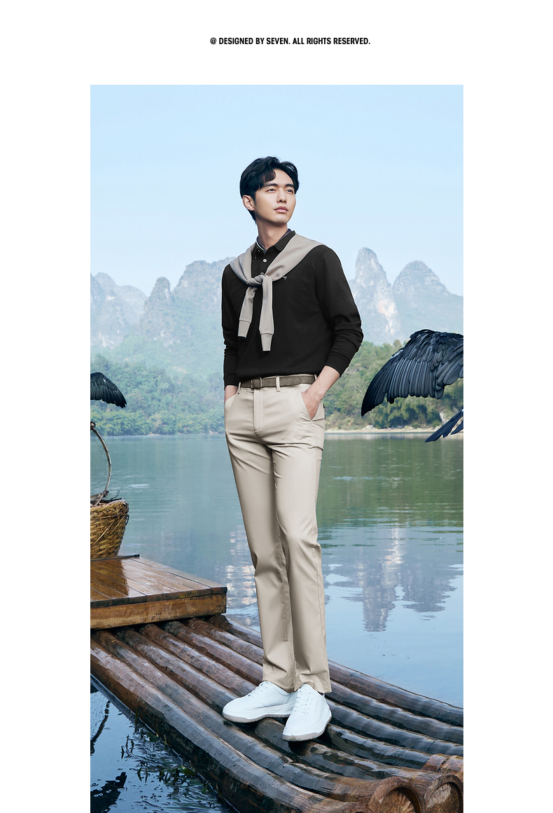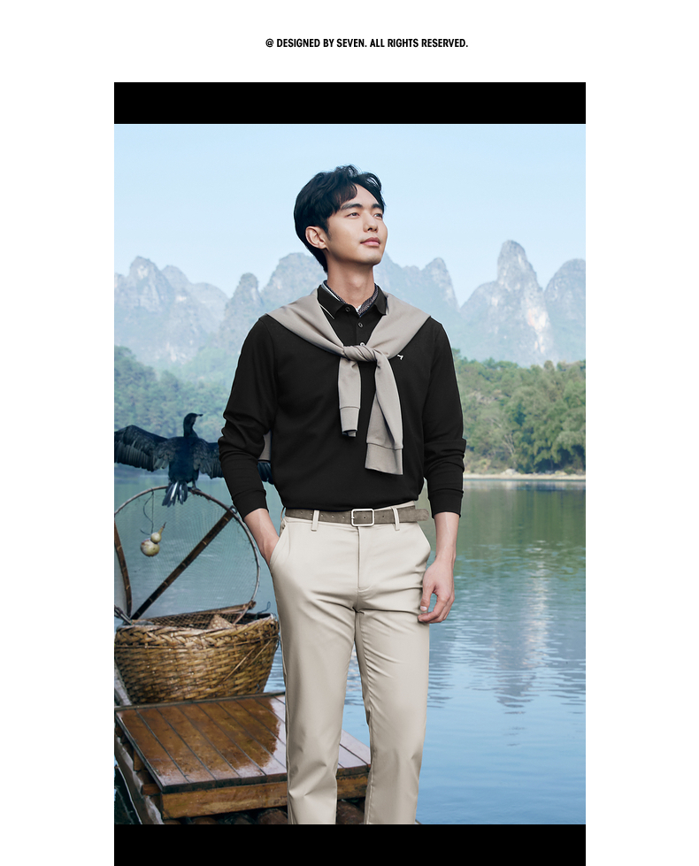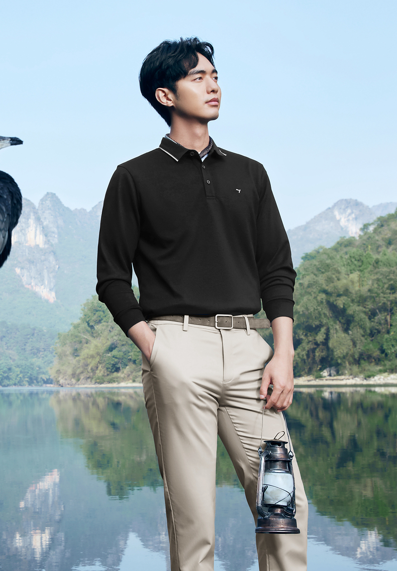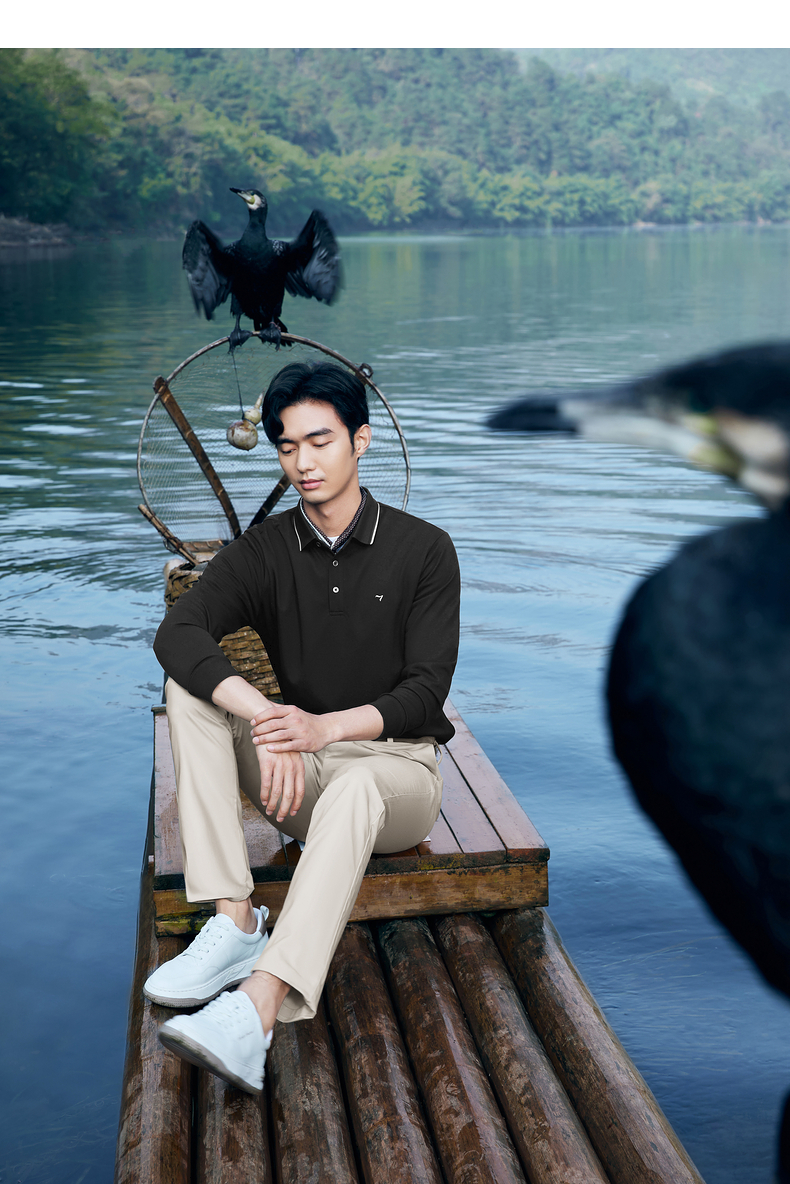【不变形领】柒牌polo衫男长袖春季新款休闲商务含桑蚕丝翻领上衣128T71730