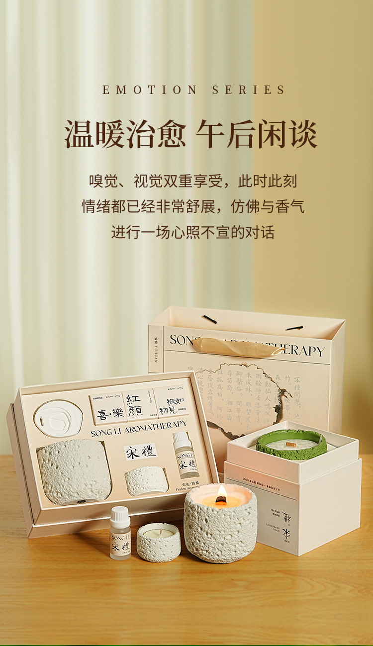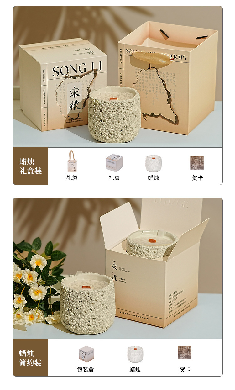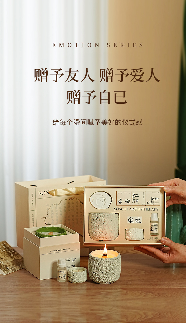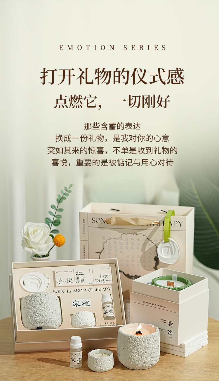 七夕情人节【宋礼冷山香薰蜡烛礼盒】小众高级创意伴手礼品套装 卧室持久香氛摆件
