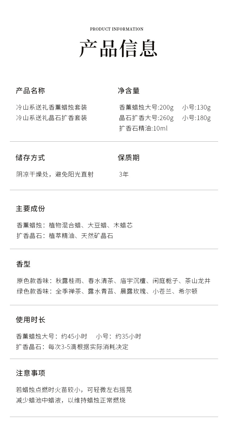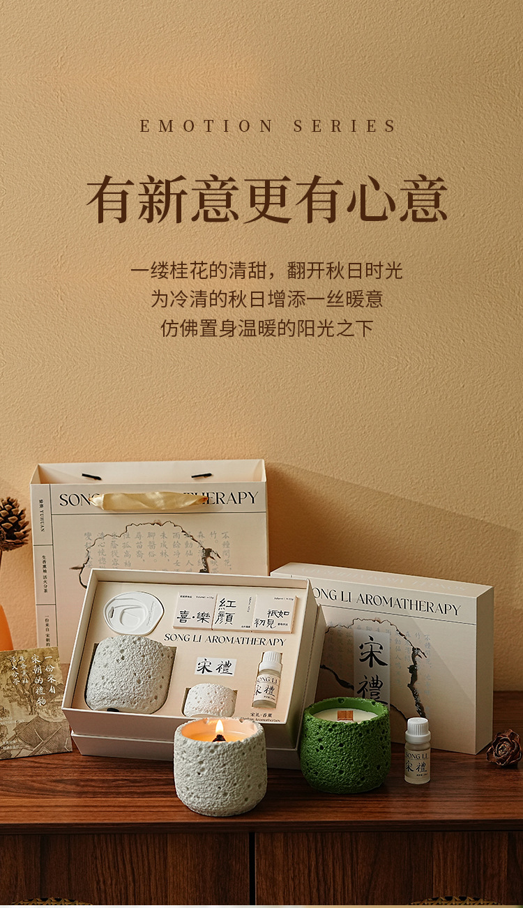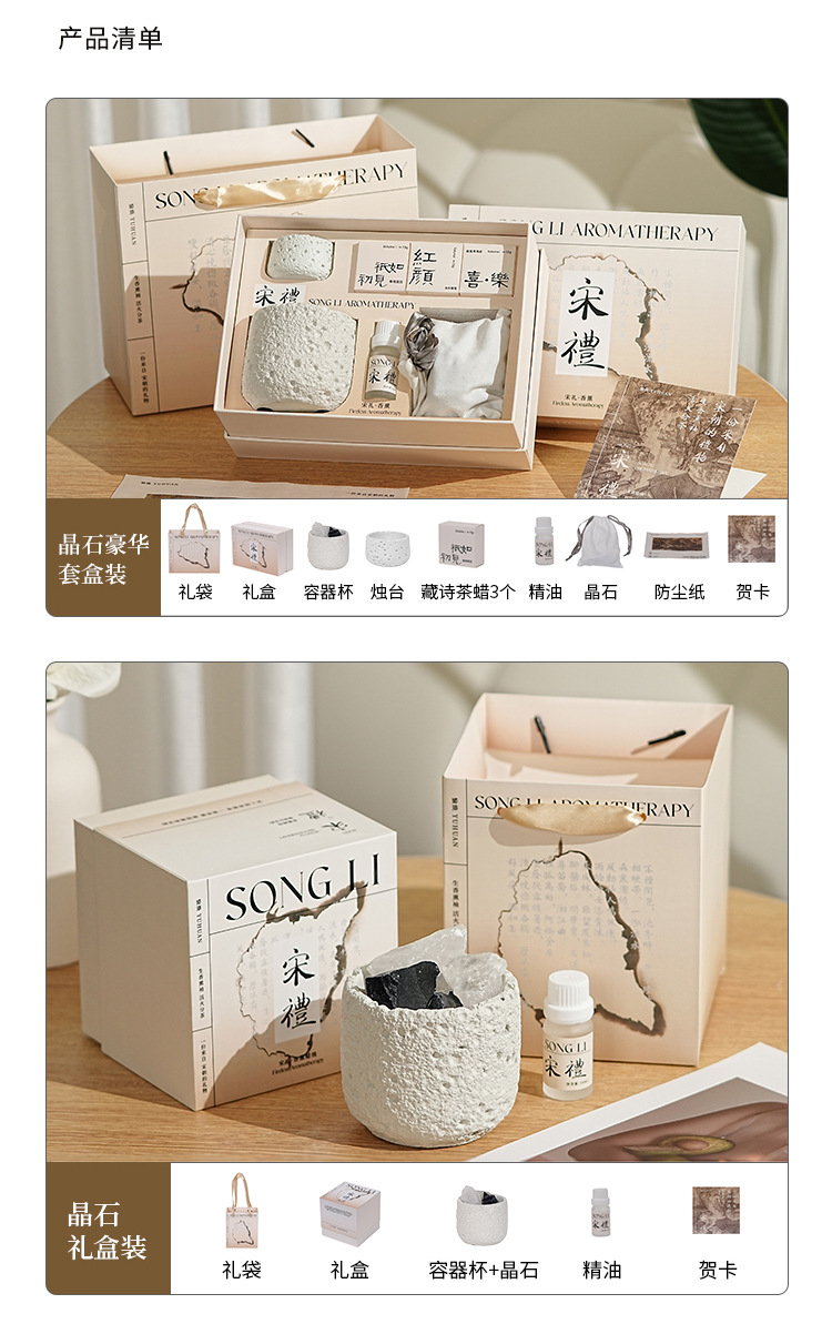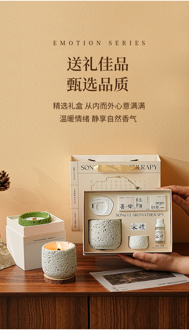 七夕情人节【宋礼冷山香薰蜡烛礼盒】小众高级创意伴手礼品套装 卧室持久香氛摆件
