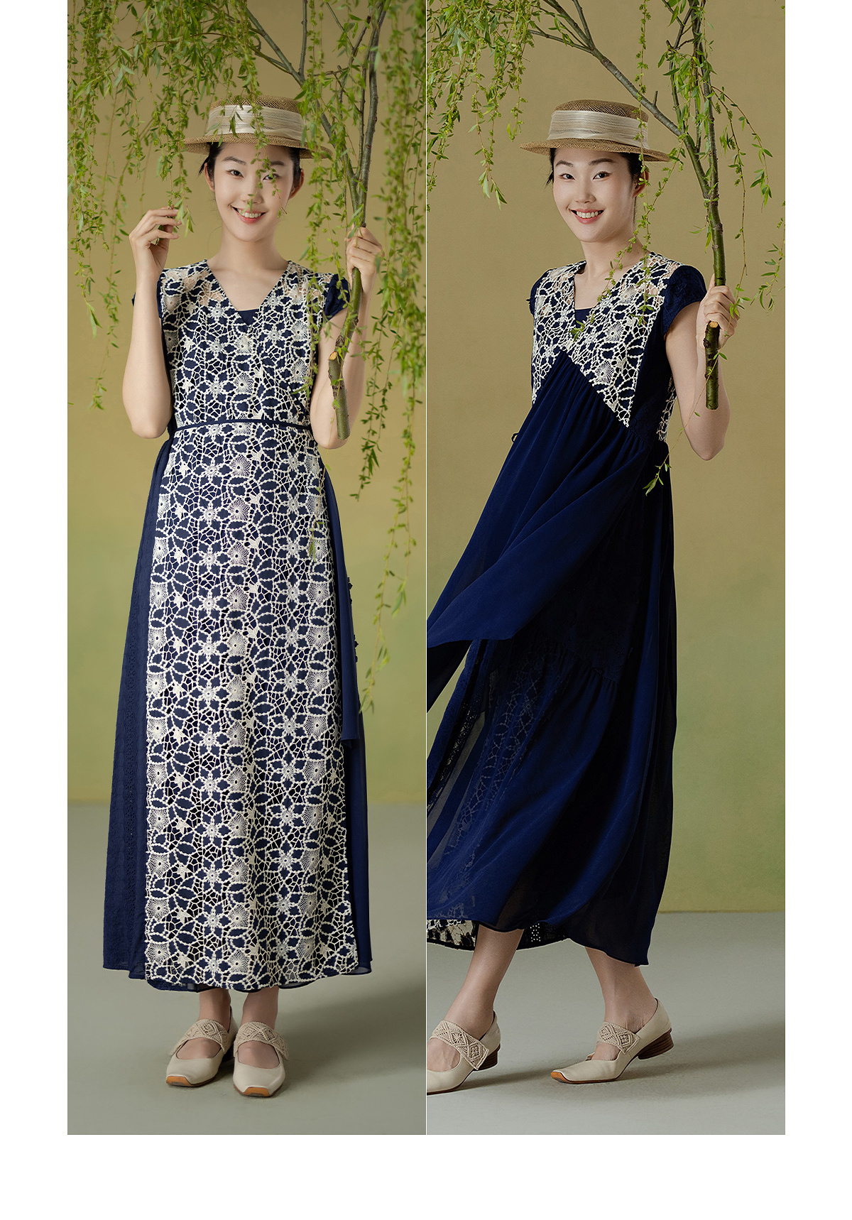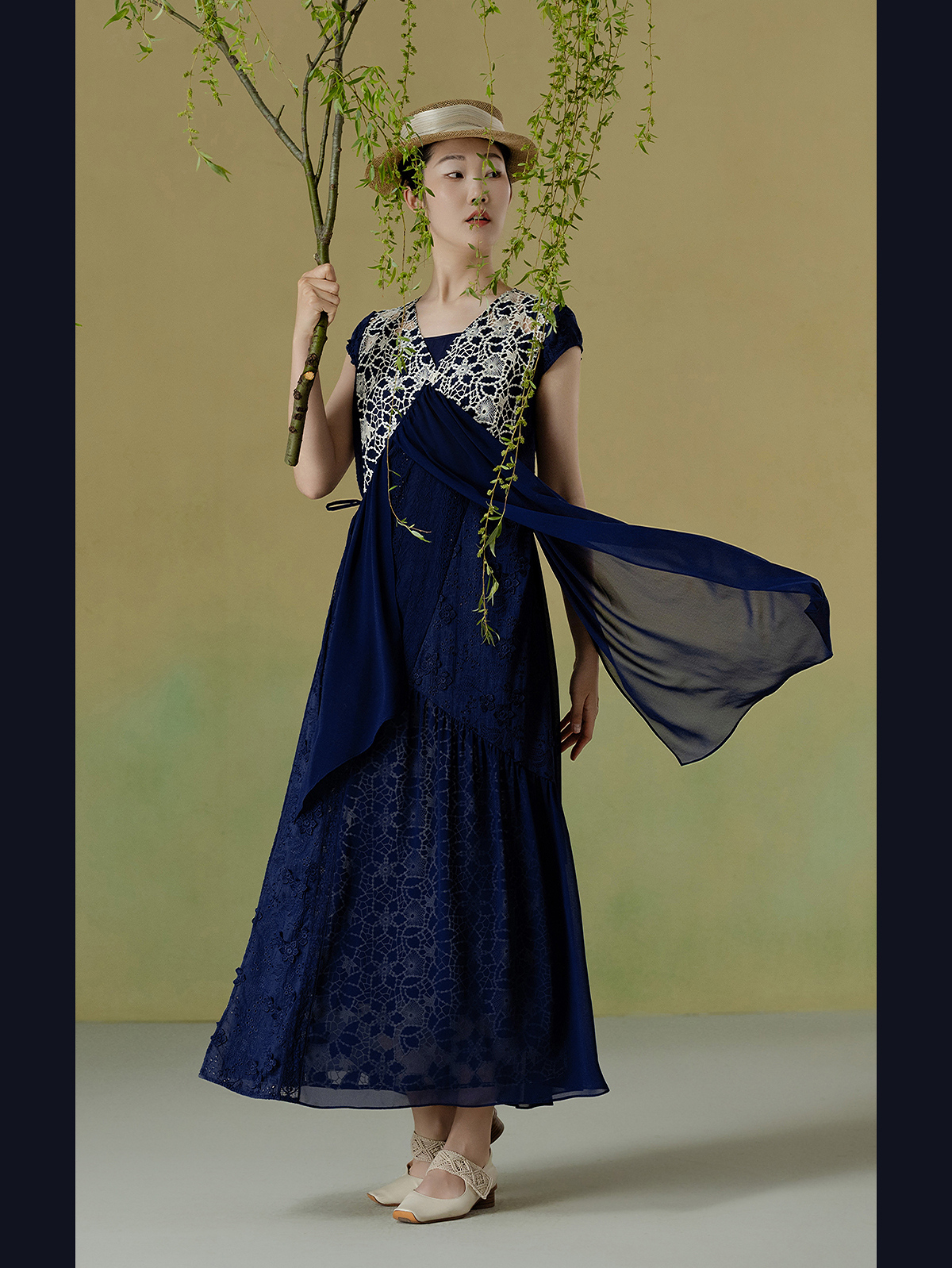 【林栖设计小店】(现货)【两种穿法】蕾丝镂空连衣裙配吊带飞片宽松显瘦2025夏季新品两件套女1952083