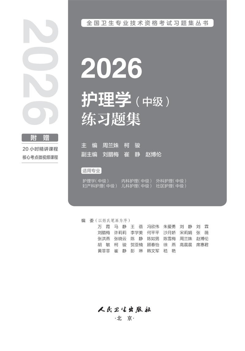 2026护理学(中级)练习题集 全国卫生专业技术资格考试习题集丛书 周兰姝 柯骏 主编 考试用书 2026职称考试 指定 人民卫生出版社