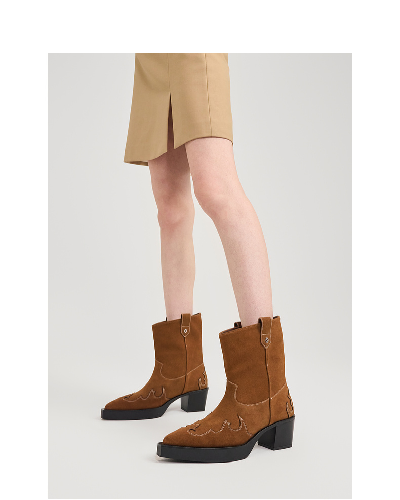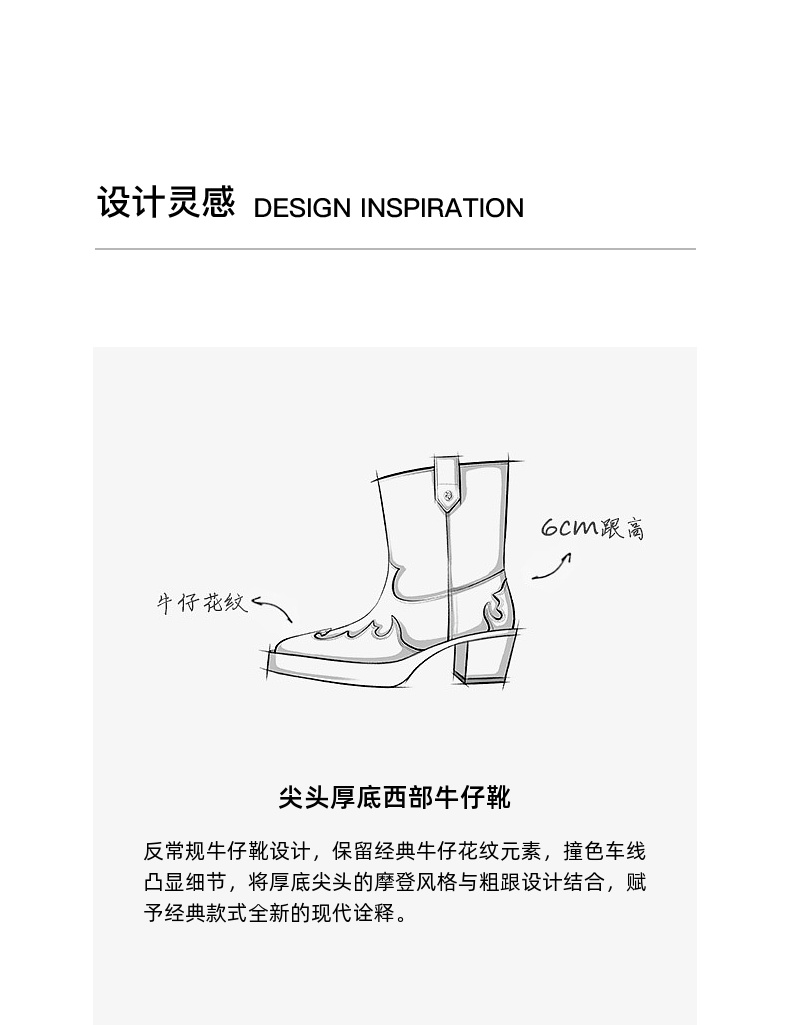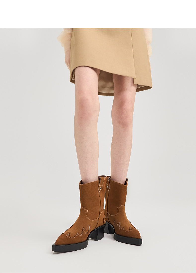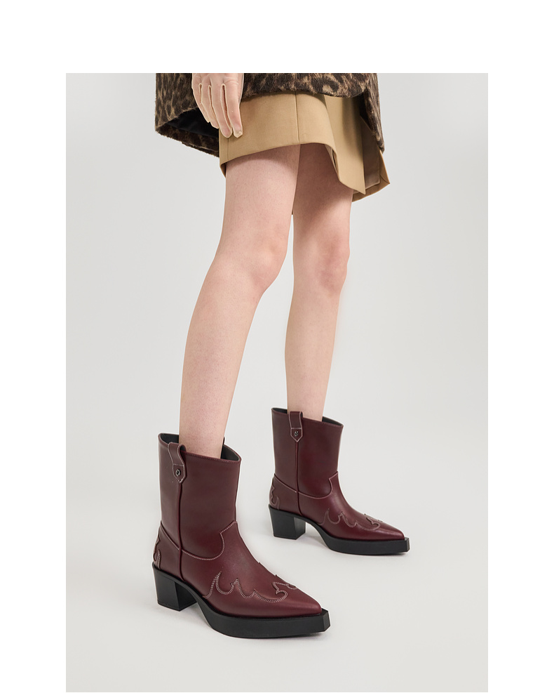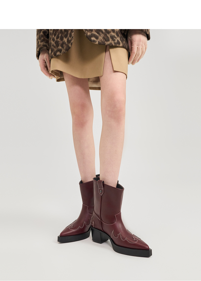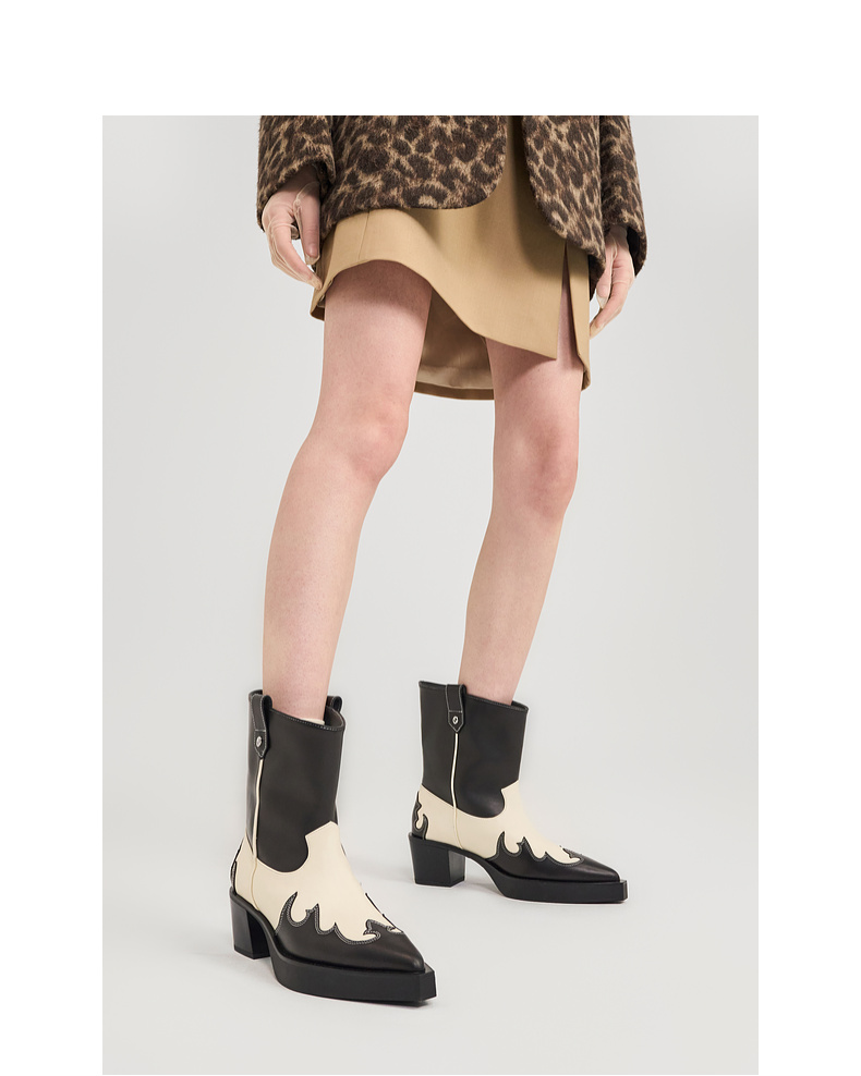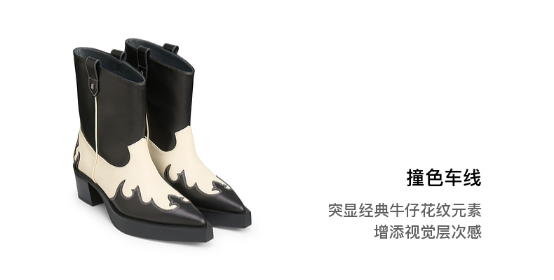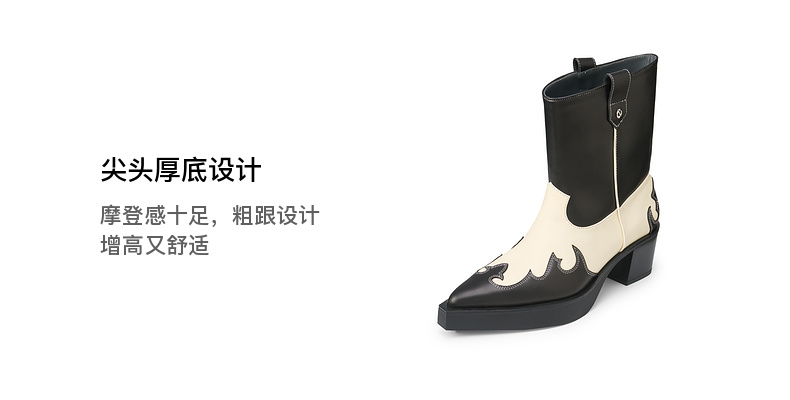 [捡漏价]lost in echo2024秋冬新款尖头黑色厚底高跟西部牛仔靴短靴子女