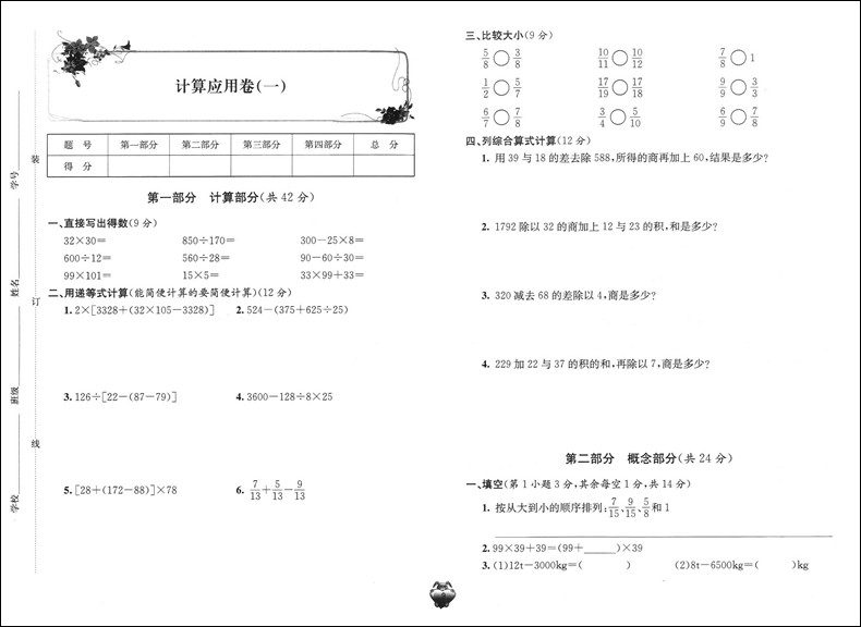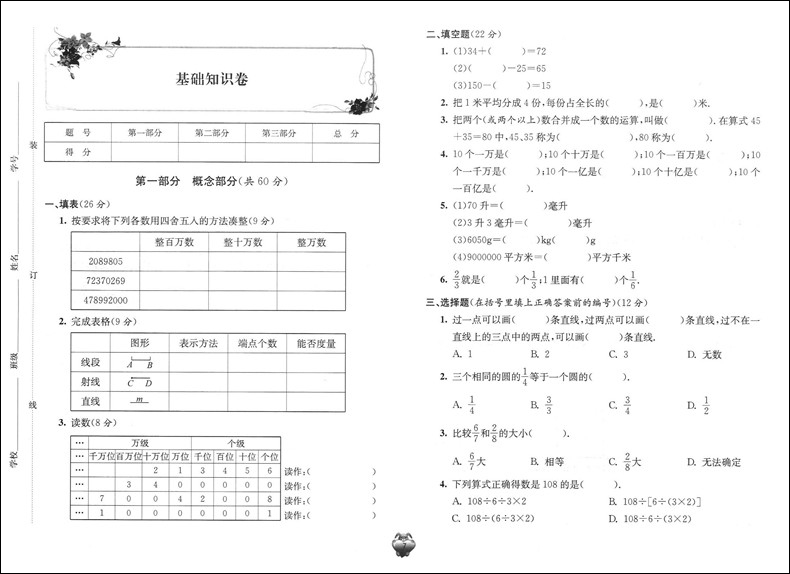 新版 标准期末考卷 数学 四年级第一学期/4年级上 第3版 上海小学教辅 教材配套同步期中期末课后复习试卷 上海各区真卷练习