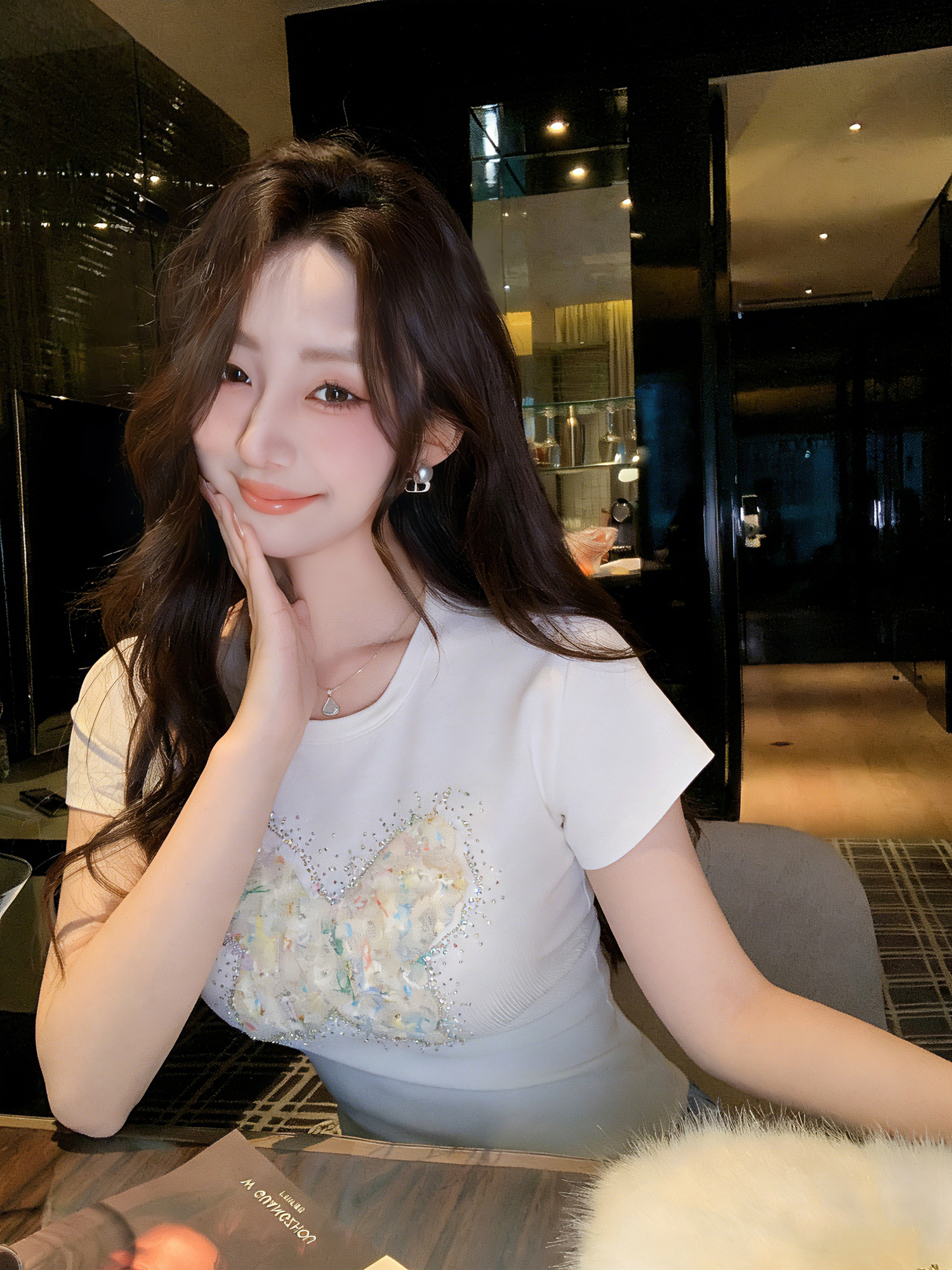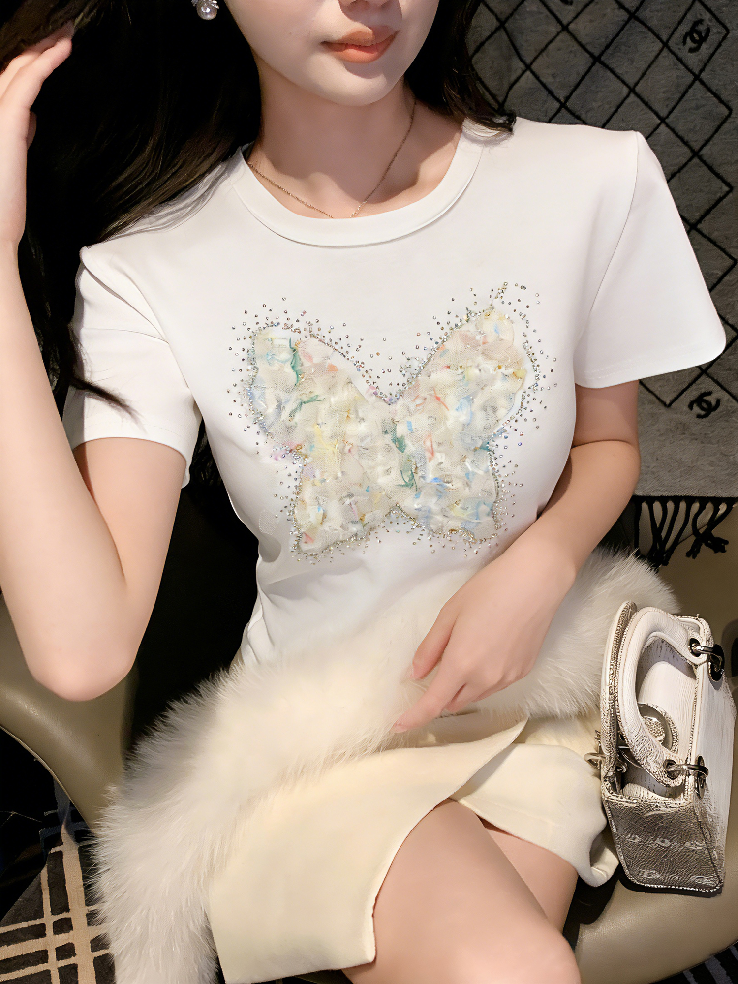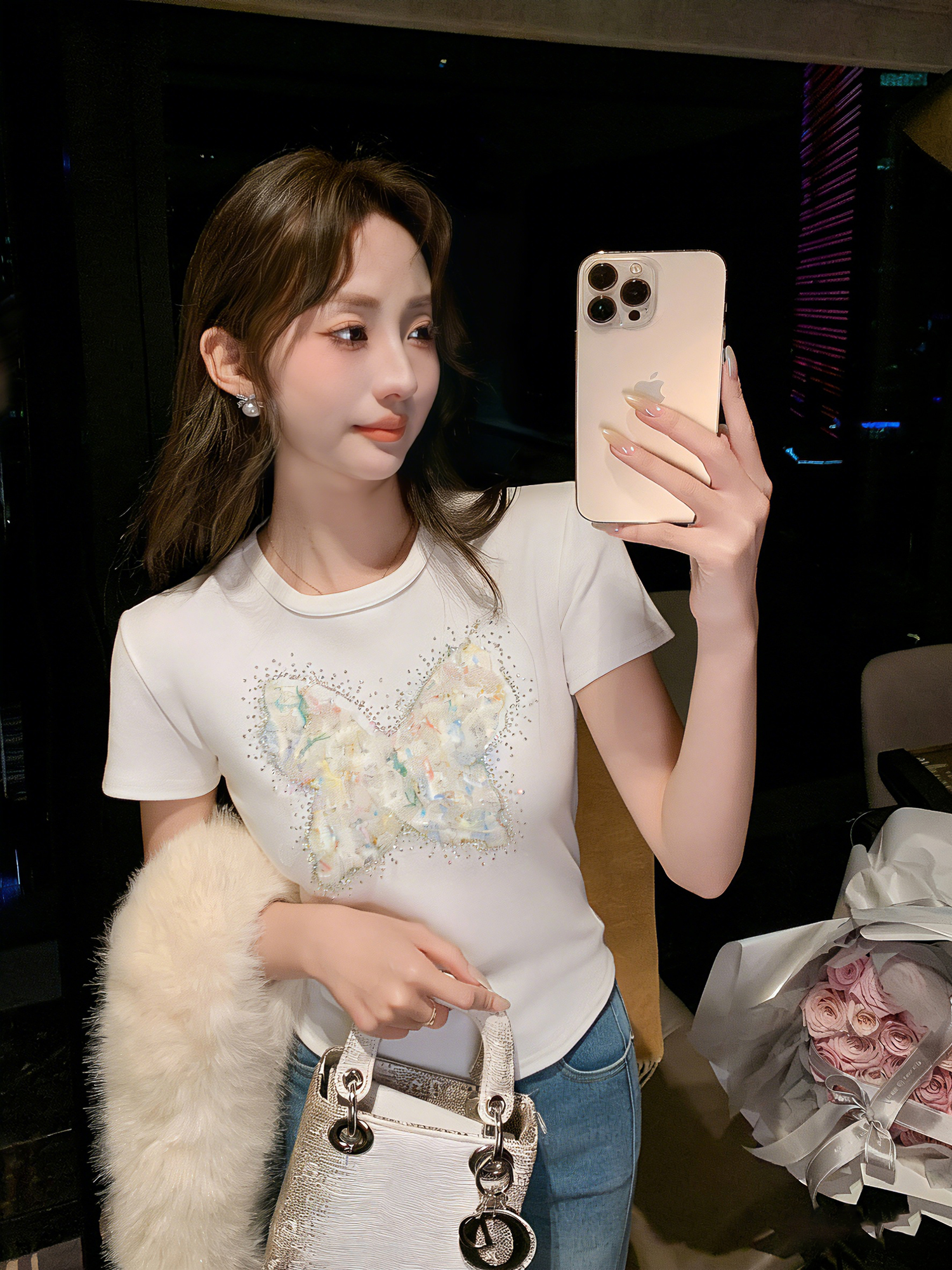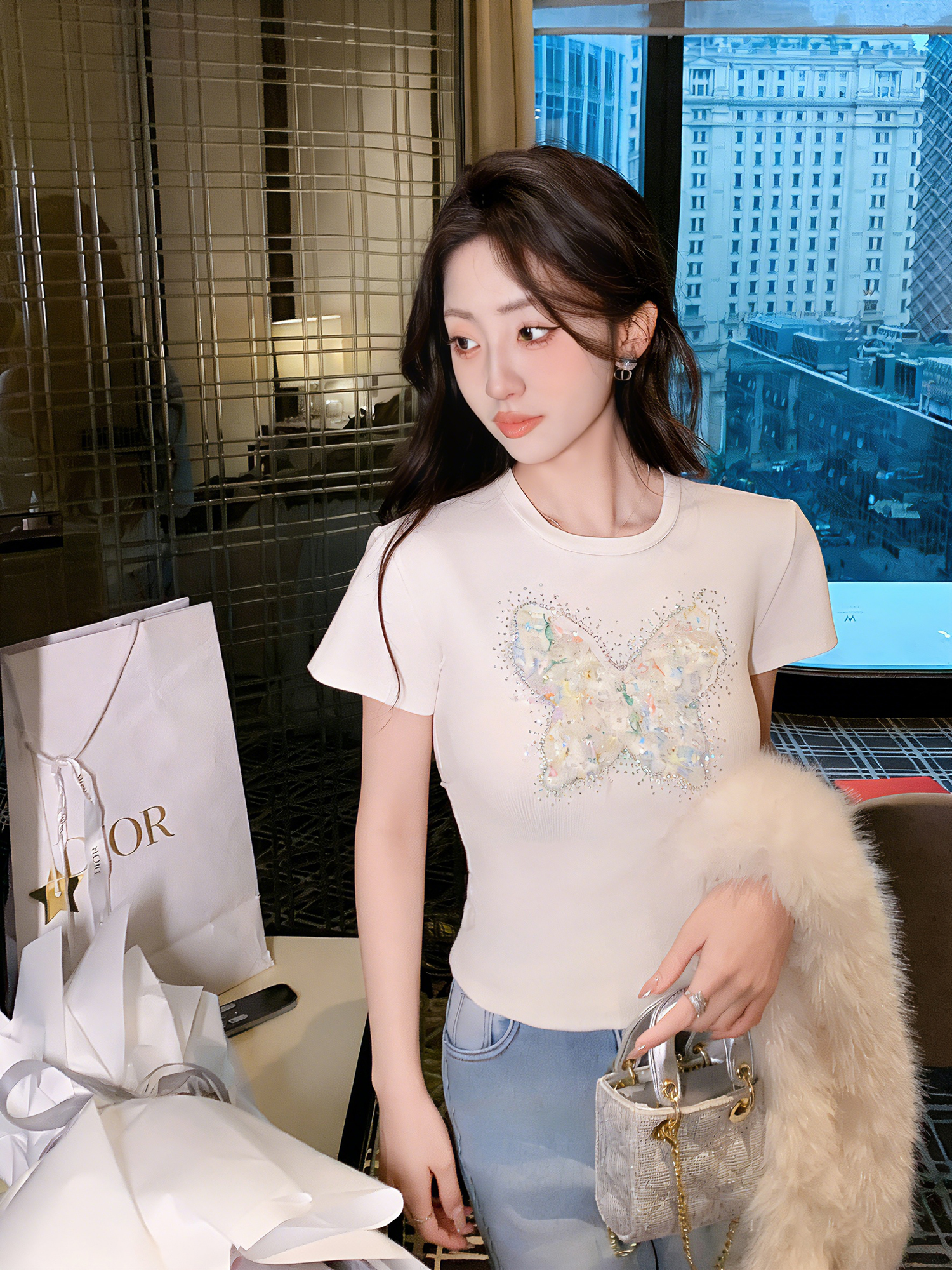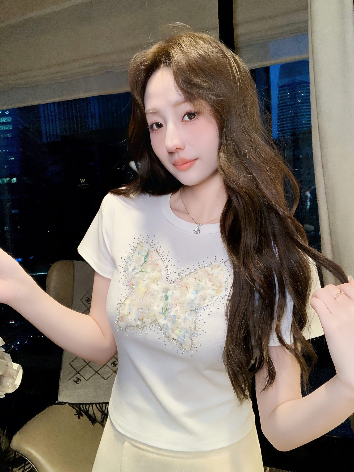 张心子【夏日焦点】烫钻蝴蝶T恤短袖独特上衣 U2604005