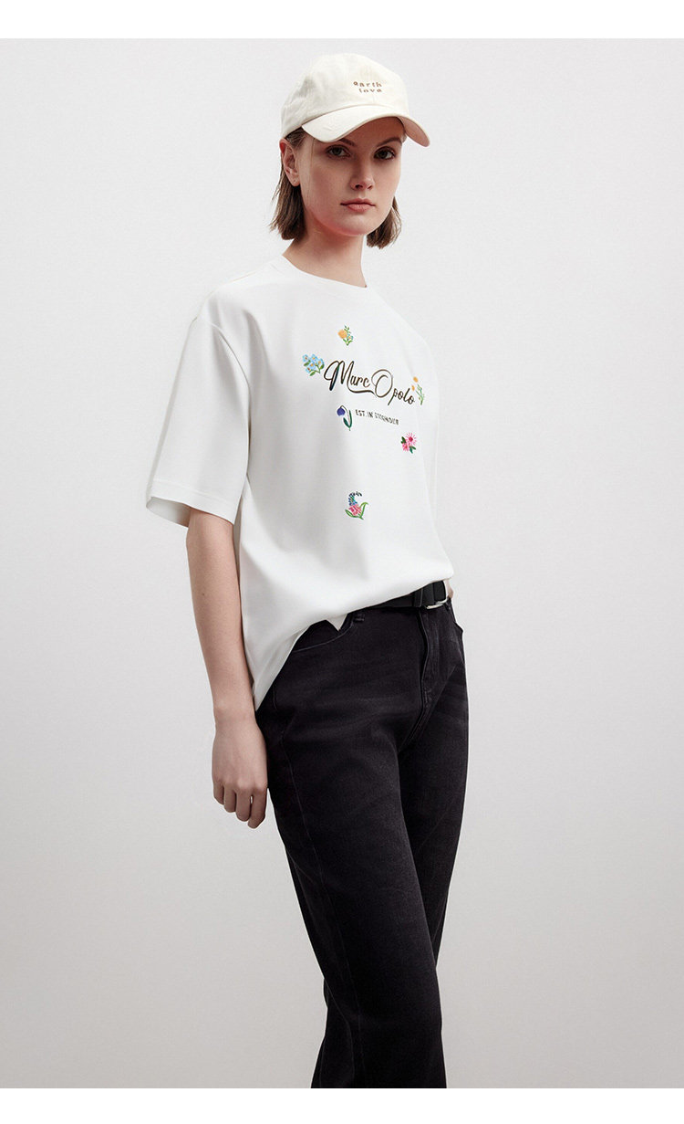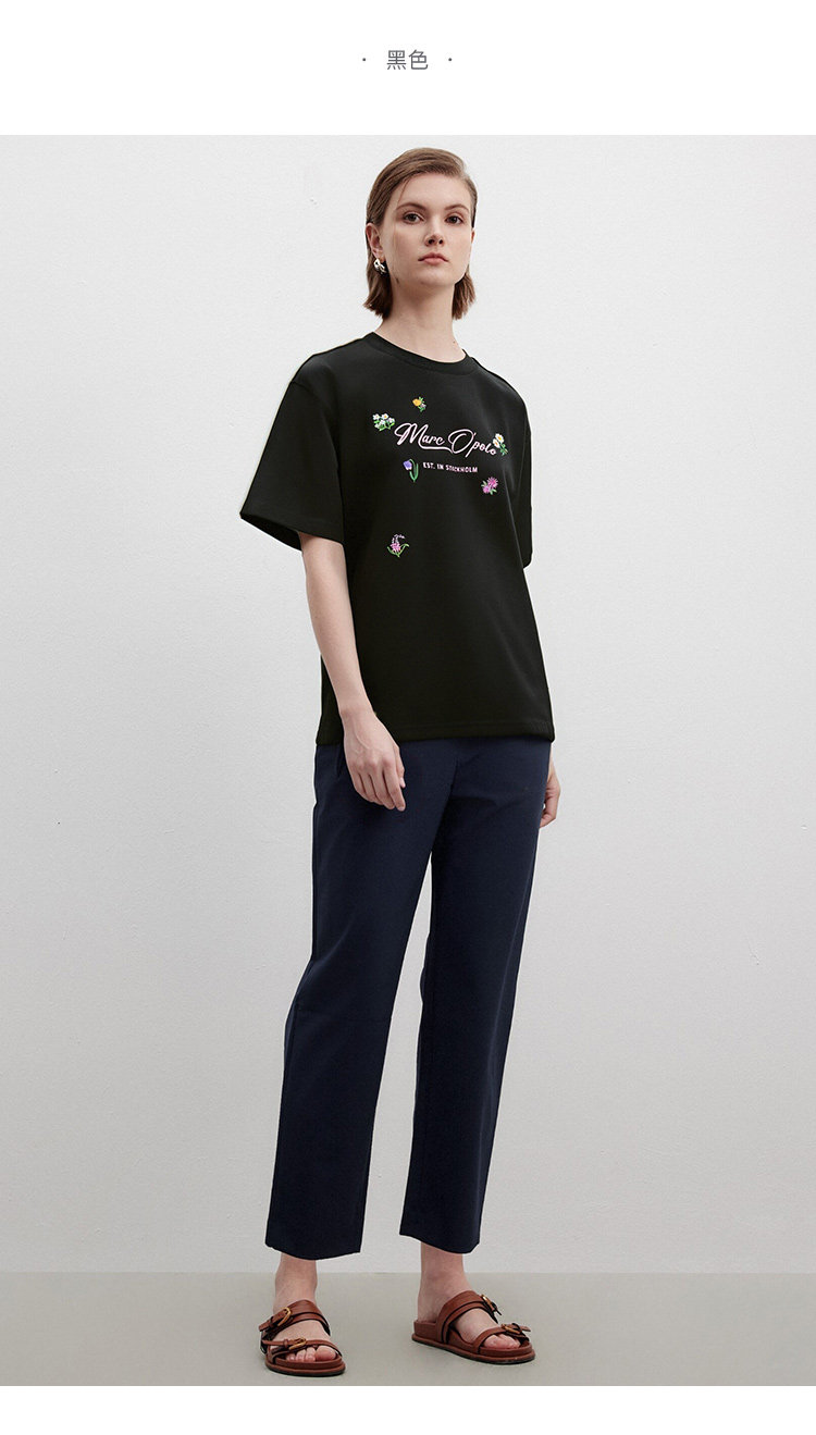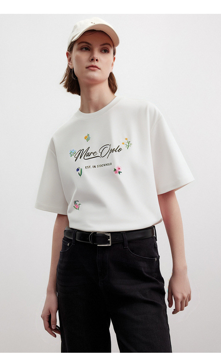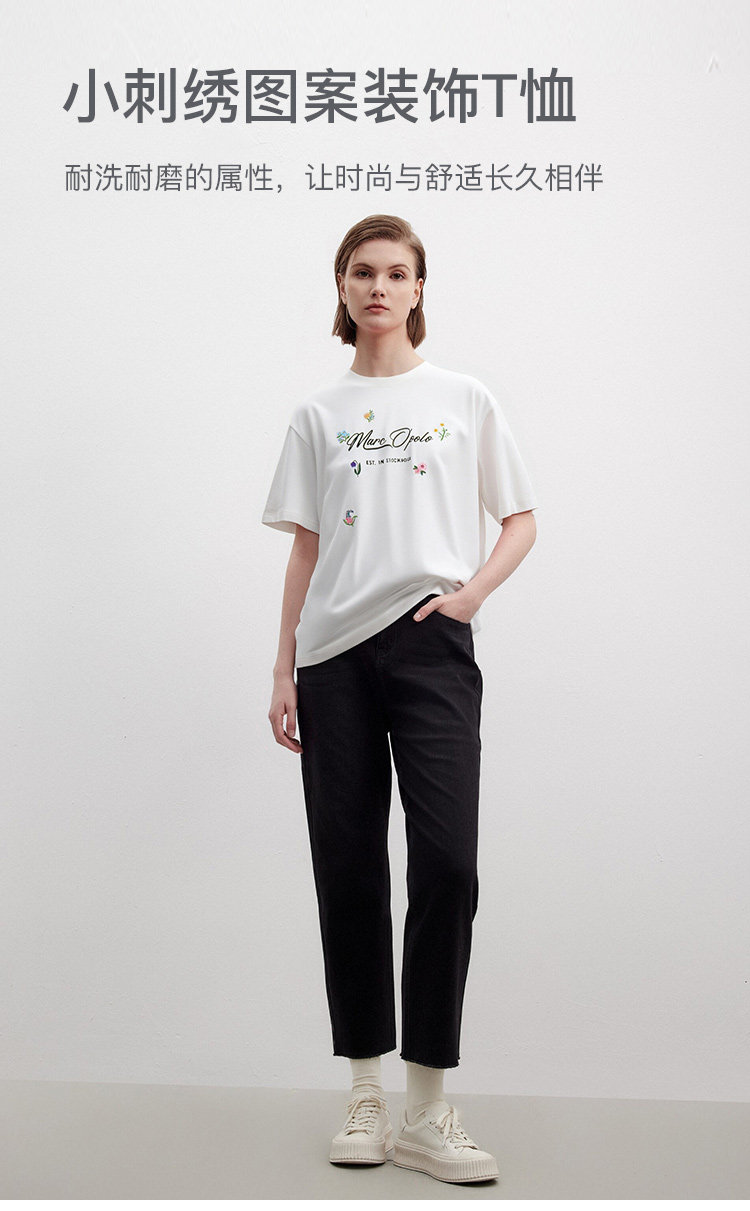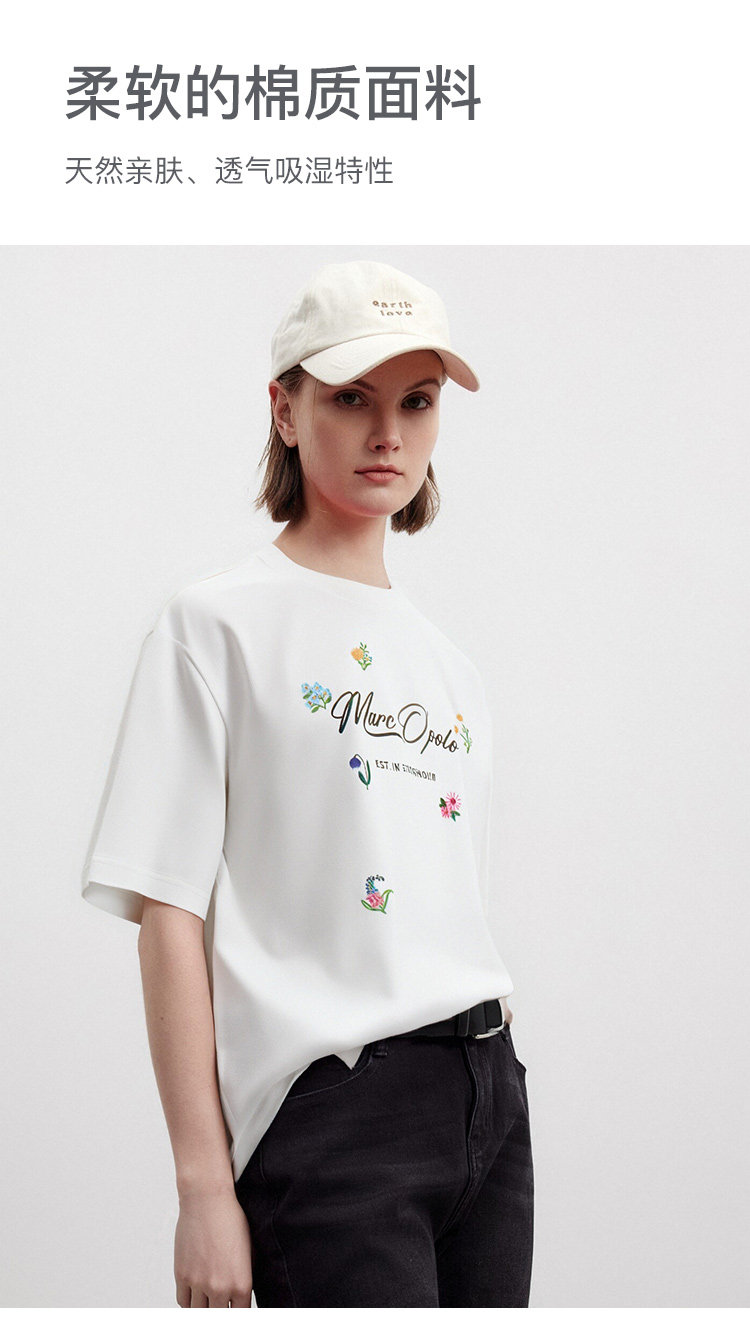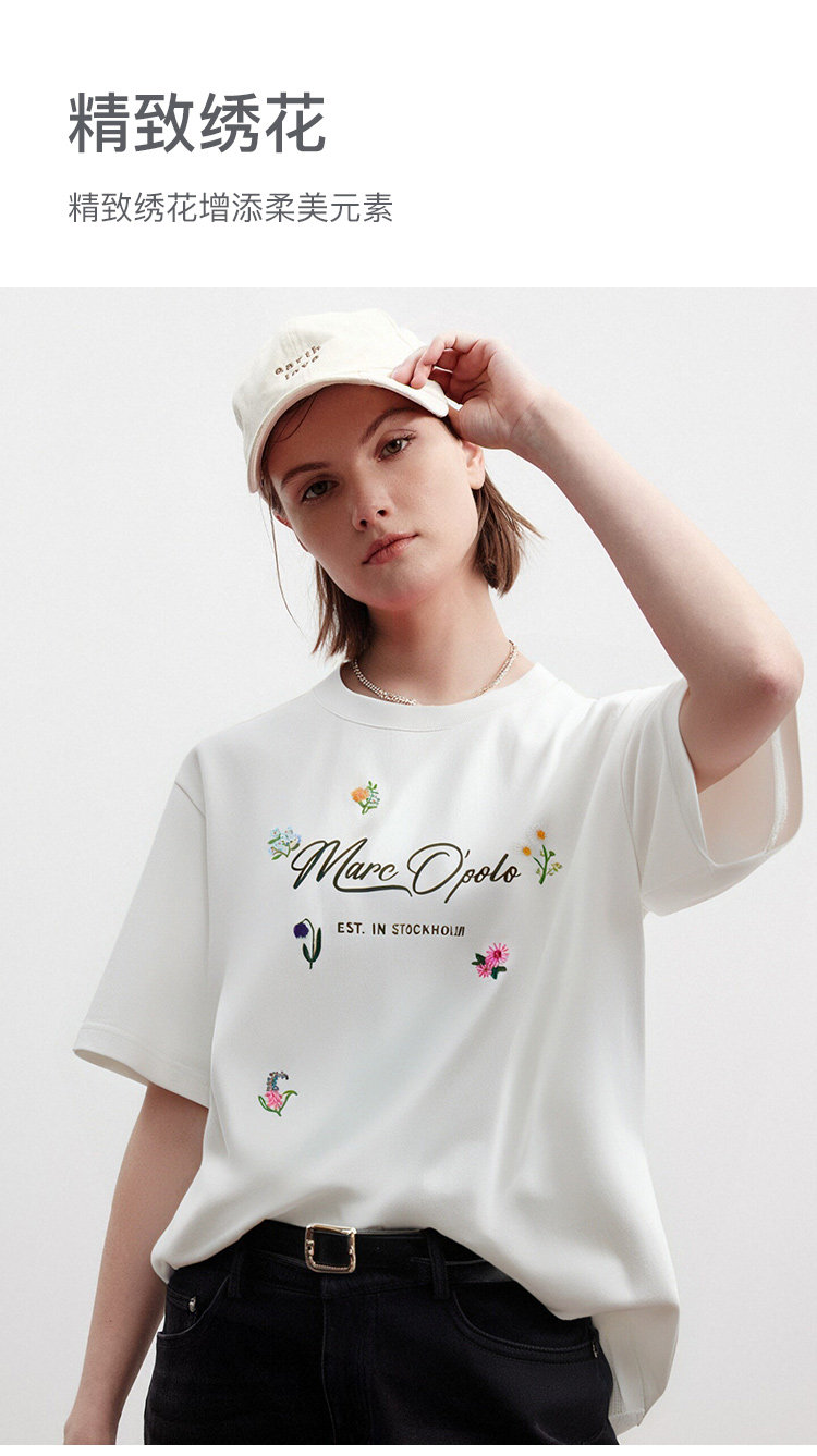 Marc O'Polo夏季新款好看品牌经典logo小刺绣设计感圆领短袖T恤女