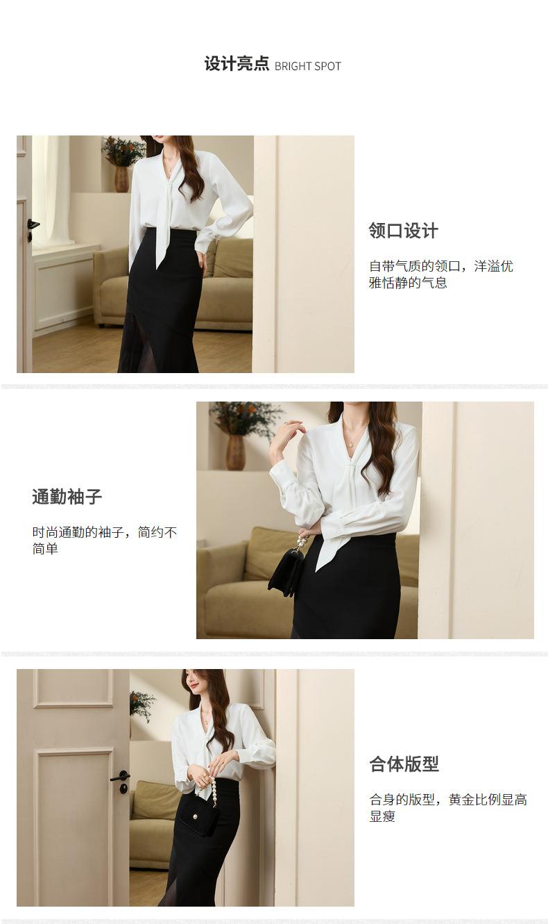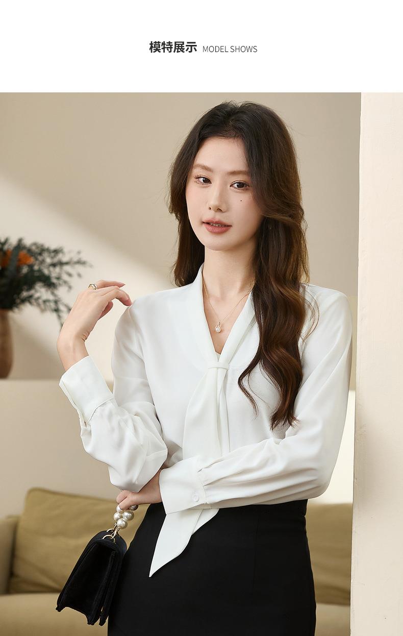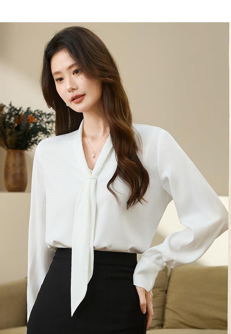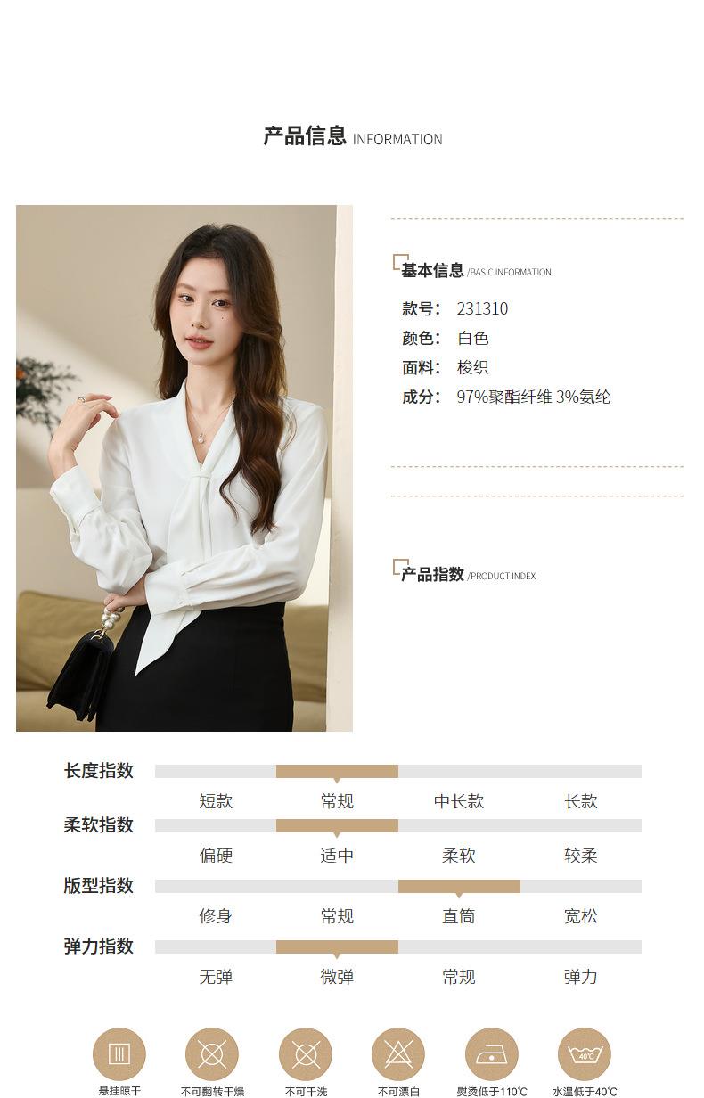 百姿 柔软垂顺通勤V领长袖衬衫2023早秋新款职业领带白衬衣231310