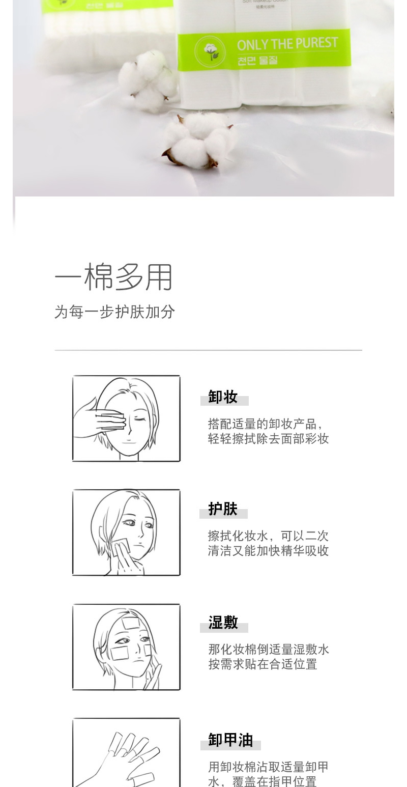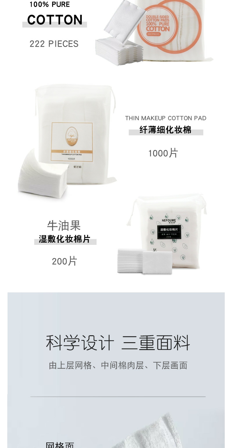 【YZ】妮珀美化妆棉卸妆棉卸妆用脸部纯棉柔软一次性纯棉眼部唇部厚薄 222片