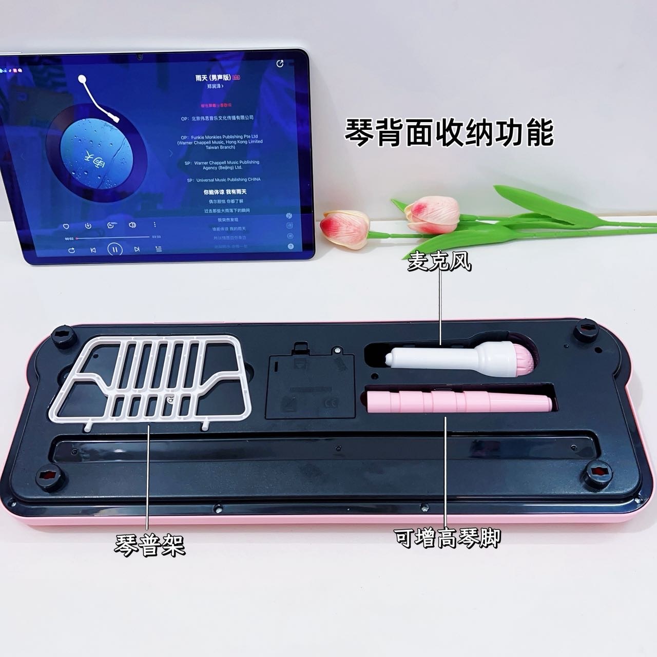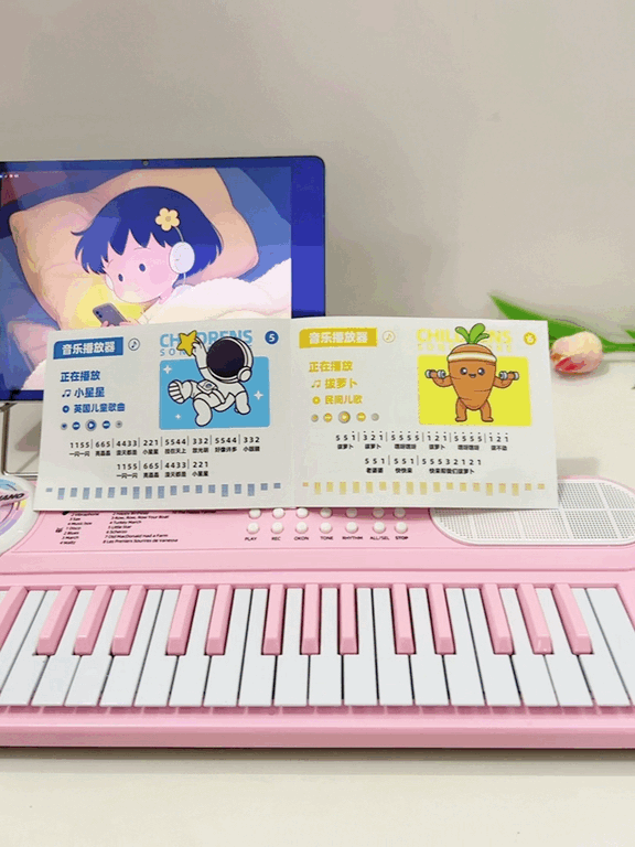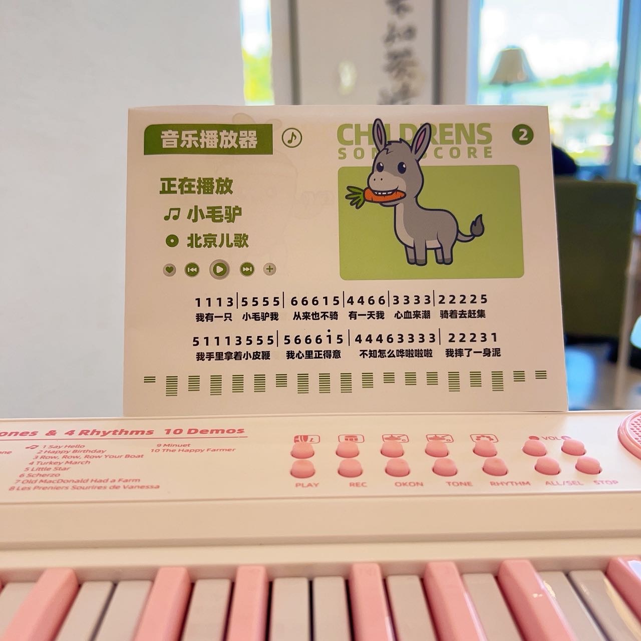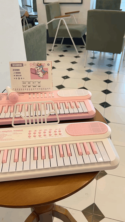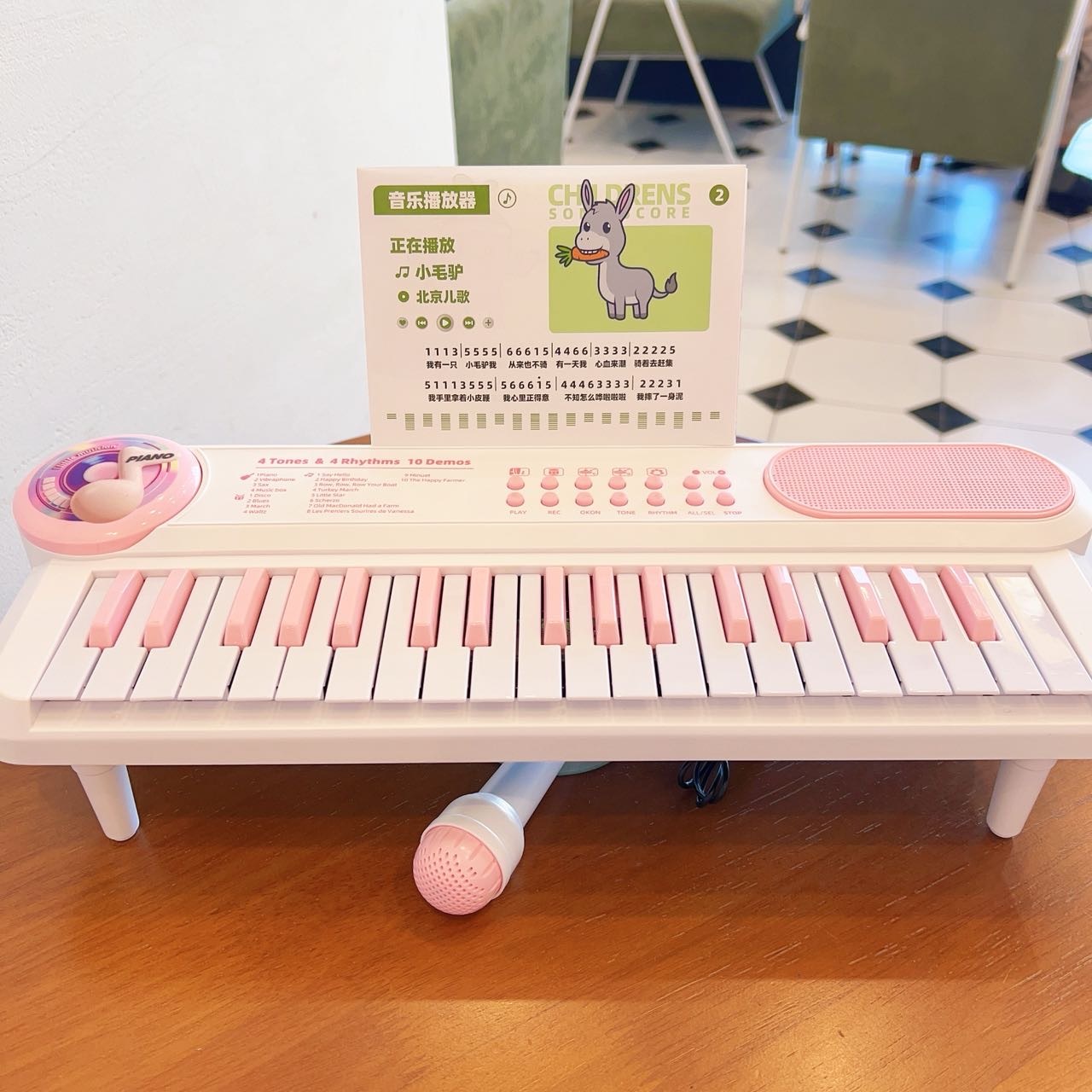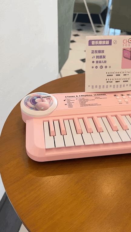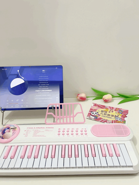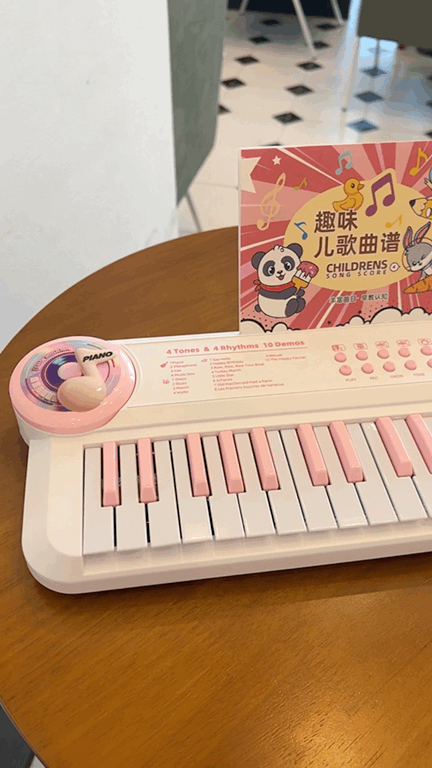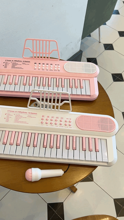 它有着清新甜美的粉白配色,摆在房间里就像一件可爱的艺术品。4种音色、4种节奏、10种示范曲,让孩子在弹奏中探索音乐的多样魅力;搭配的麦克风,还能让孩子化身小小歌唱家,边弹边唱,释放表演欲。