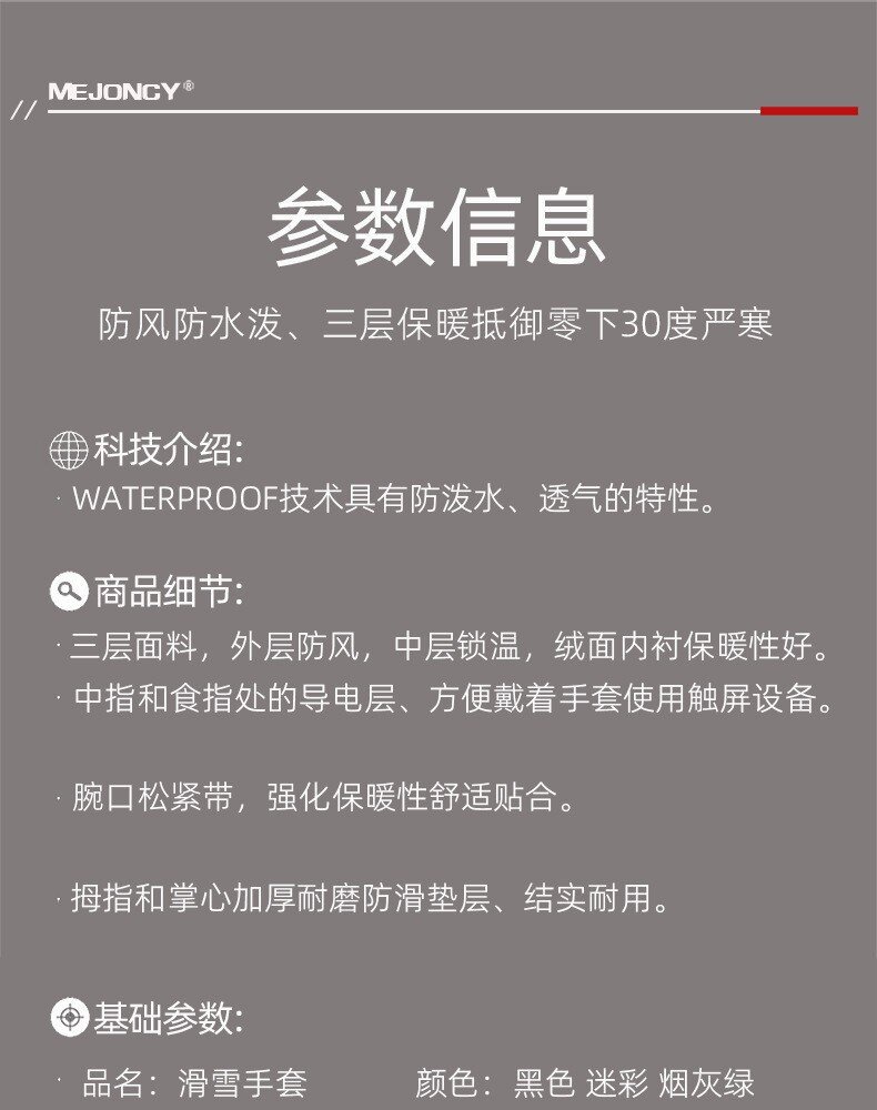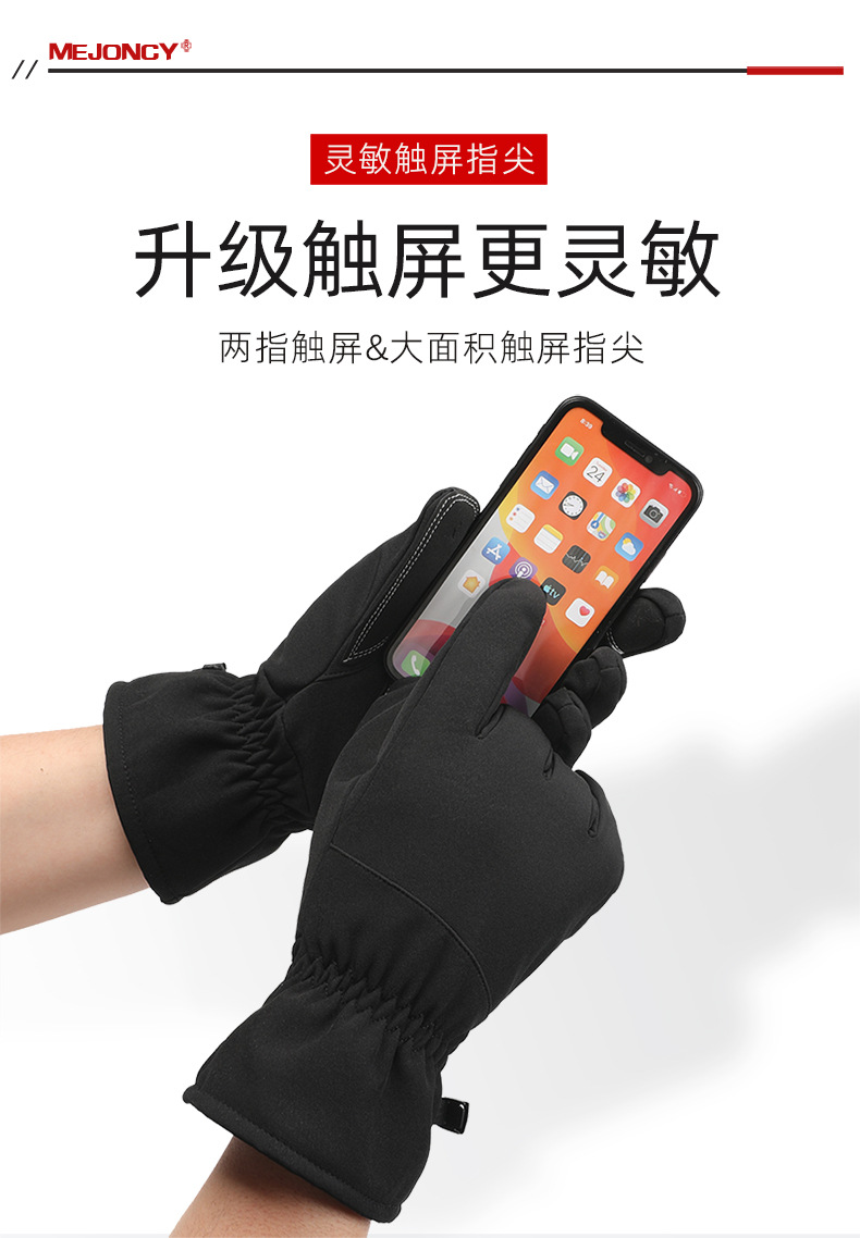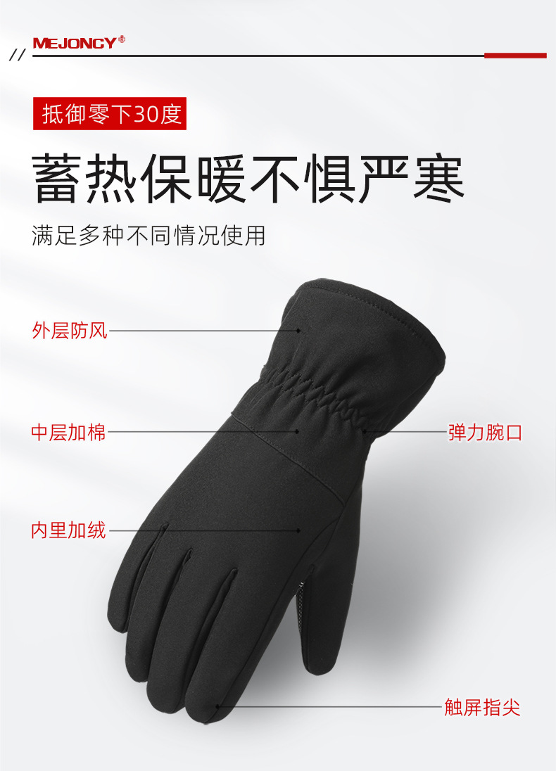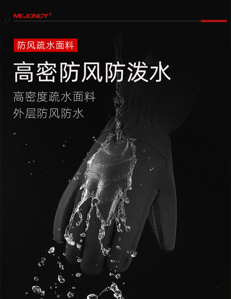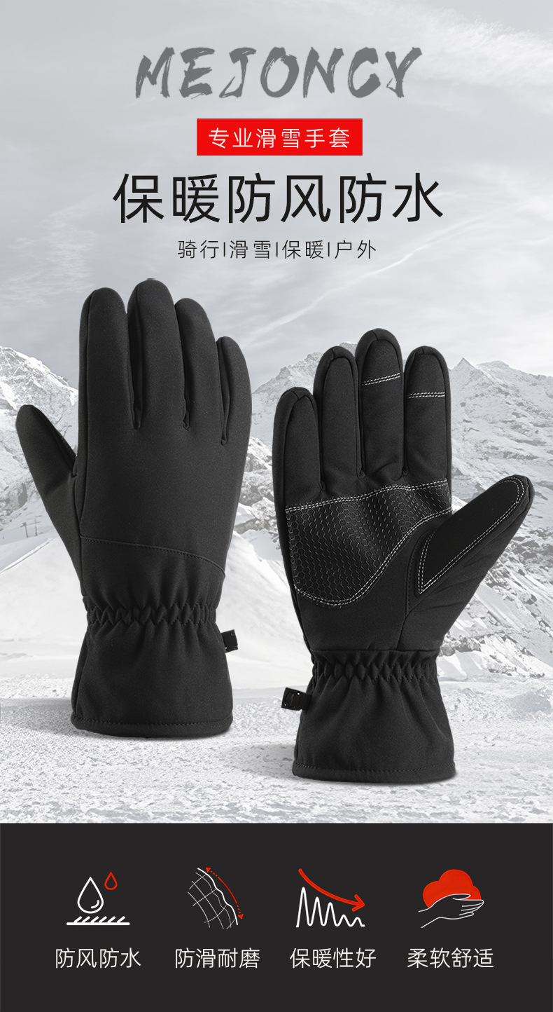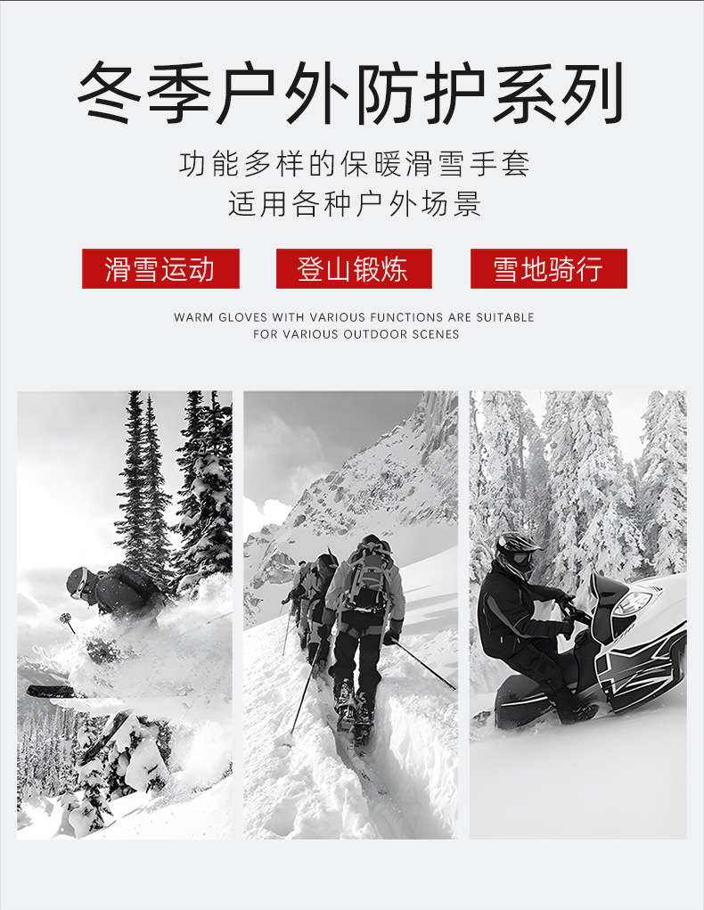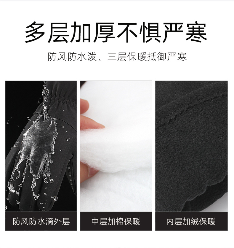 冬季新款加绒保暖手套户外滑雪骑行触屏防风防寒防滑登山男女防水