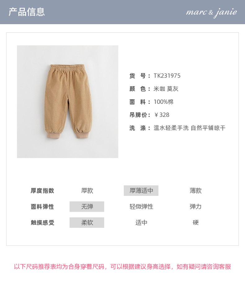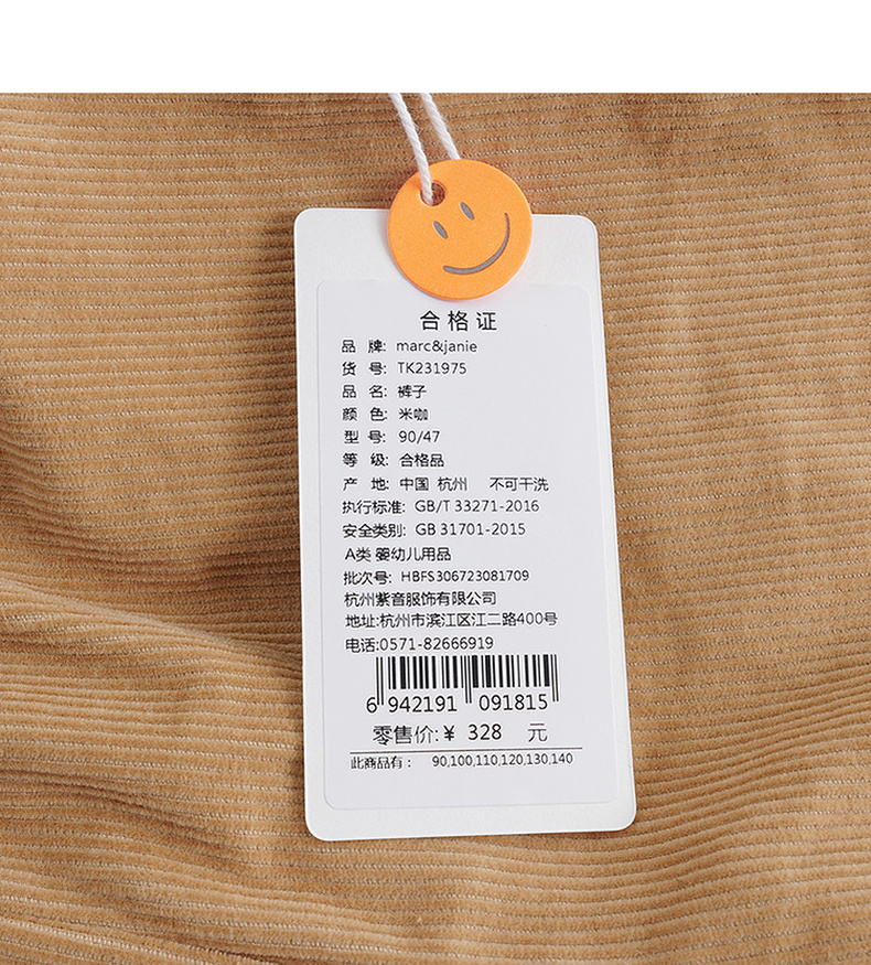 马克珍妮秋装新款 男童全棉灯芯绒束脚长裤 儿童裤子231975