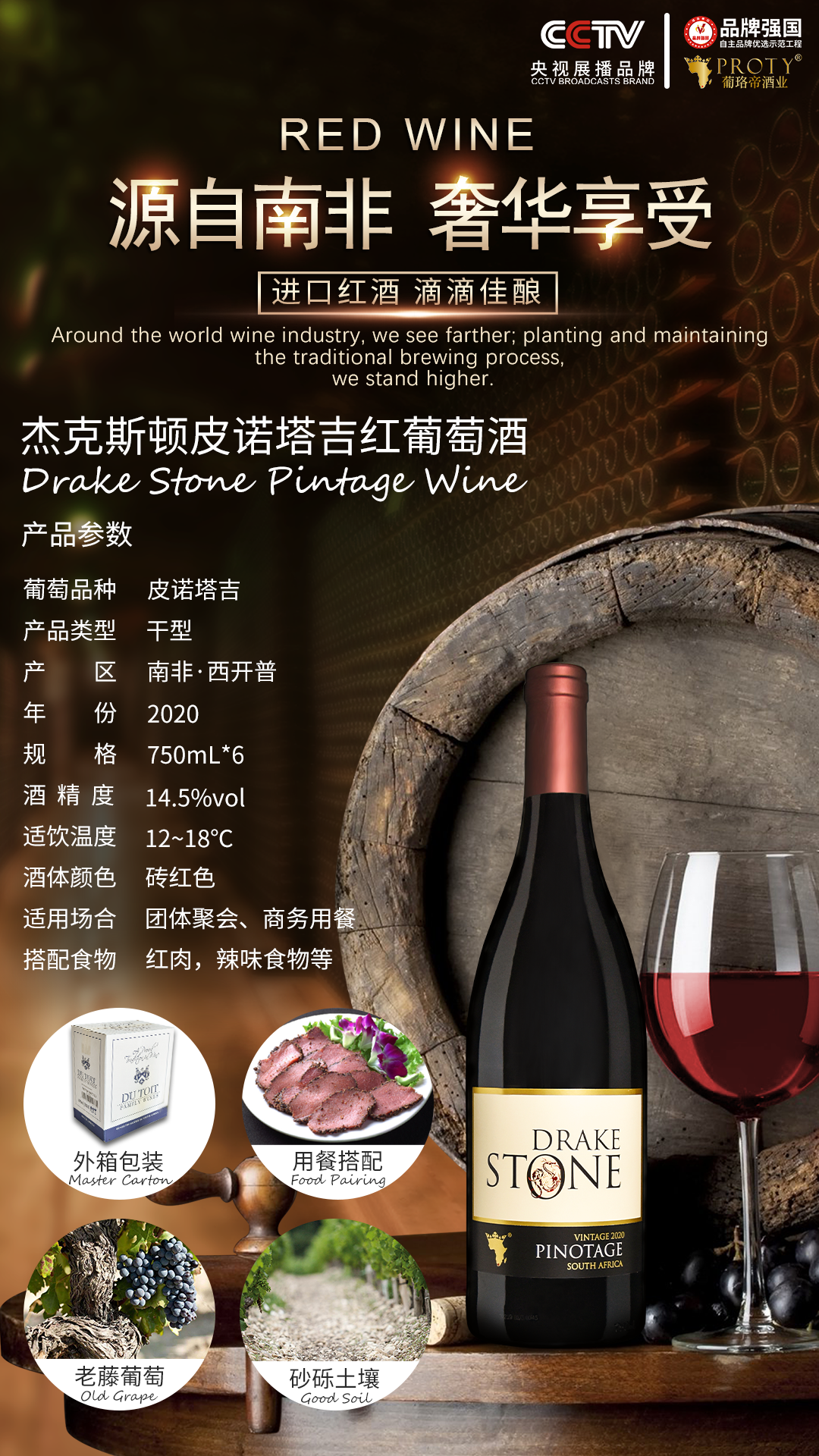 南非-西开普皮诺塔吉14.5%vol红葡萄酒六支装
