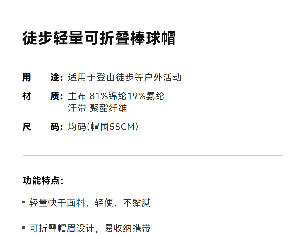 KAILAS凯乐石 徒步轻量可折叠棒球帽 KF2511503【Z】