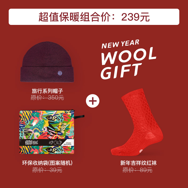 赛乐温暖组合套装送家人新年礼物美丽诺羊毛套装圣诞元旦春节礼物袜