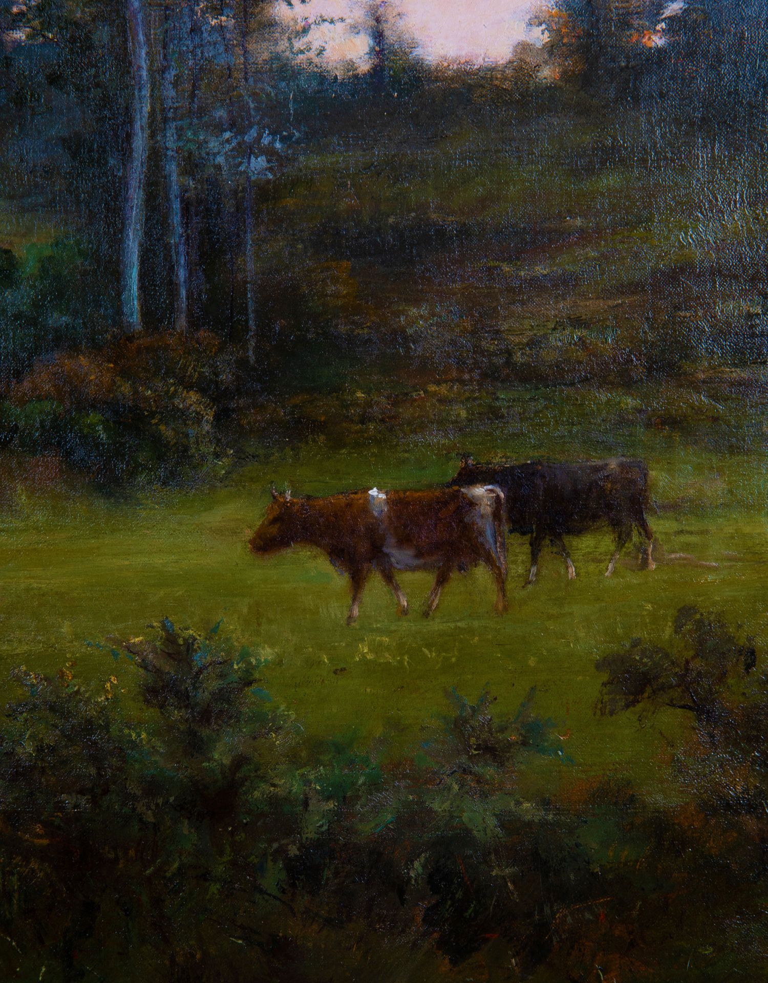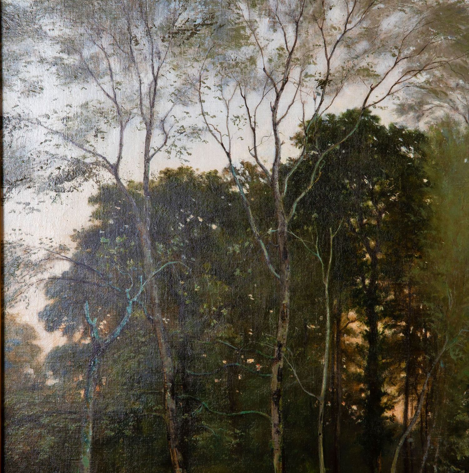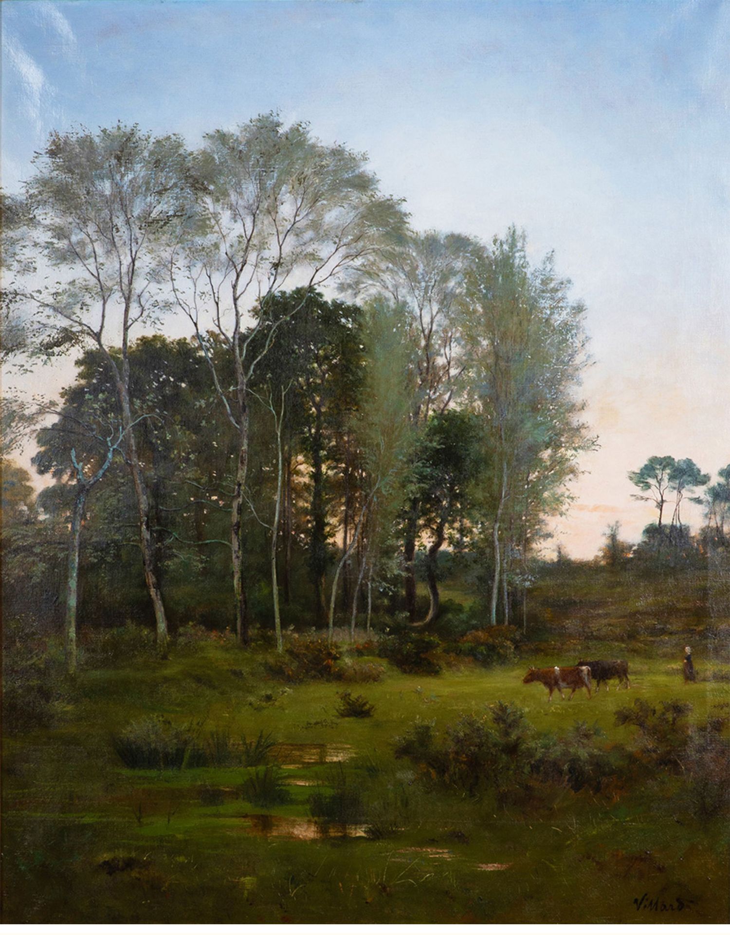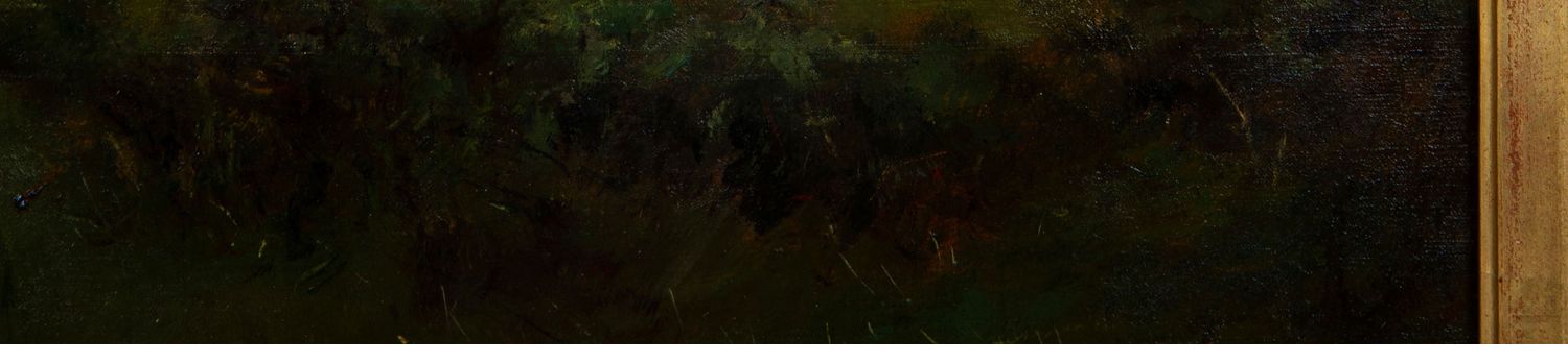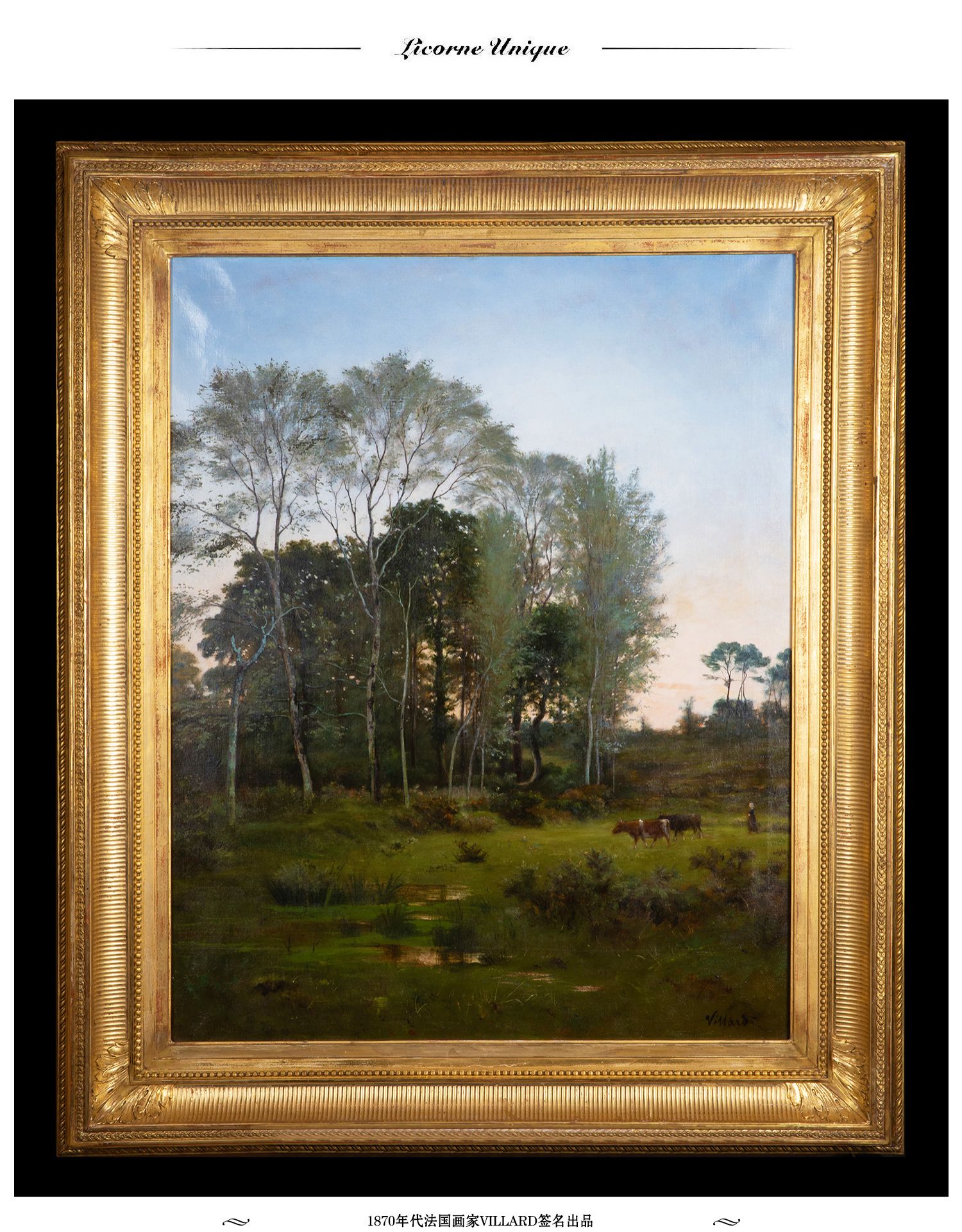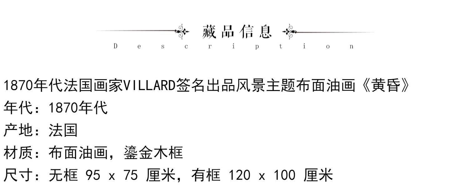 独角鹿西洋古董法国画家VILLARD签名风景布面油画《黄昏》