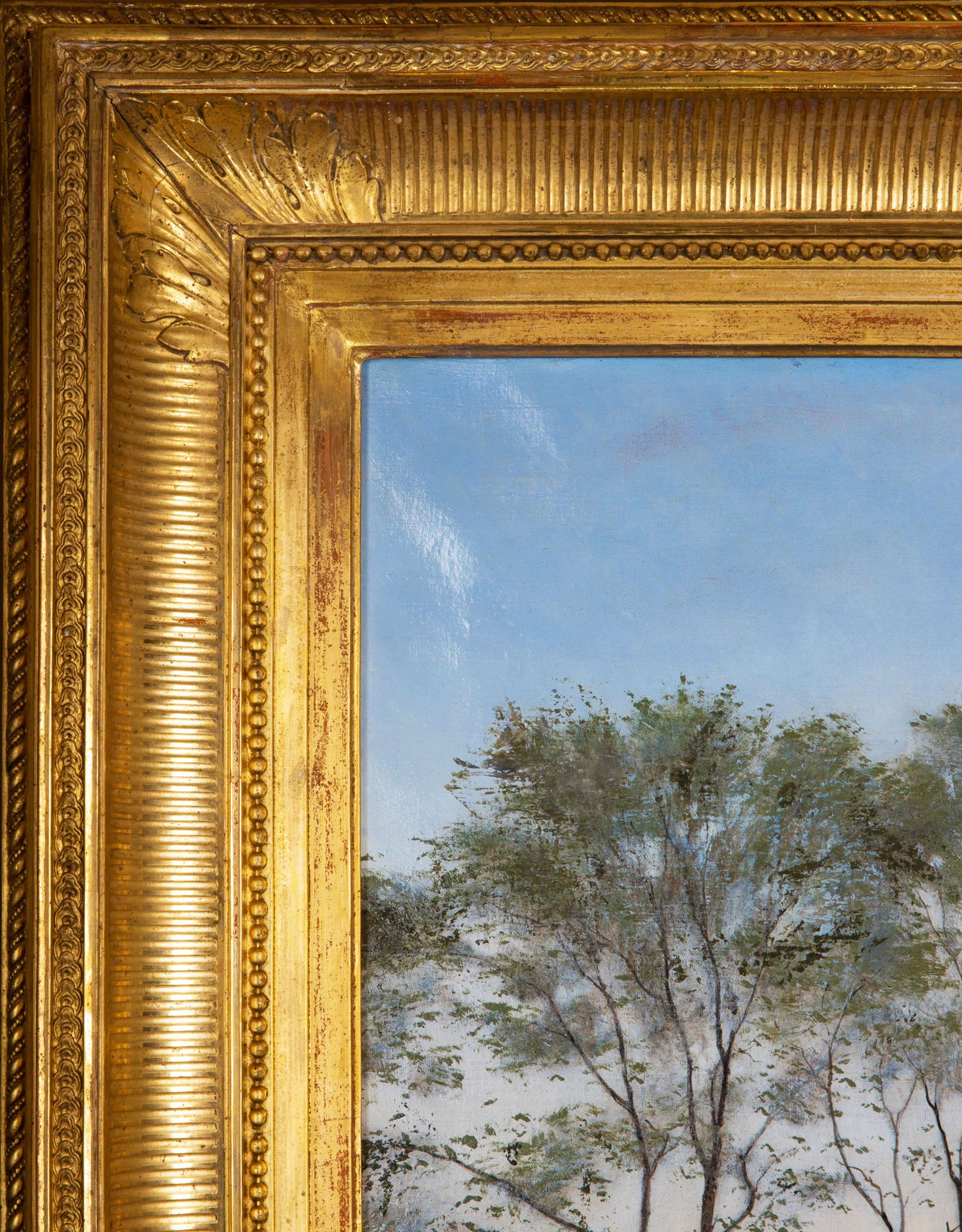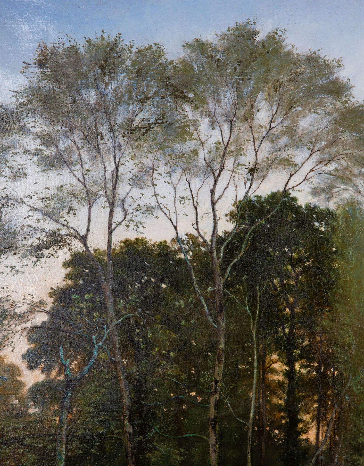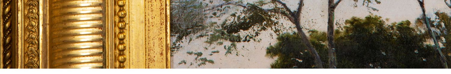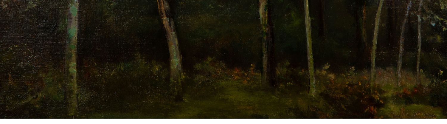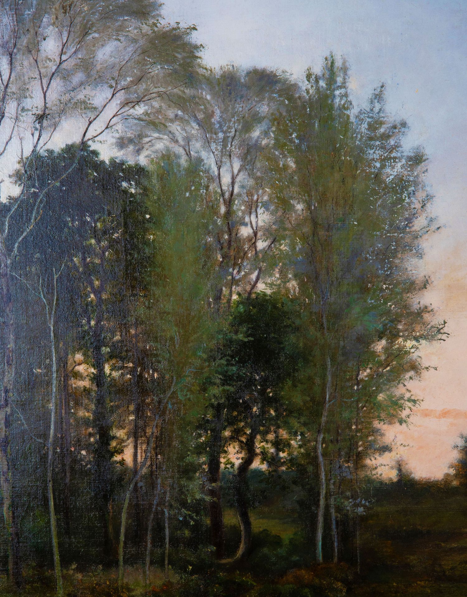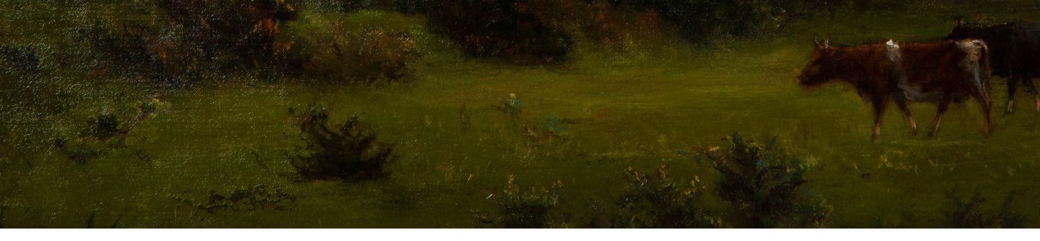 独角鹿西洋古董法国画家VILLARD签名风景布面油画《黄昏》