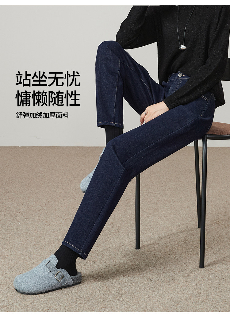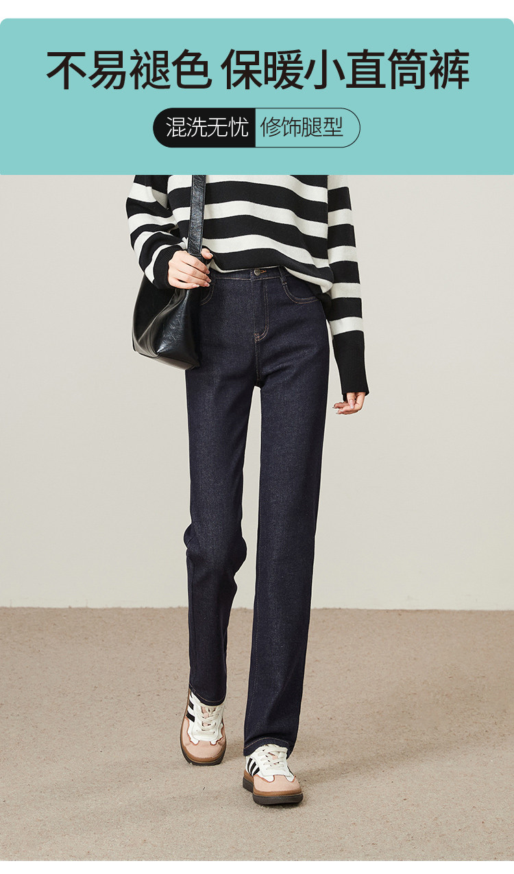 【猞猁绒/奥粒绒-直筒裤】逸阳冬加绒加厚不易褪色一条过冬牛仔裤4901