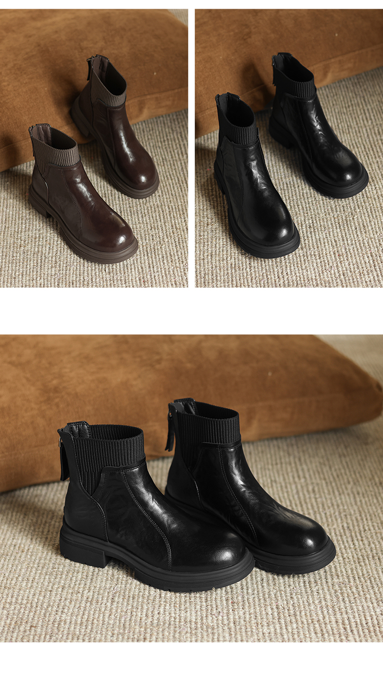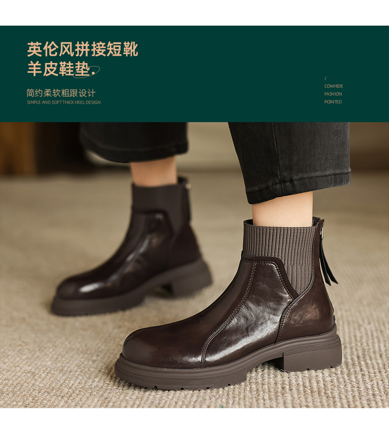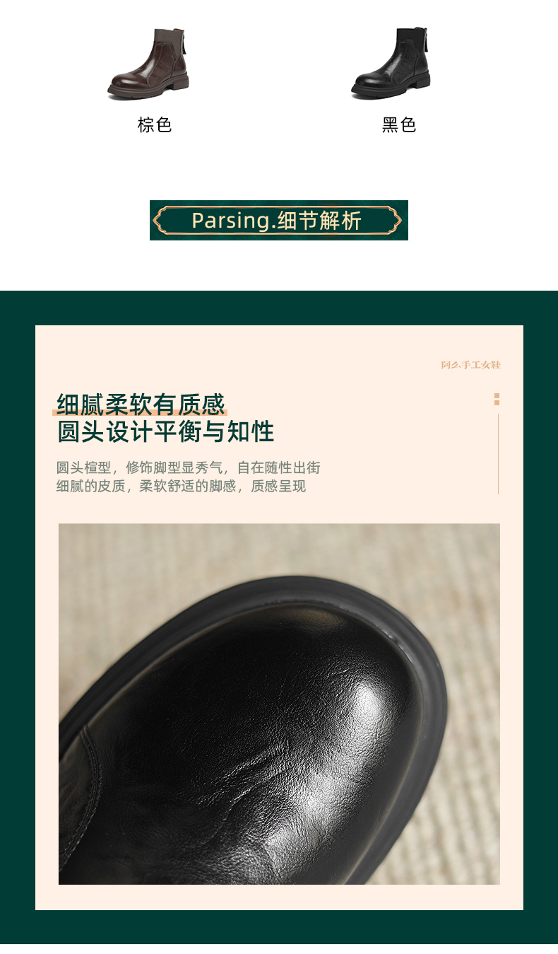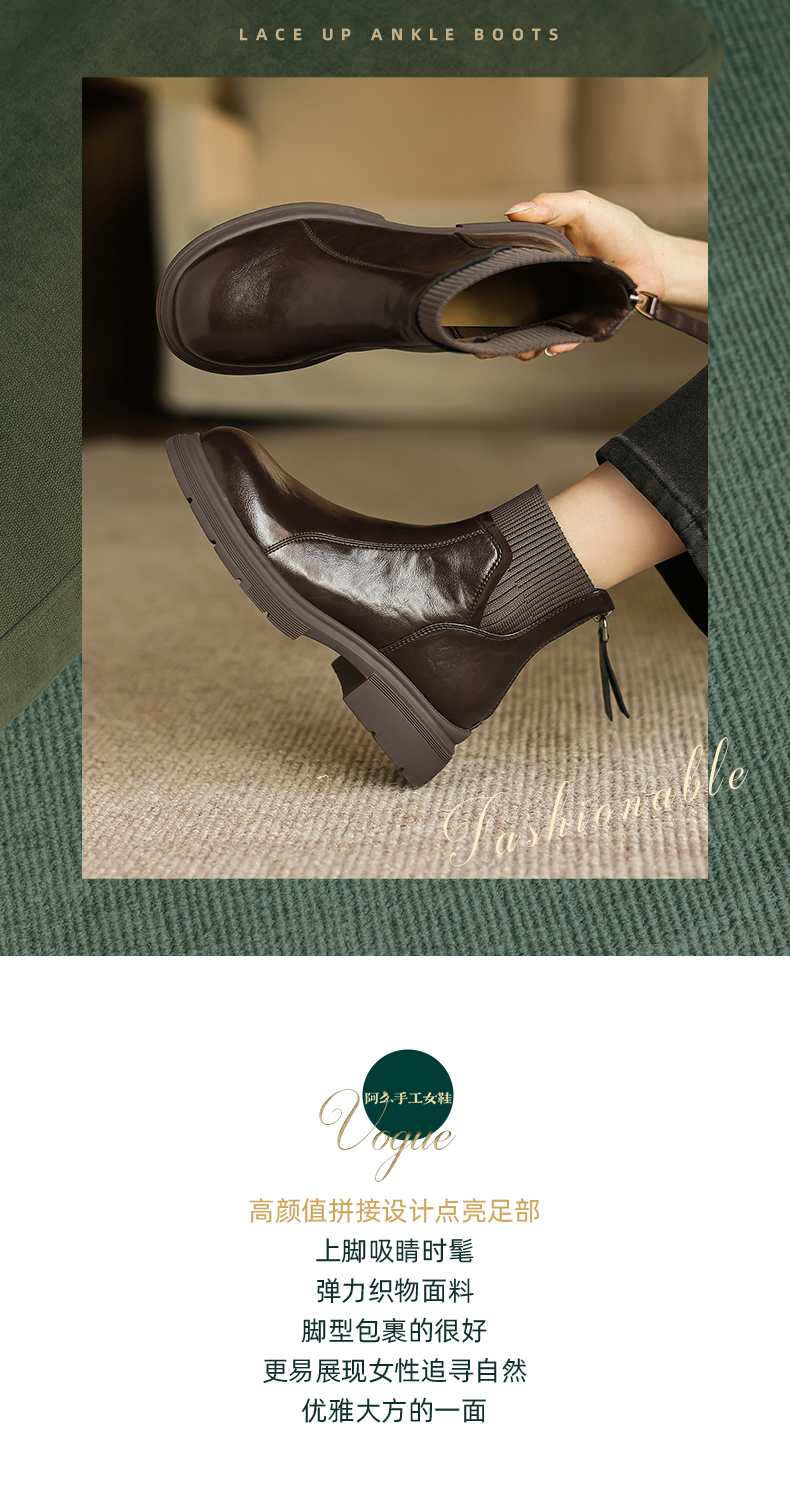 阿么手工女鞋英伦风针织毛线筒圆头短靴新款透气百搭及踝靴3.5CM