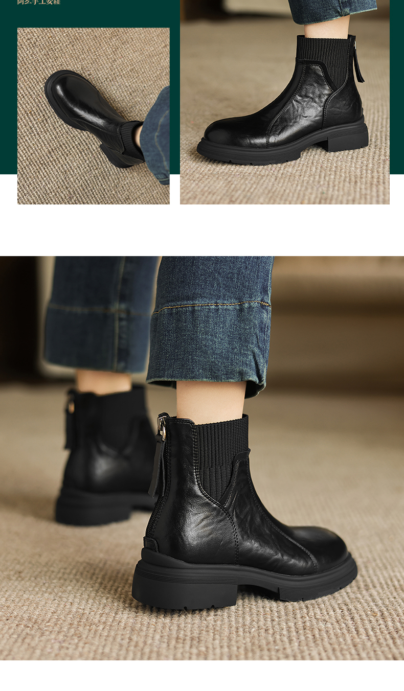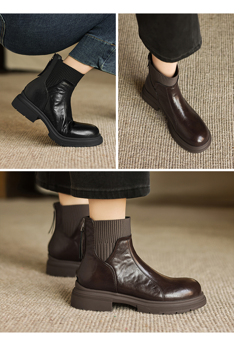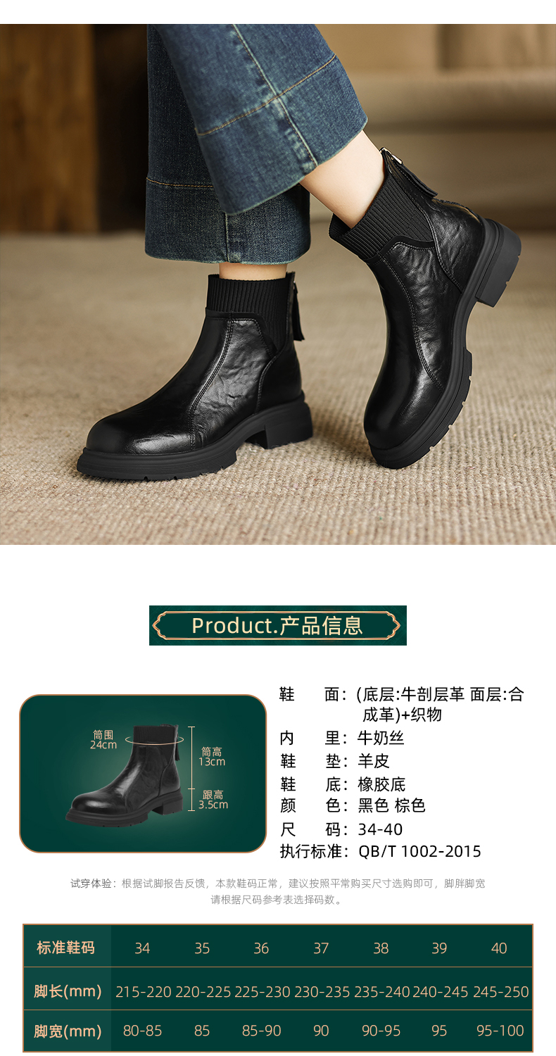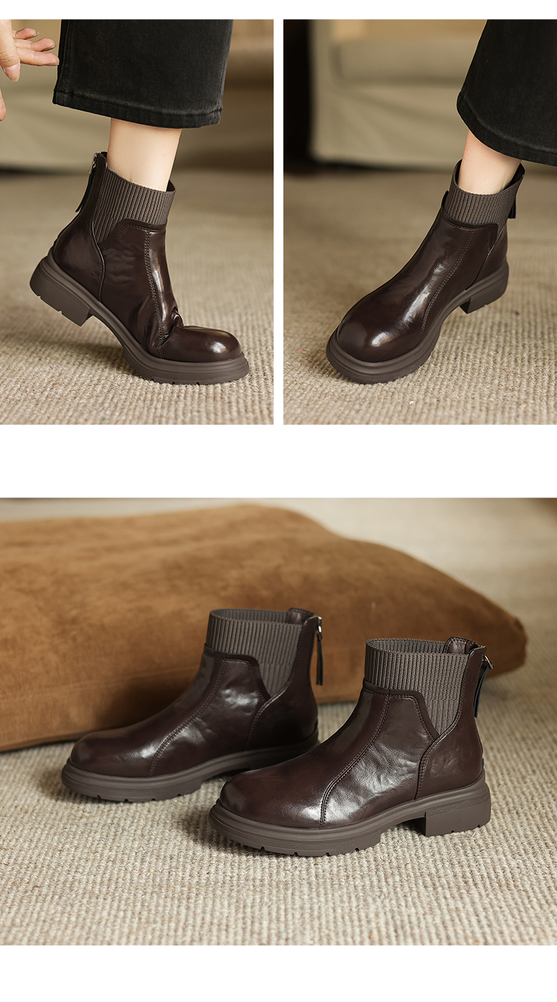 阿么手工女鞋英伦风针织毛线筒圆头短靴新款透气百搭及踝靴3.5CM