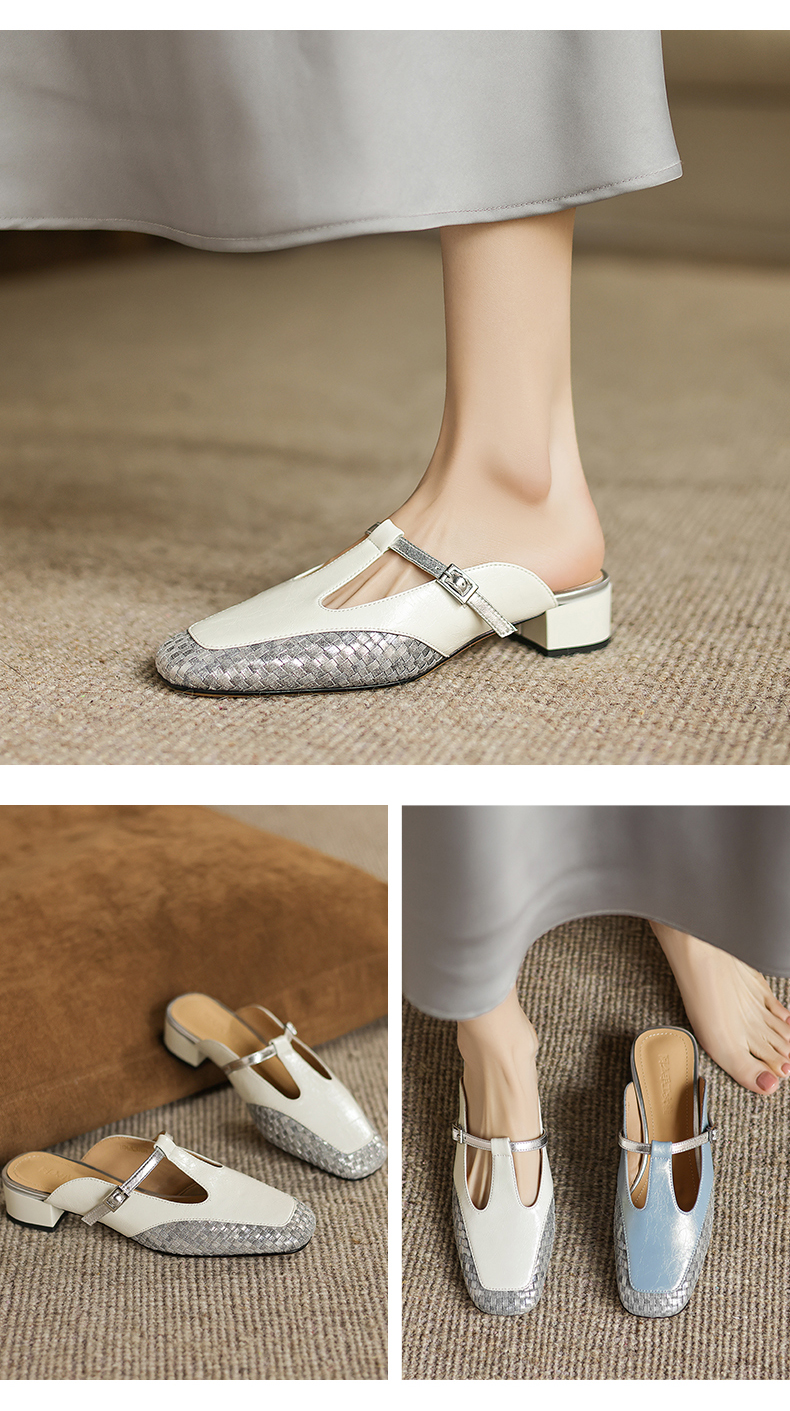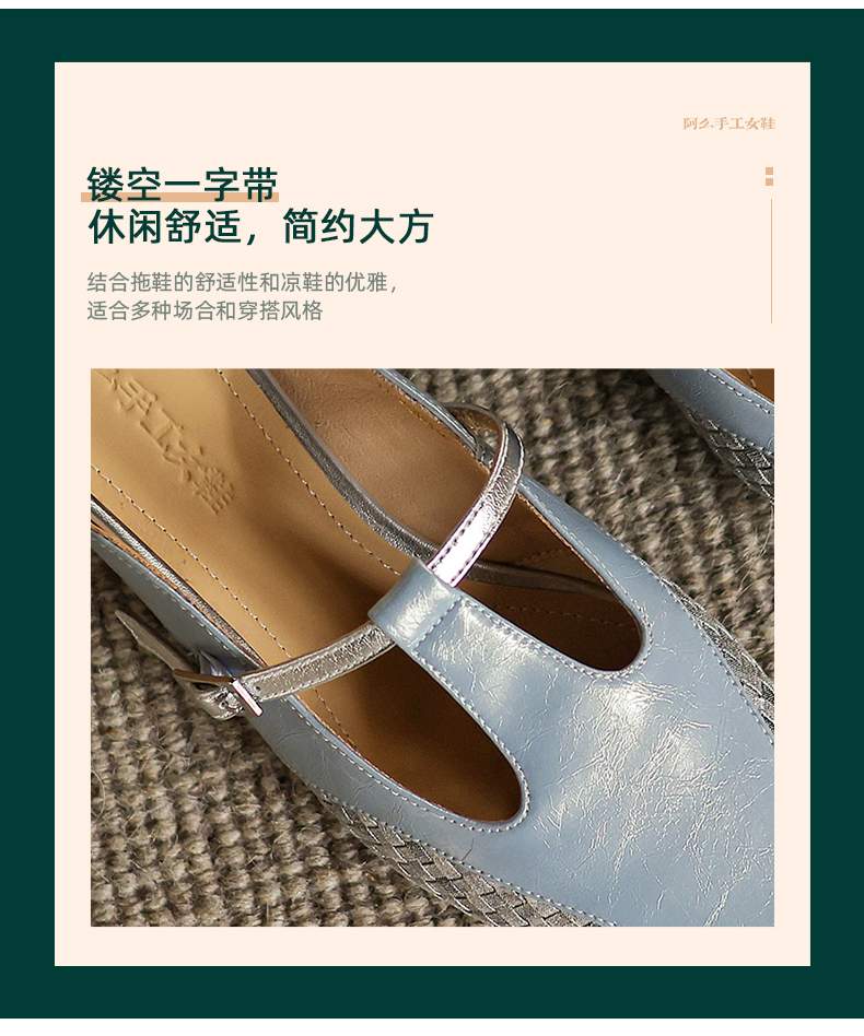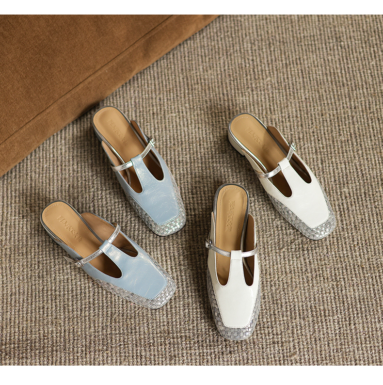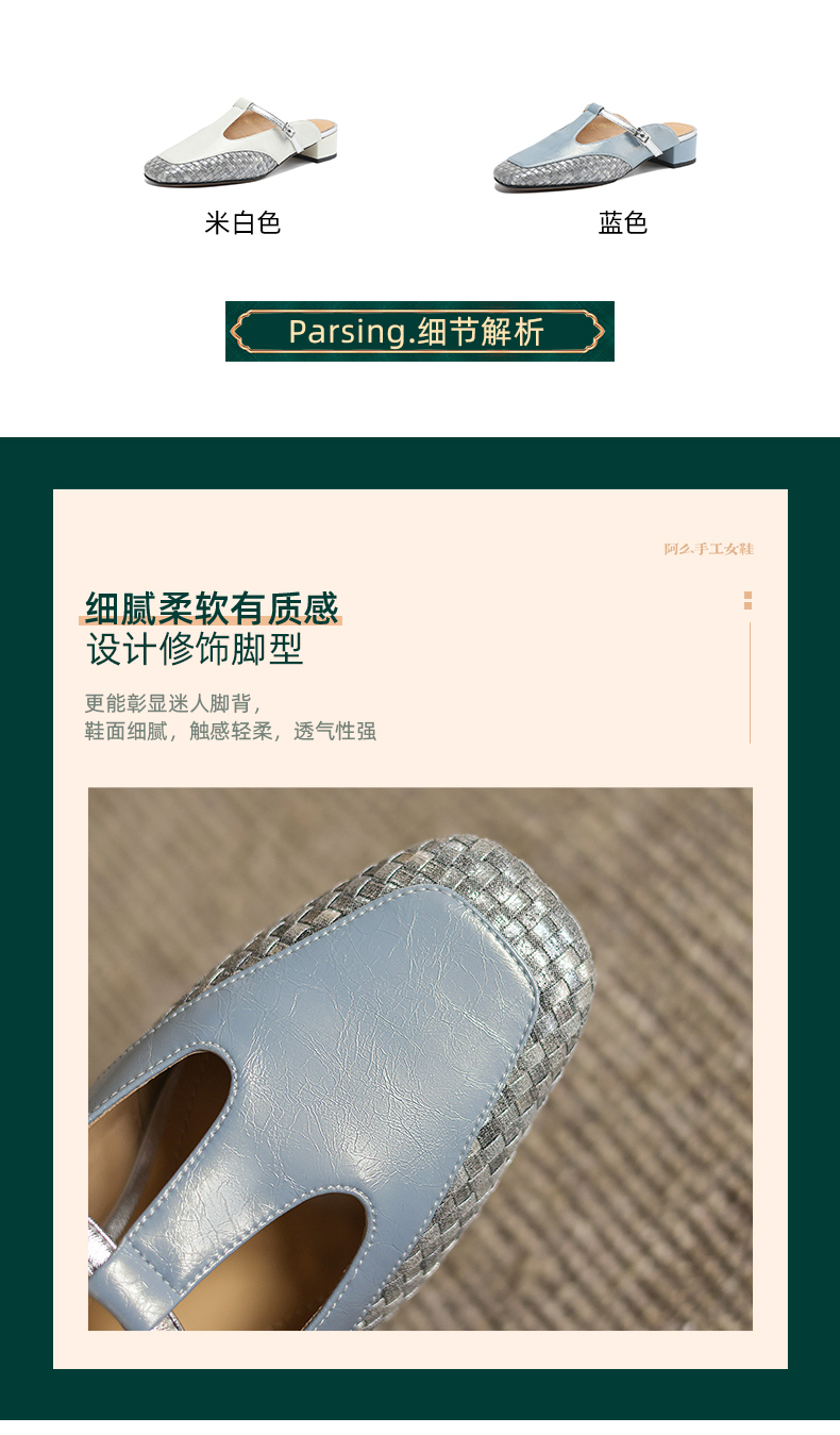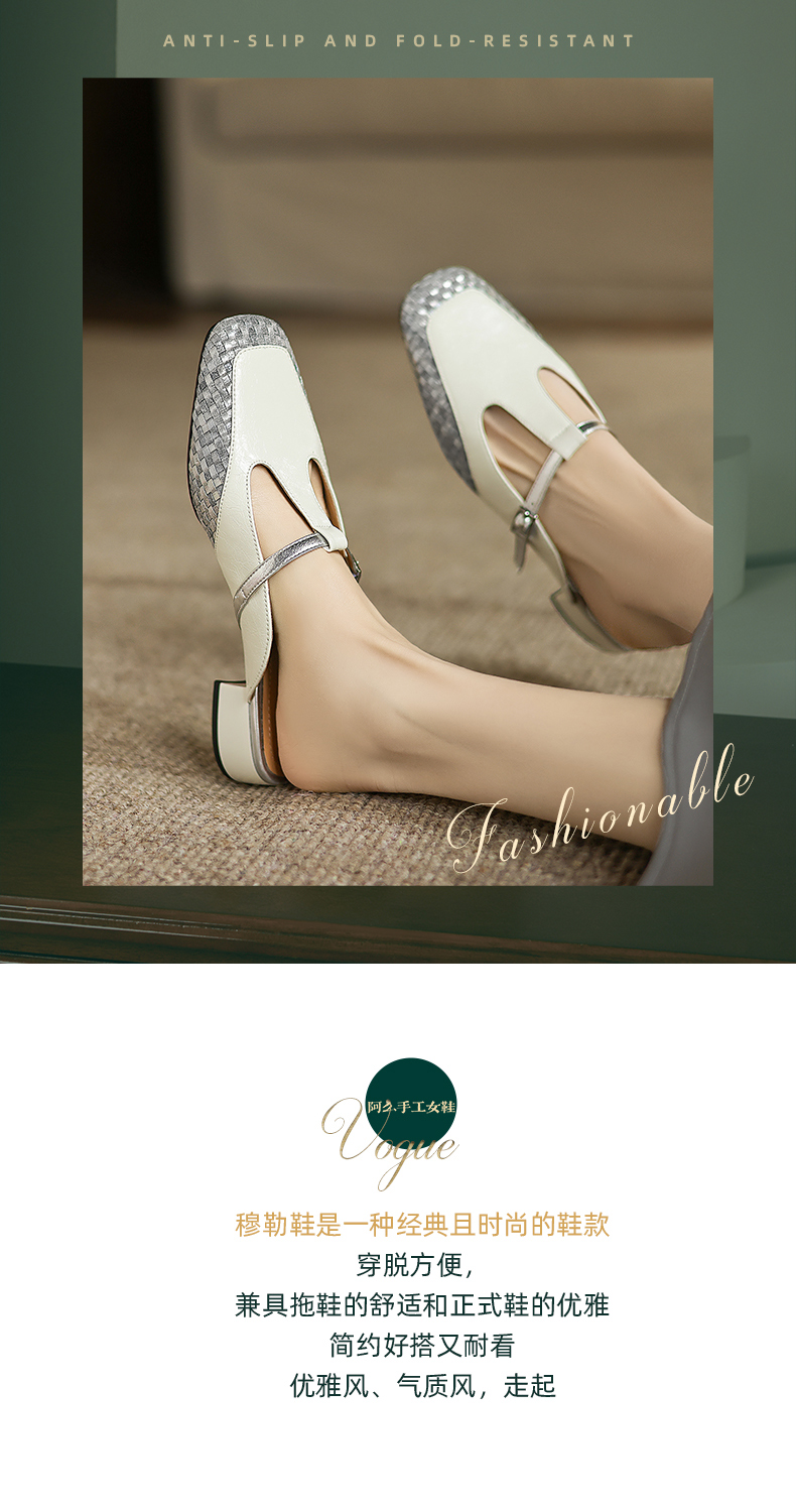 阿么手工女鞋法式编织懒人真皮穆勒拖夏季百搭包头拖鞋女外穿3CM