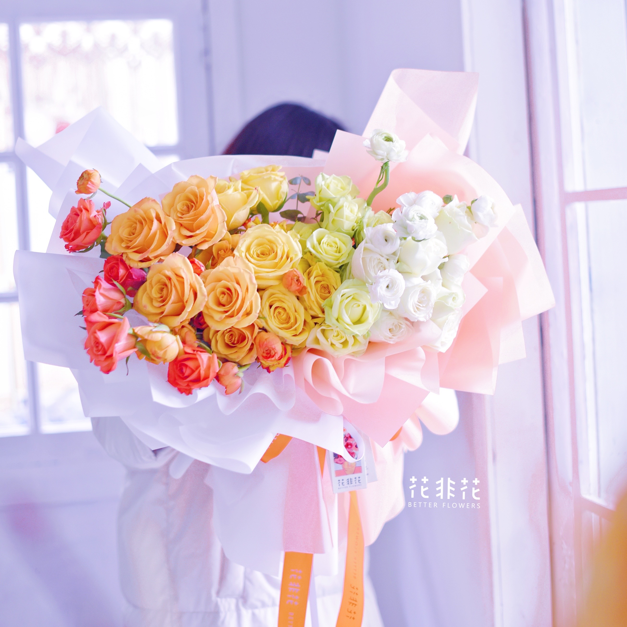 《落日与你》渐变色混搭玫瑰花束