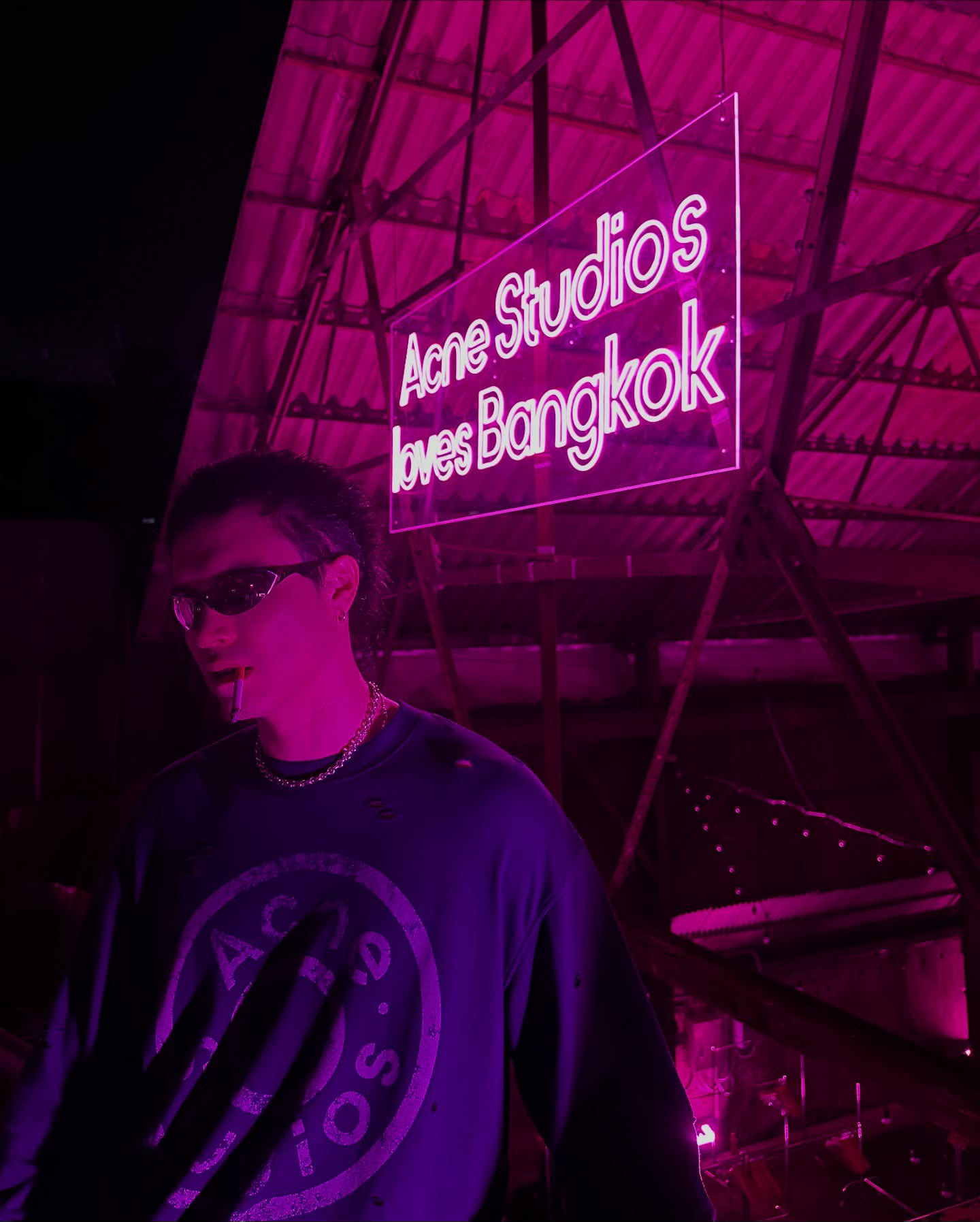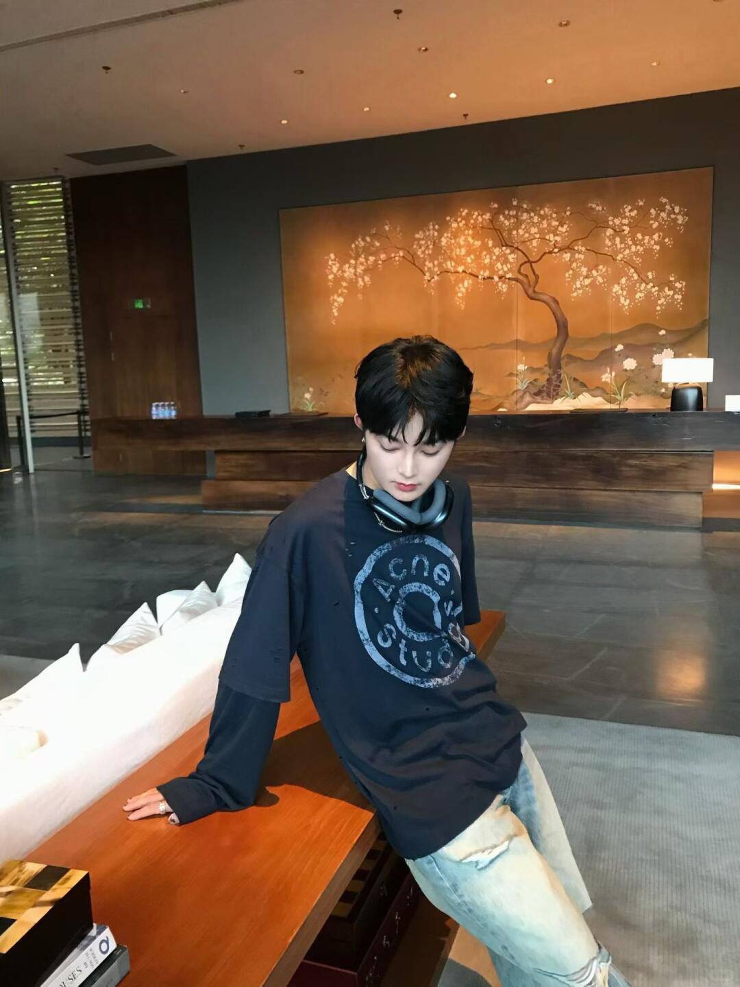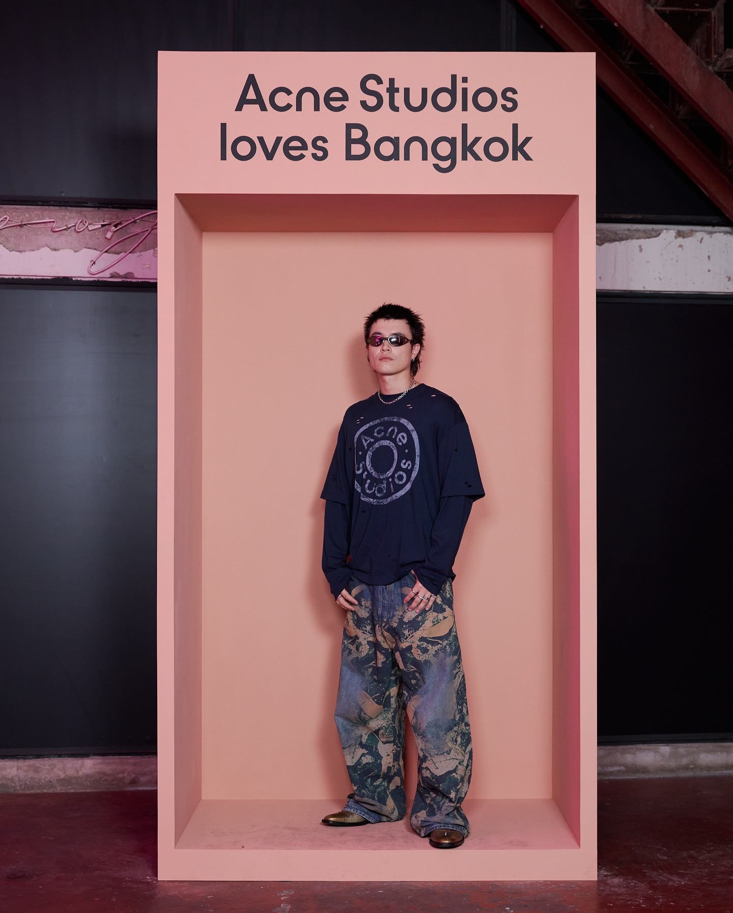 深蓝色主调 搭配胸前ac印花 灵感来自牛仔裤铆钉元素 很复古时尚