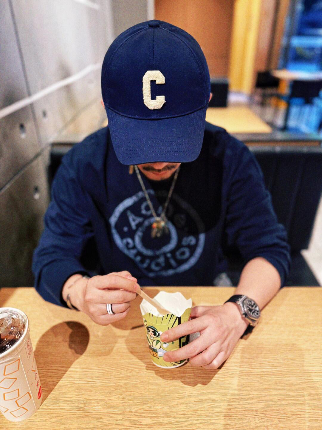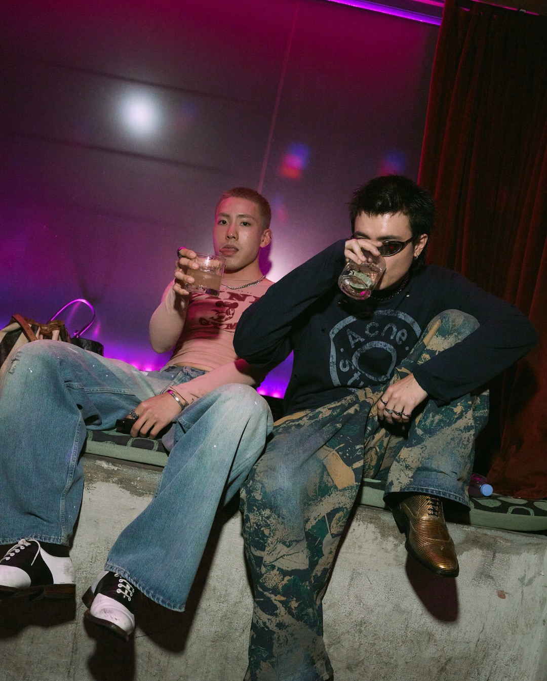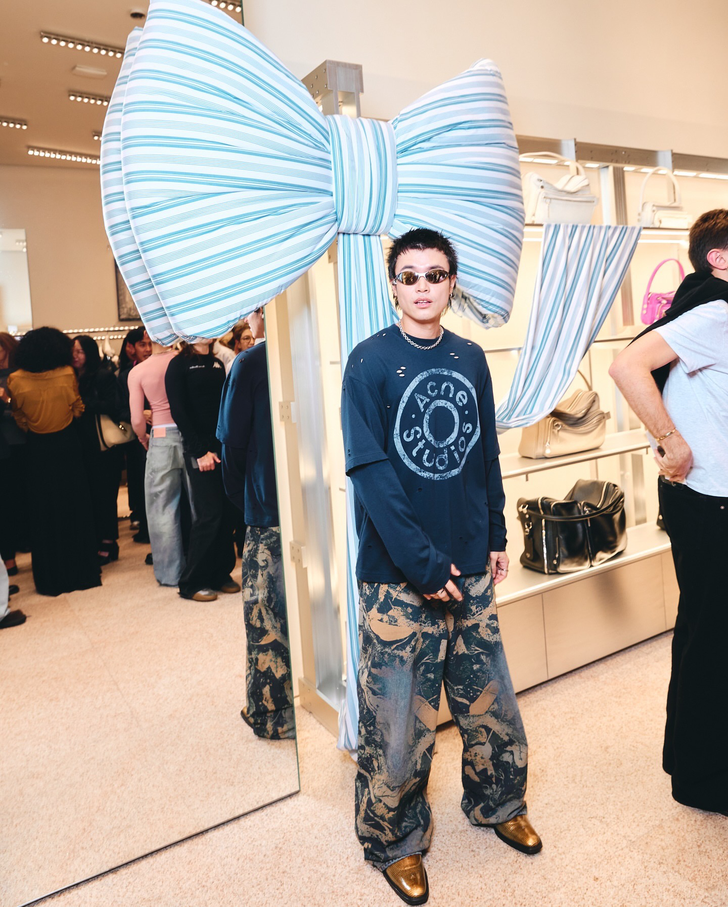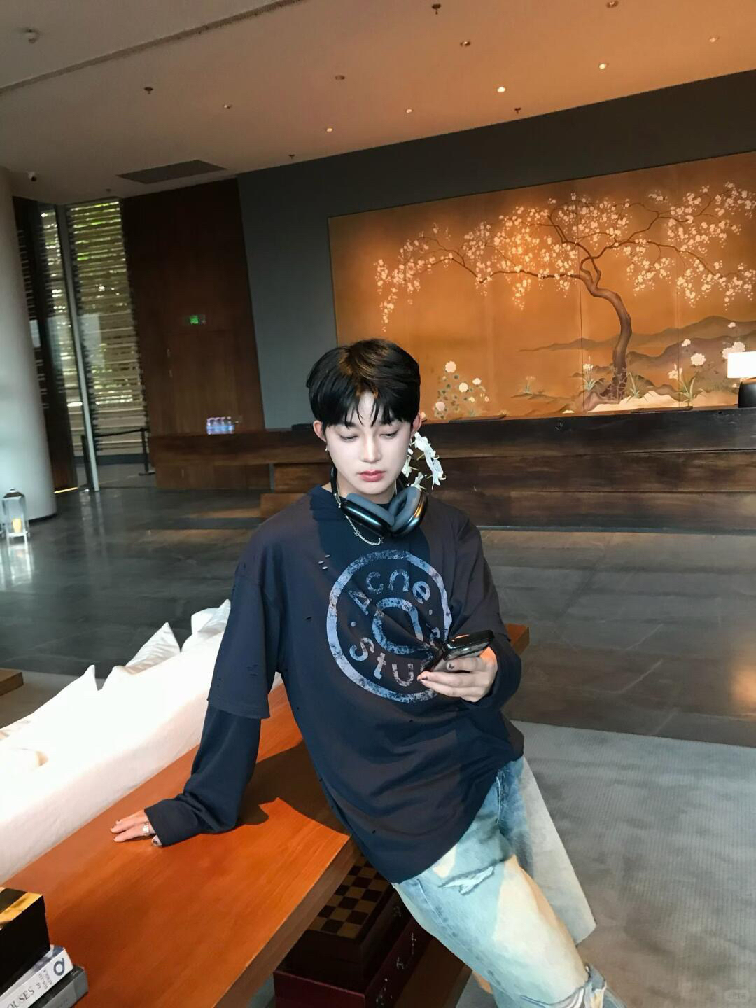 深蓝色主调 搭配胸前ac印花 灵感来自牛仔裤铆钉元素 很复古时尚