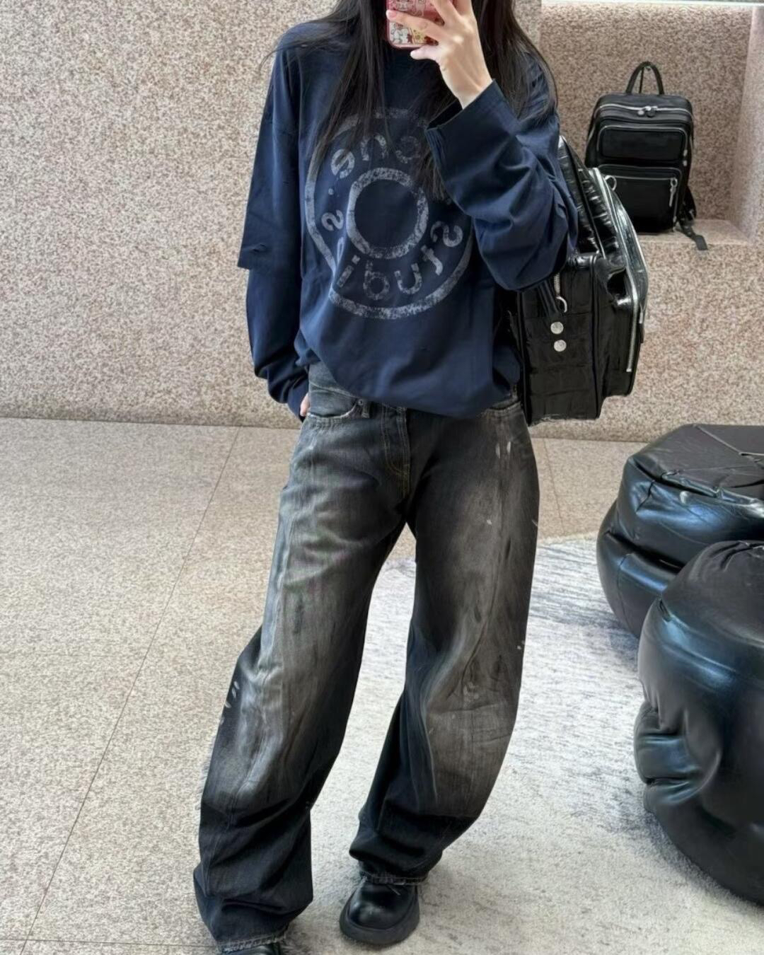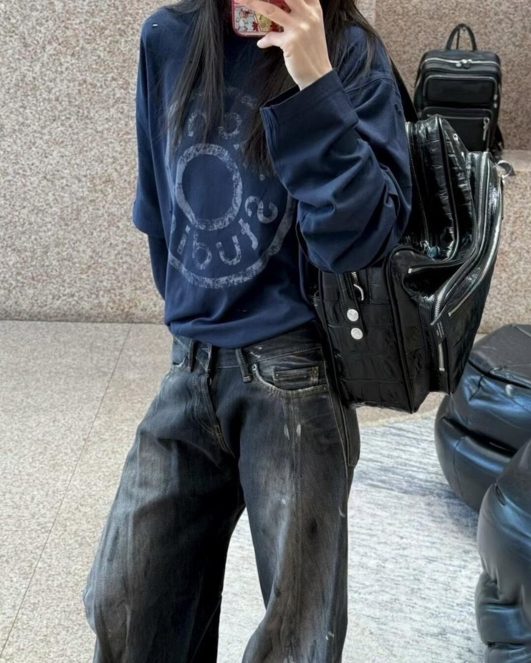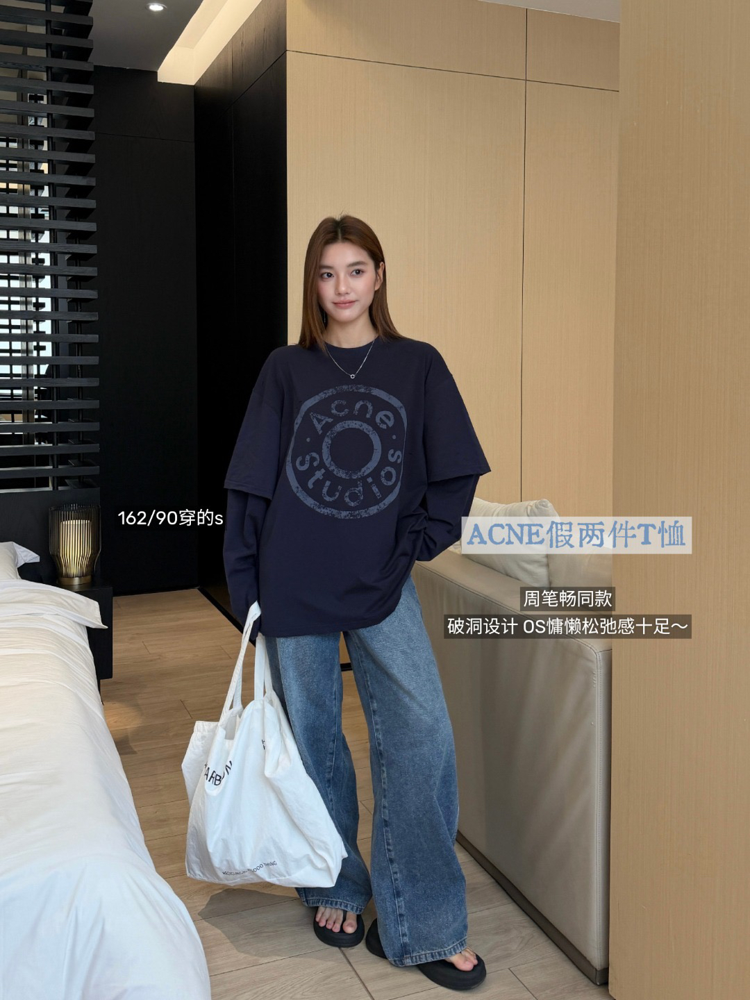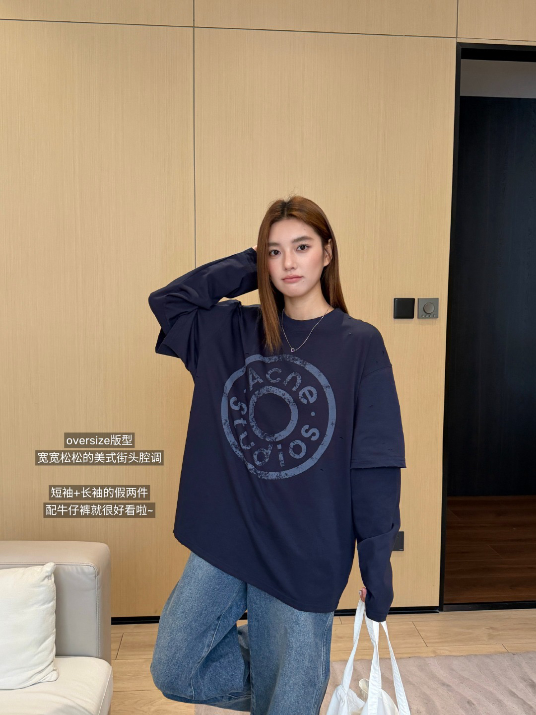 周笔畅同款ACN*E假两件长袖T 复古街头 慵懒松弛感十足 上身美呆啦~