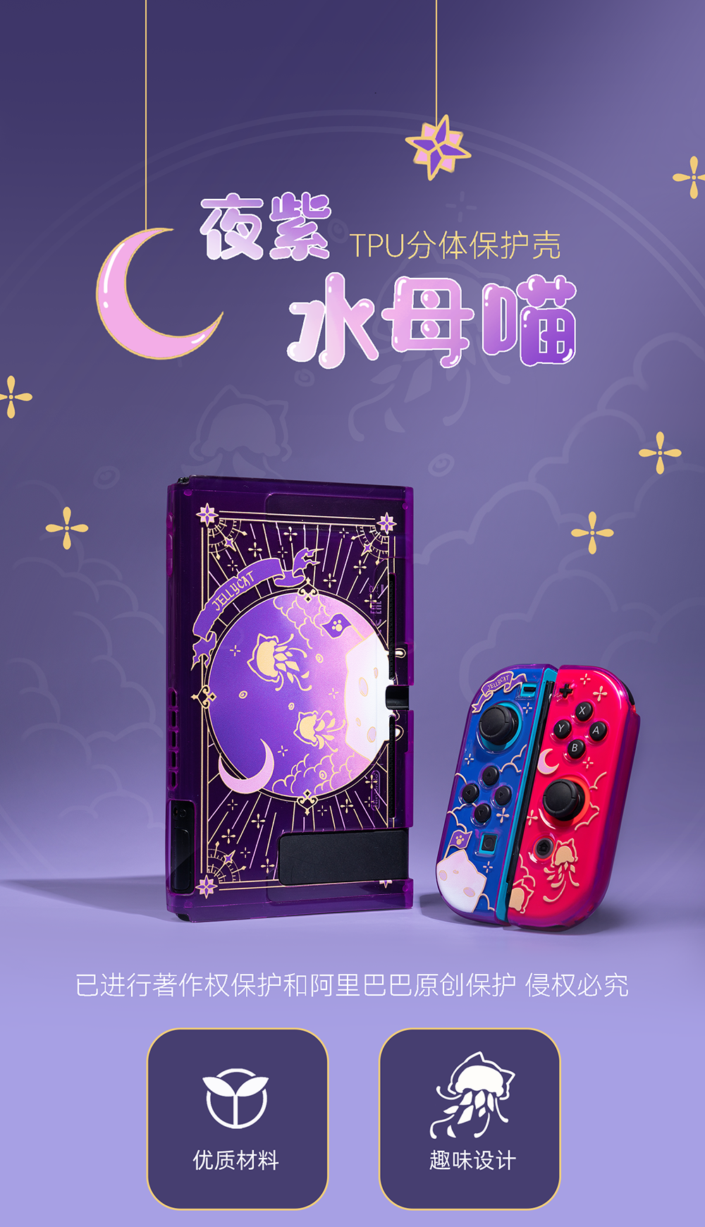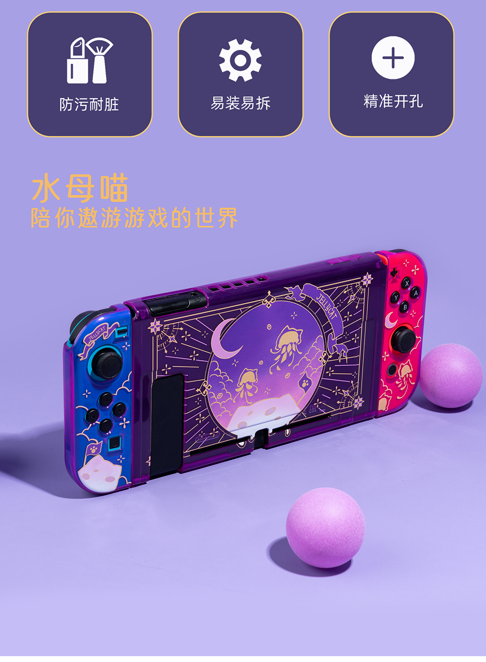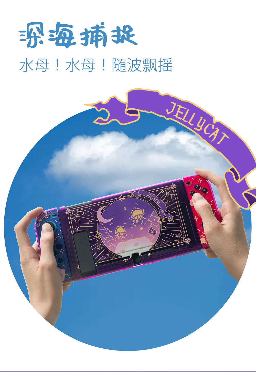 ★ Switch配件 极想 NS续航版主机 喵水母 TPU软壳 透明分体保护套