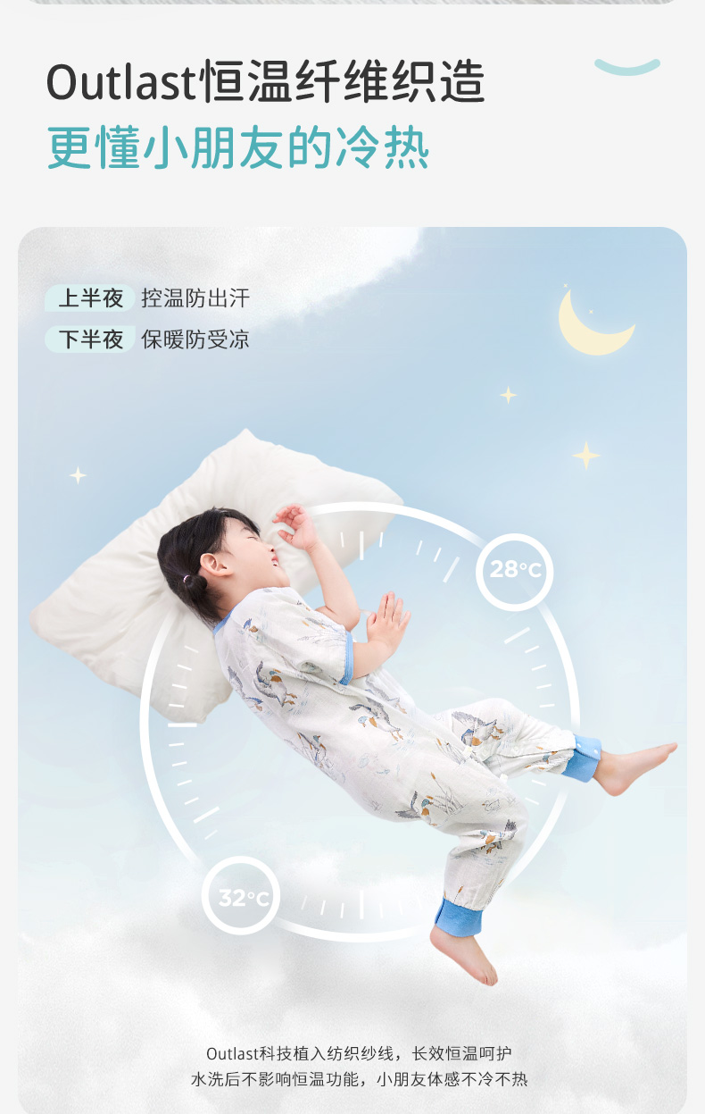 i-baby outlast恒温婴幼儿竹棉纱睡袋 【珍稀国宝系列】宝宝分腿睡袋 儿童睡衣秋季草珊瑚