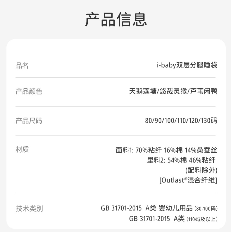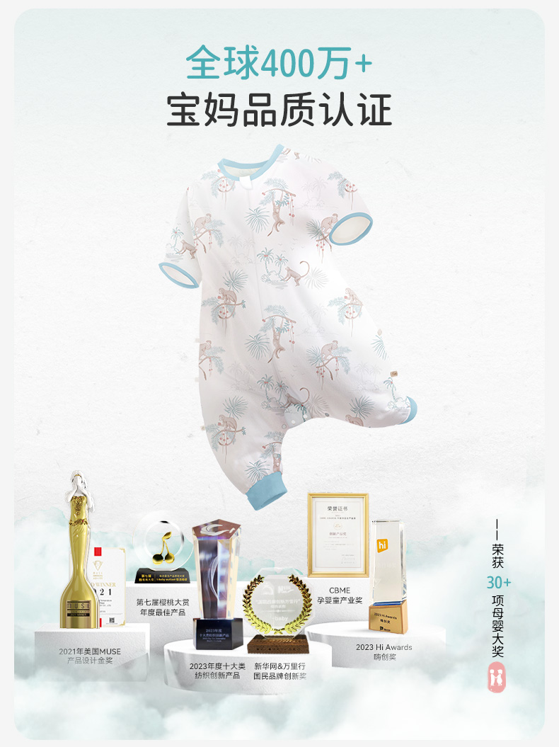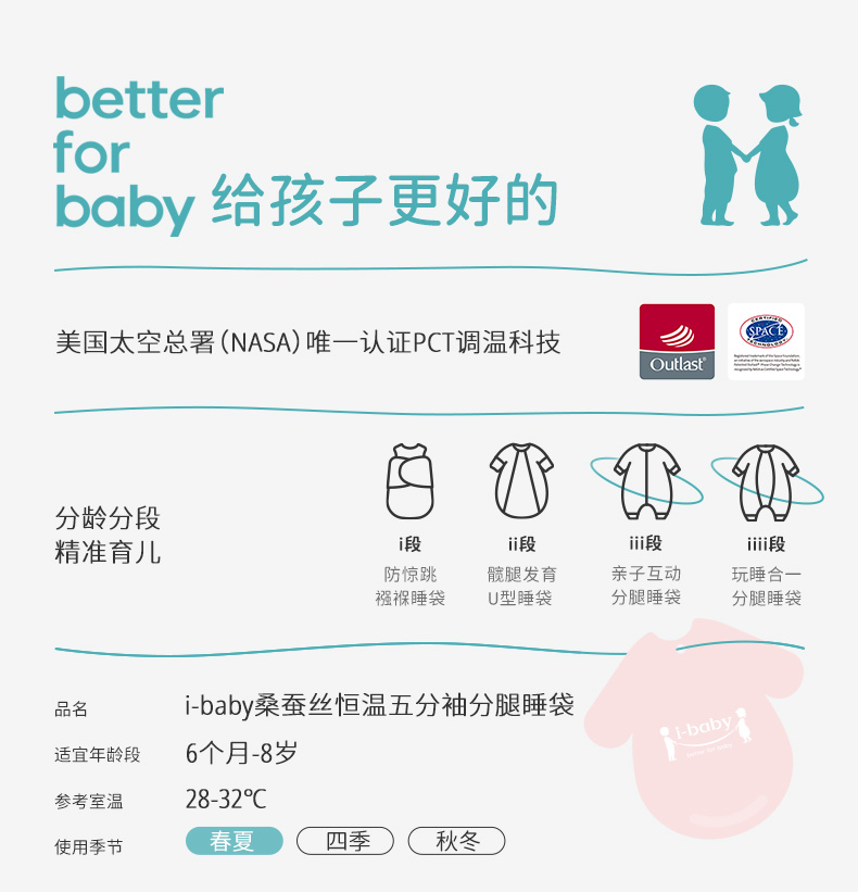 i-baby/英伦宝贝春夏桑蚕丝恒温五分袖分腿睡袋