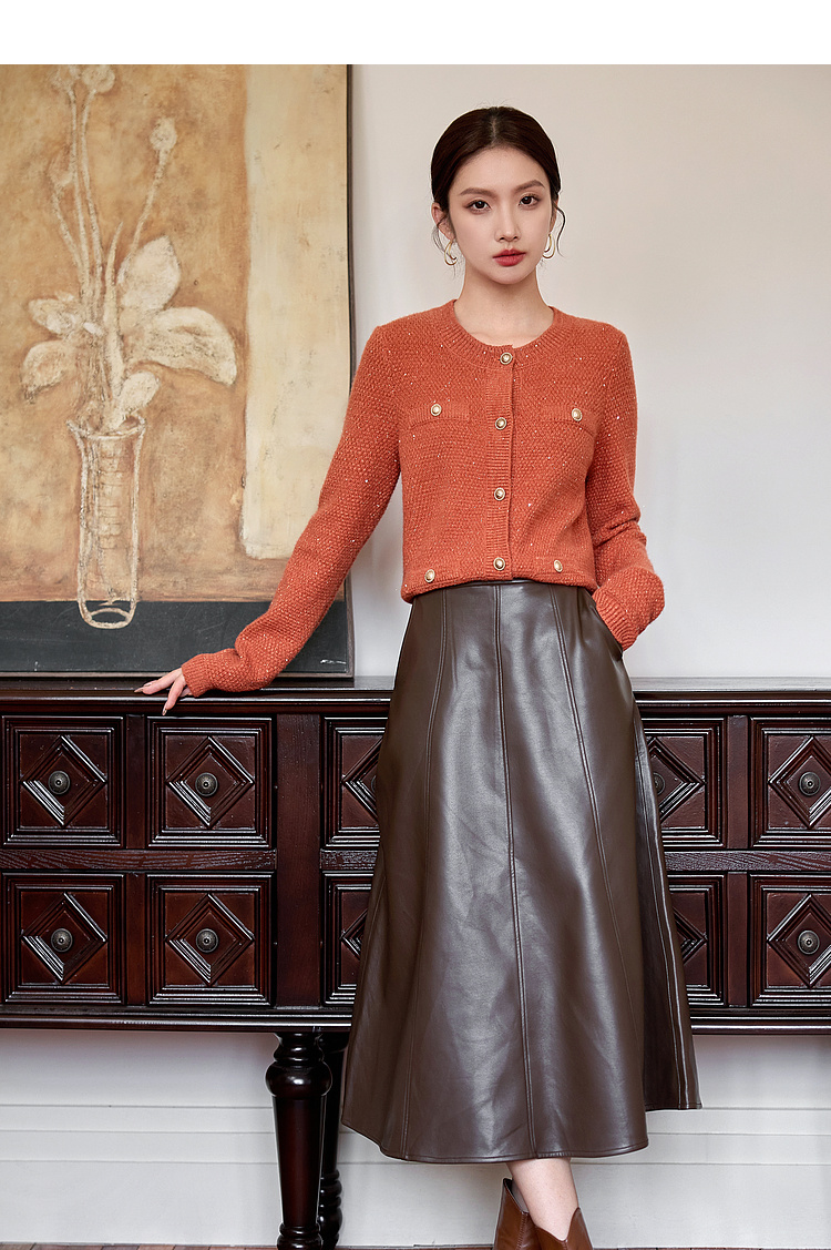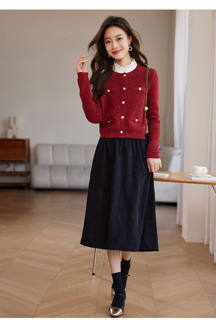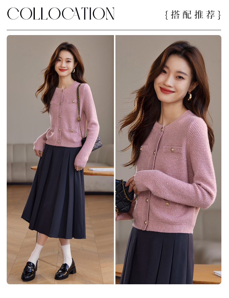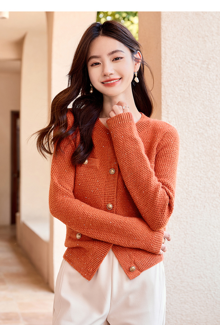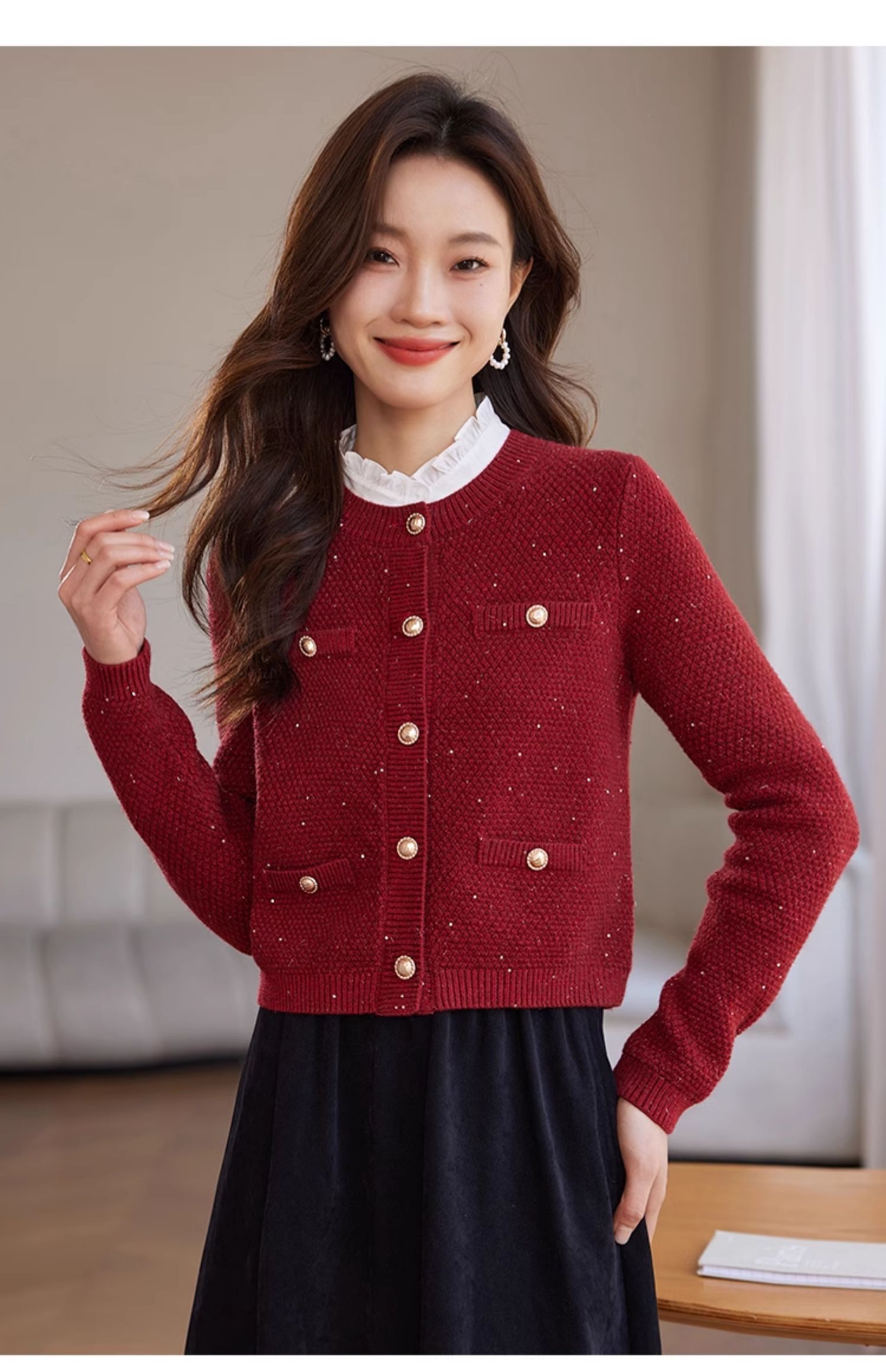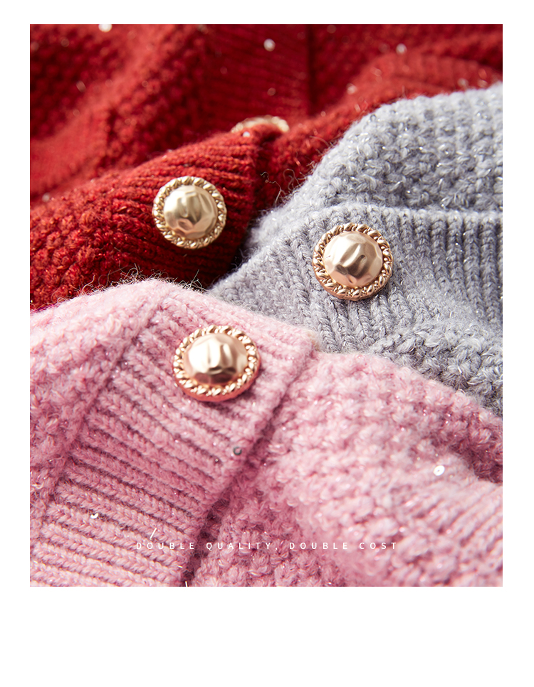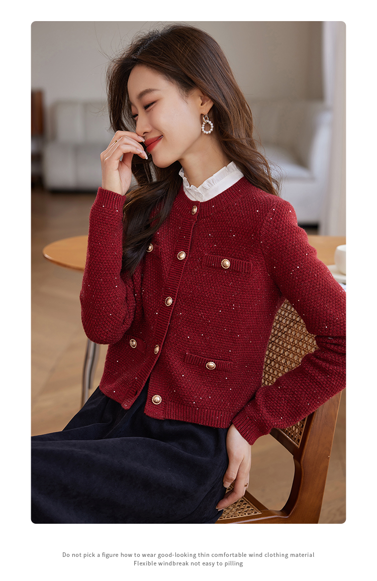 【年终特卖】熙世界小香风复古红色毛衣开衫女2025秋冬新款时尚银丝针织短外套