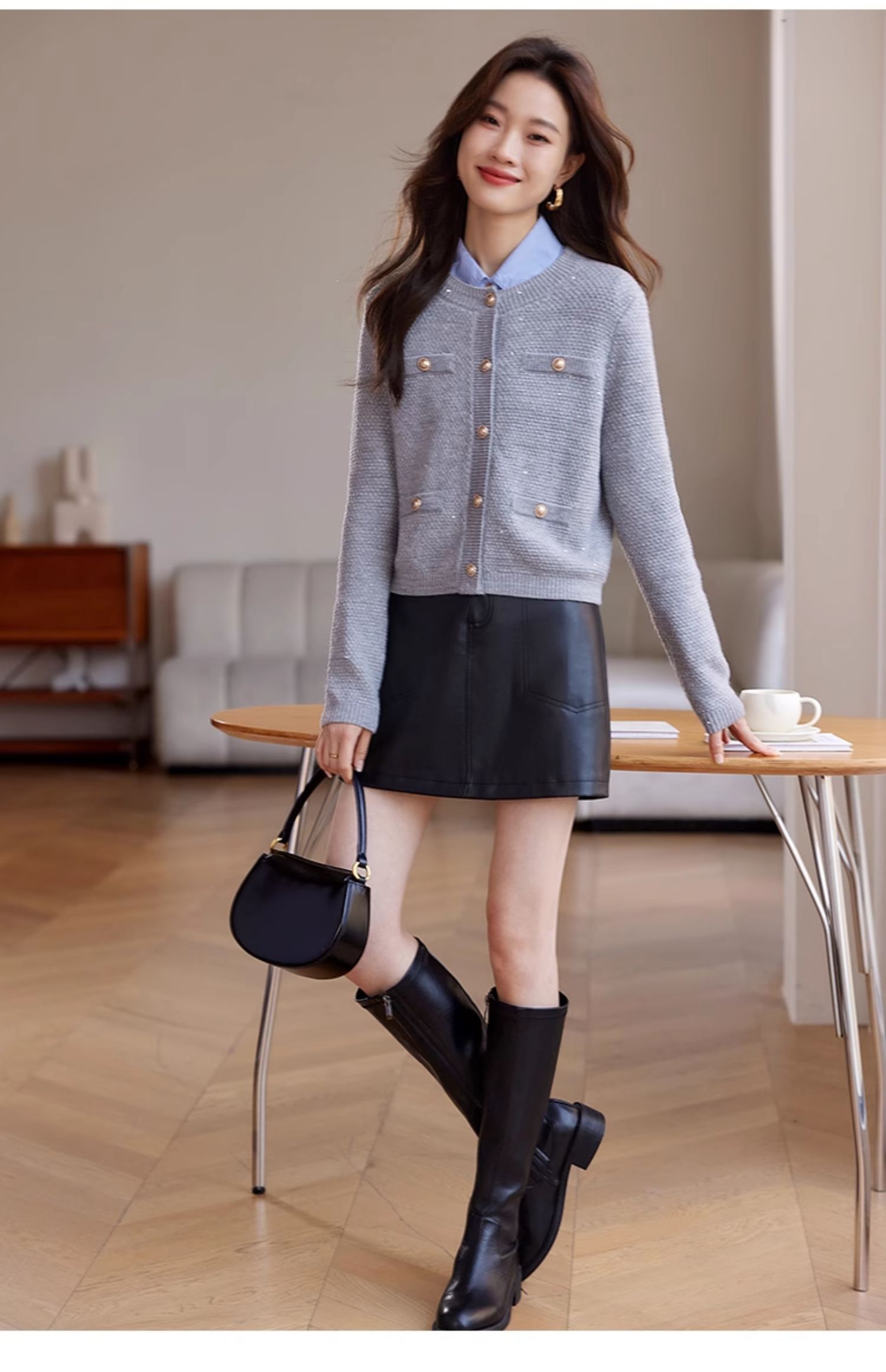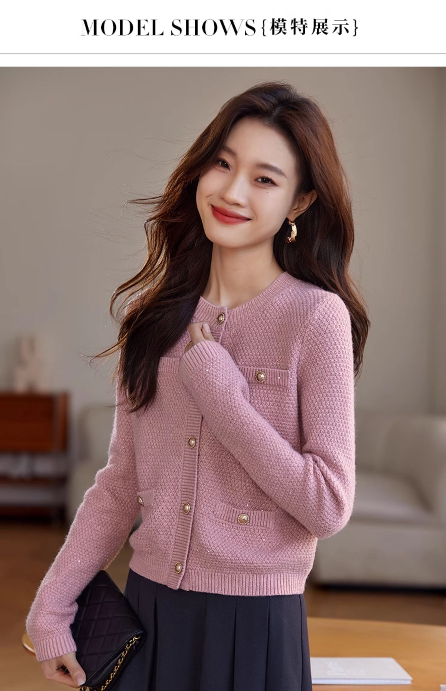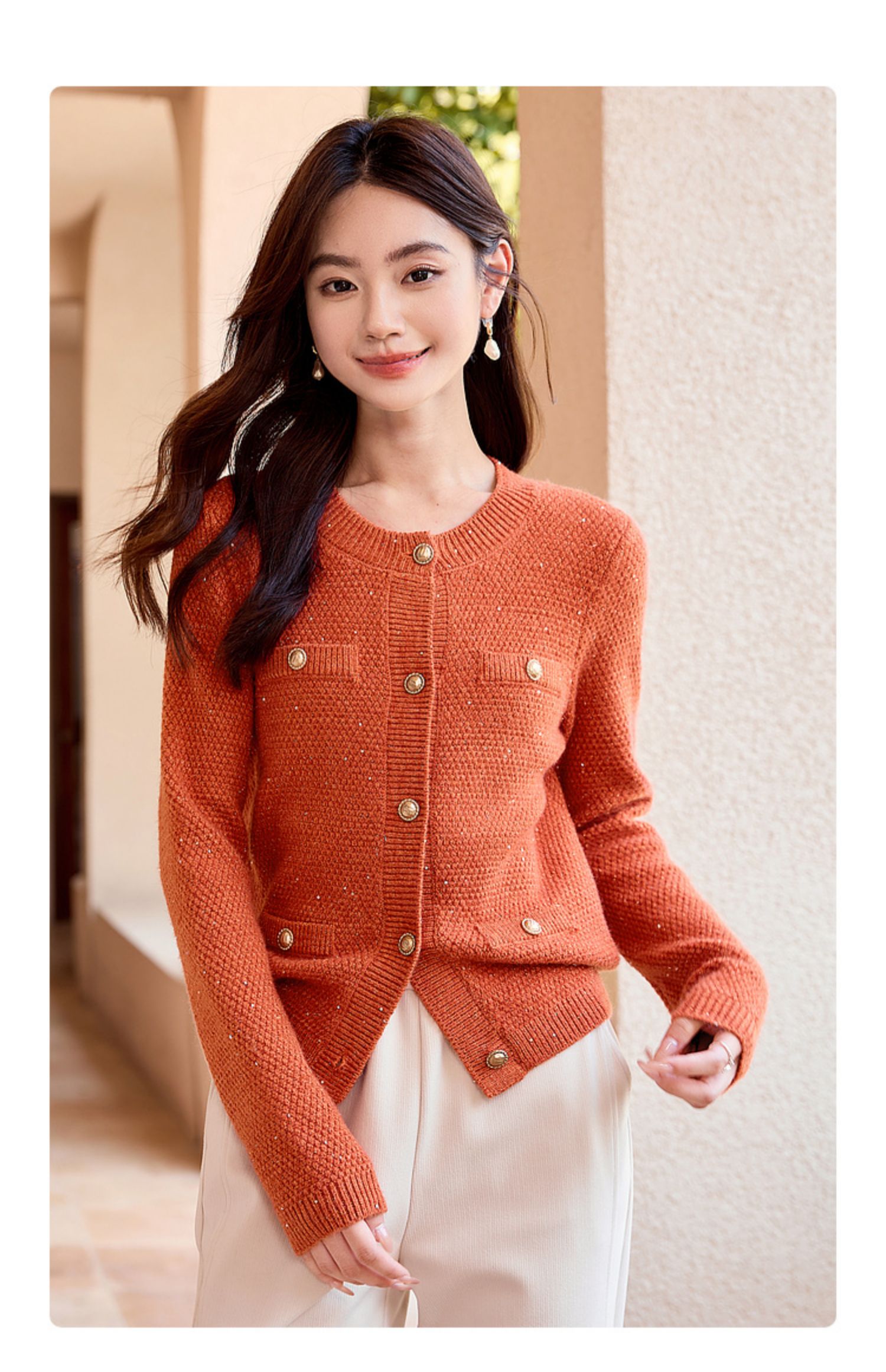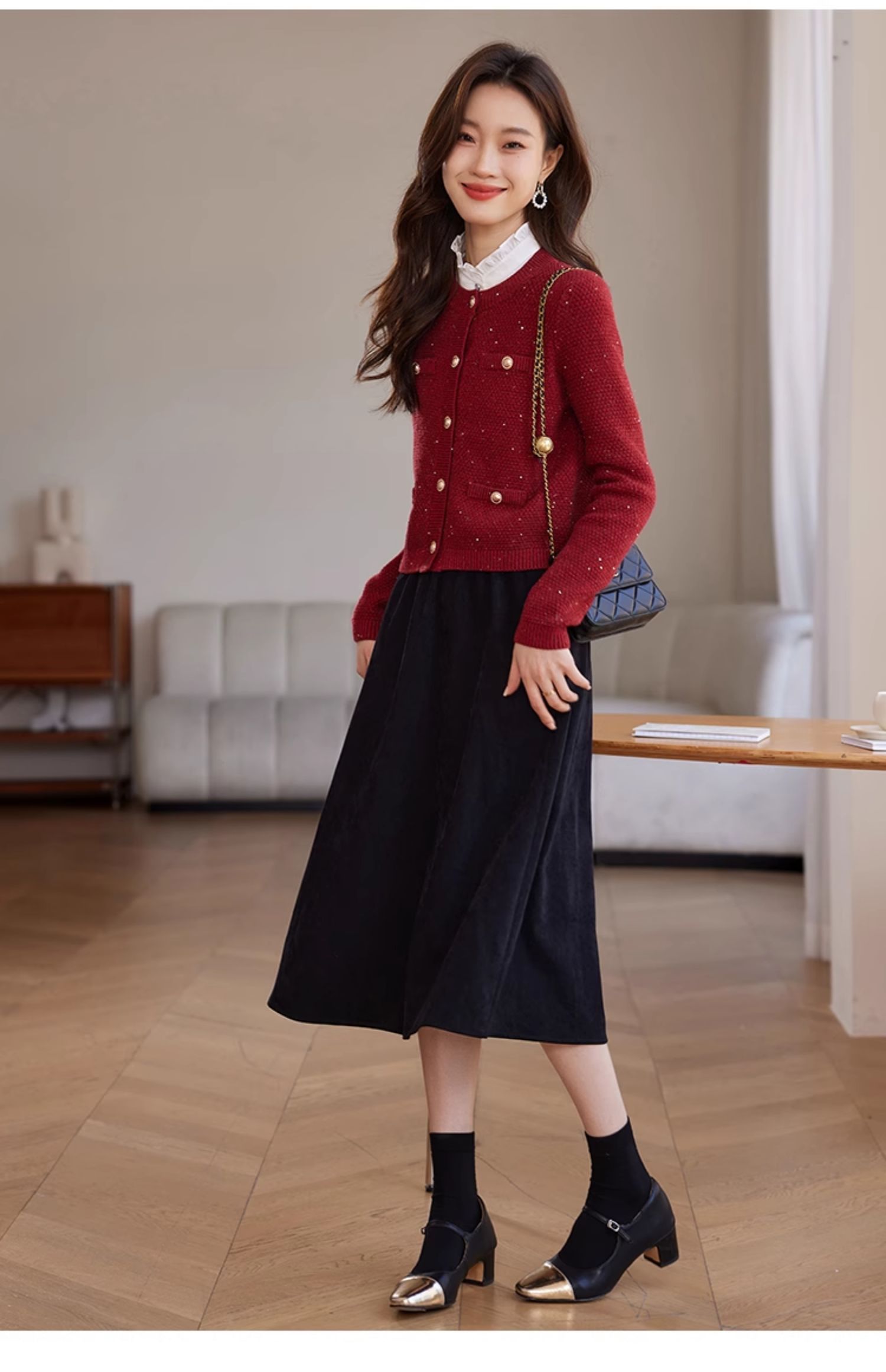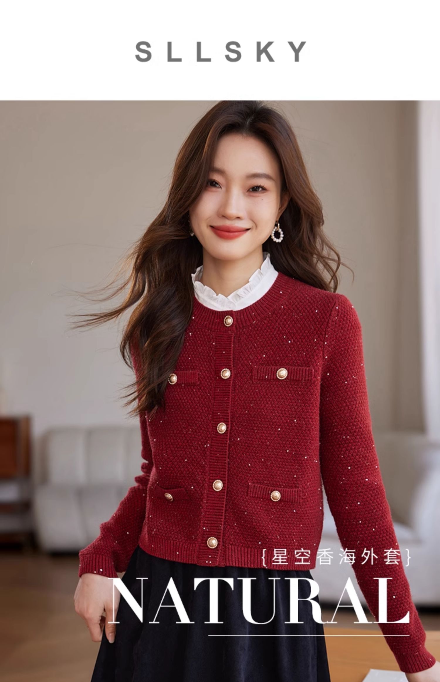 【年终特卖】熙世界小香风复古红色毛衣开衫女2025秋冬新款时尚银丝针织短外套