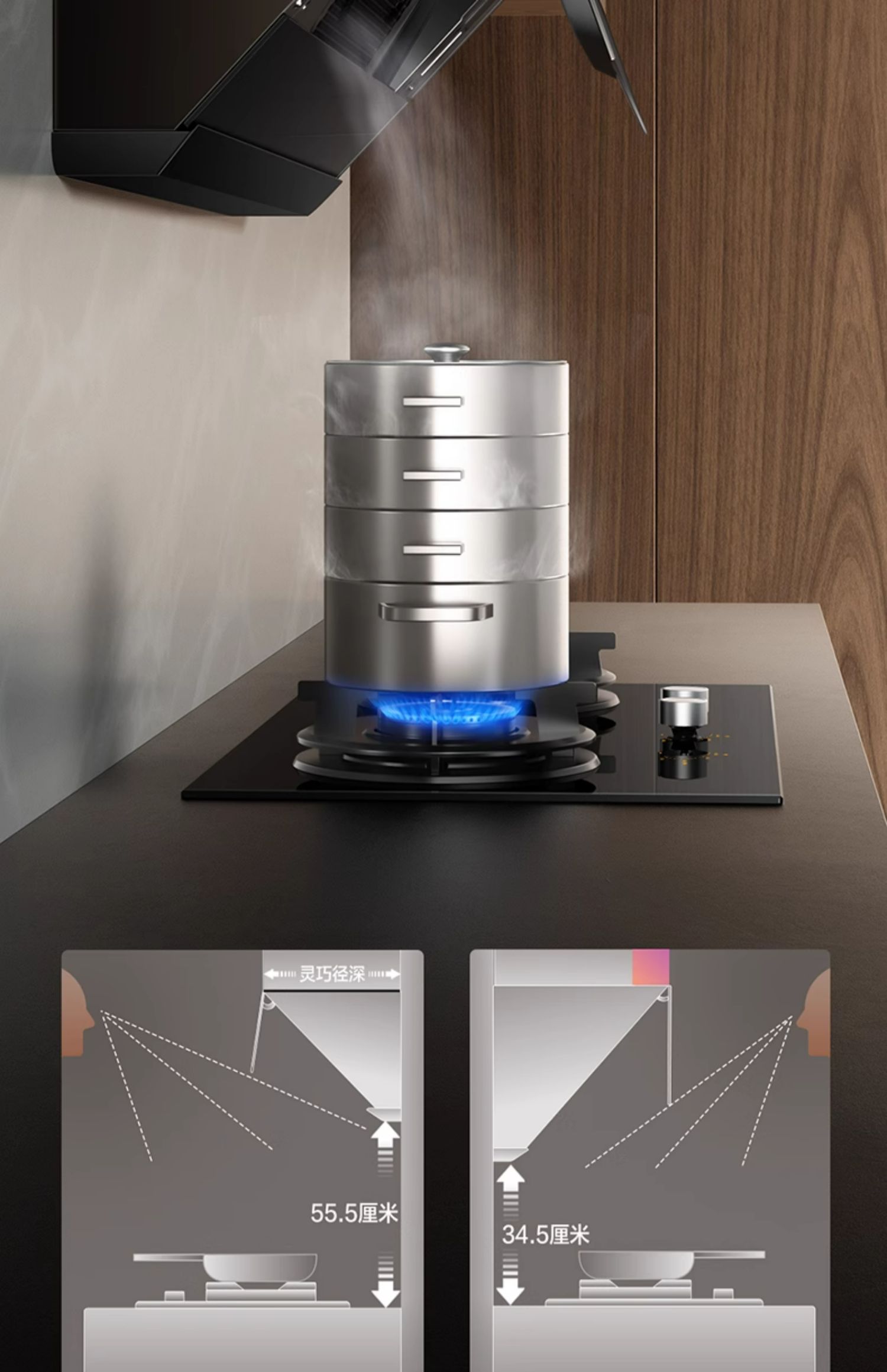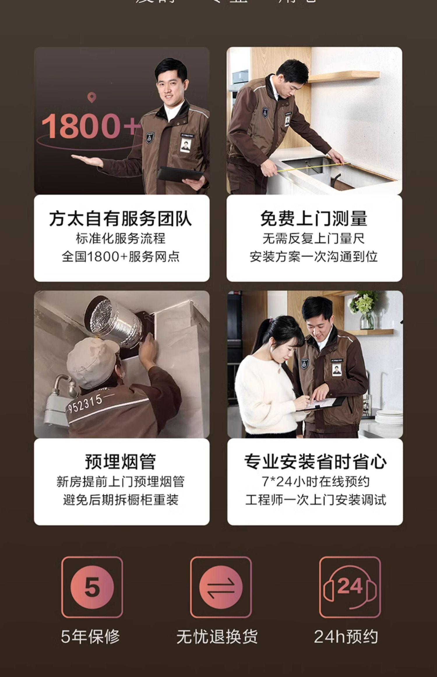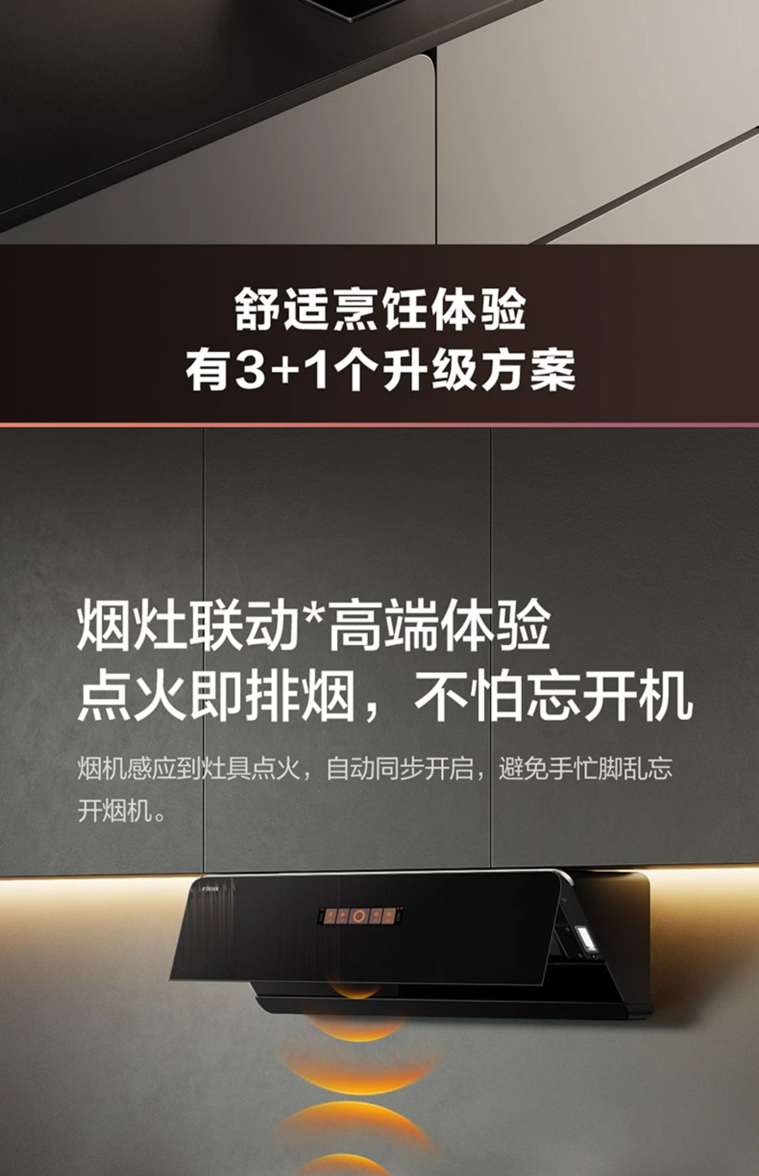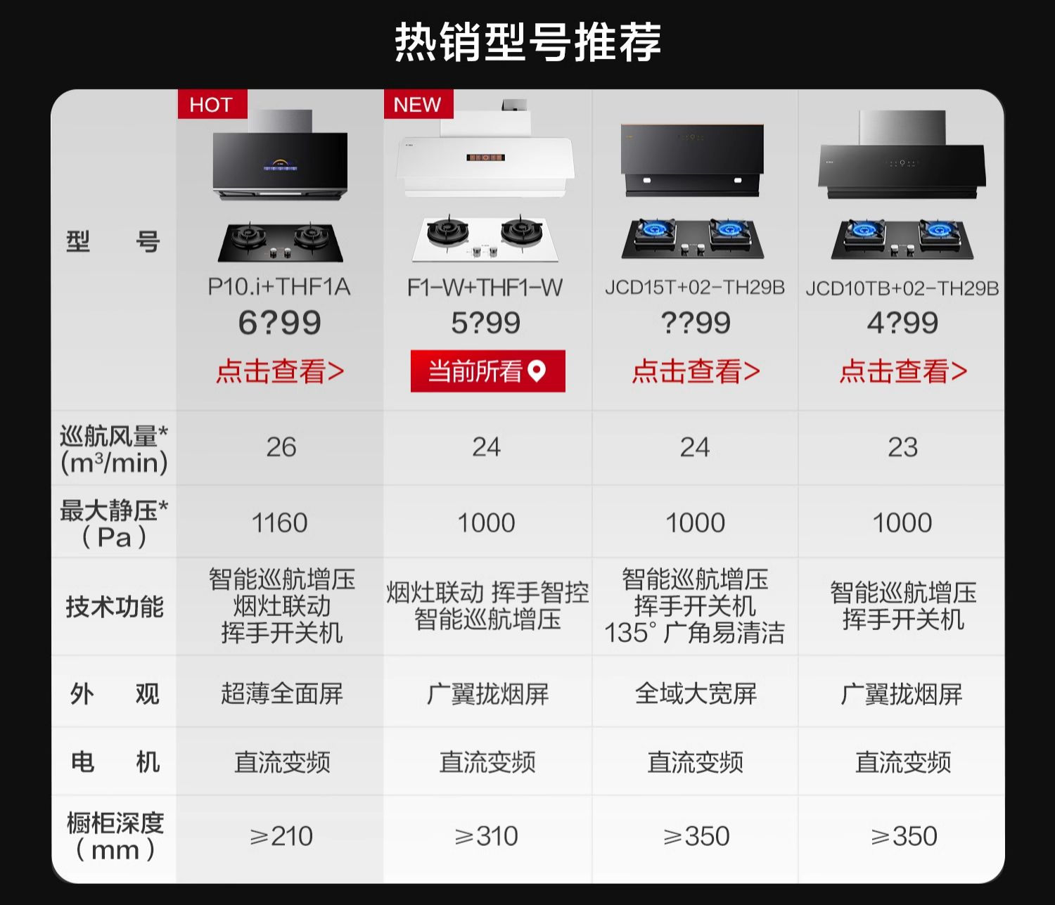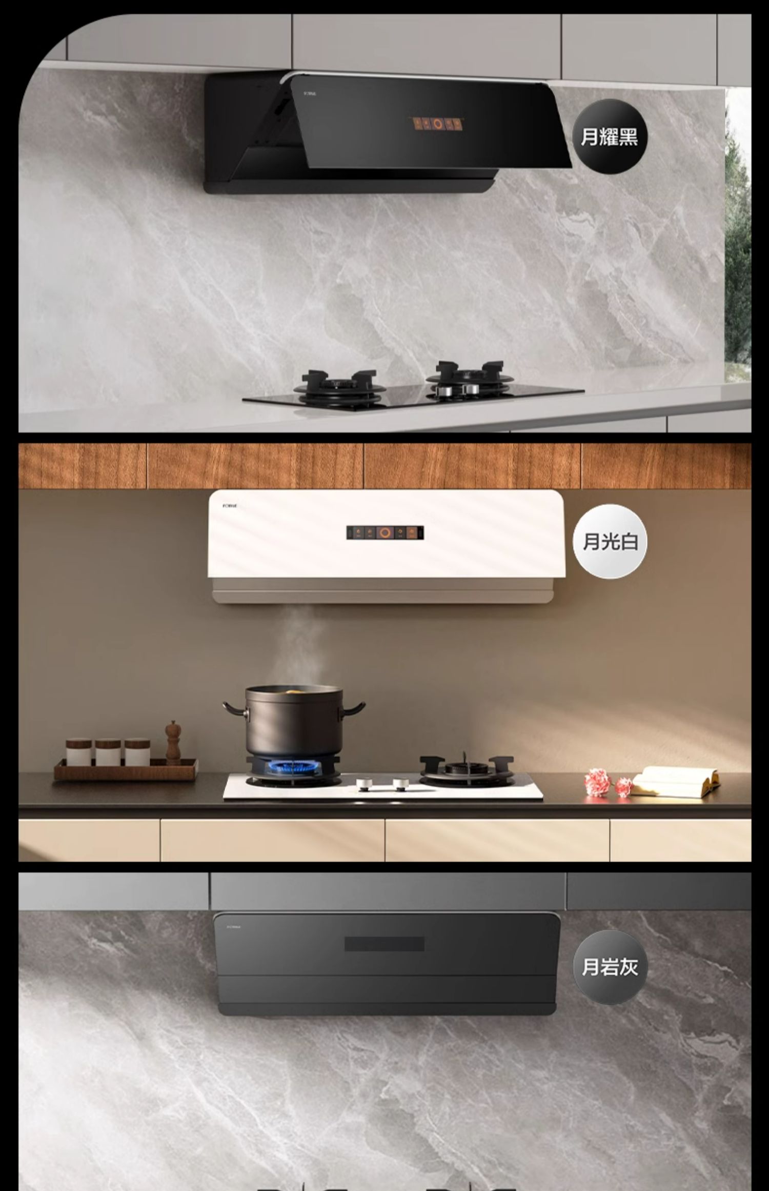 方太新月F1-W+THF1-W变频24m³巡航风量烟灶联动套装挥手开关家用白色侧吸油烟机燃气灶套餐5.0kw官方正品