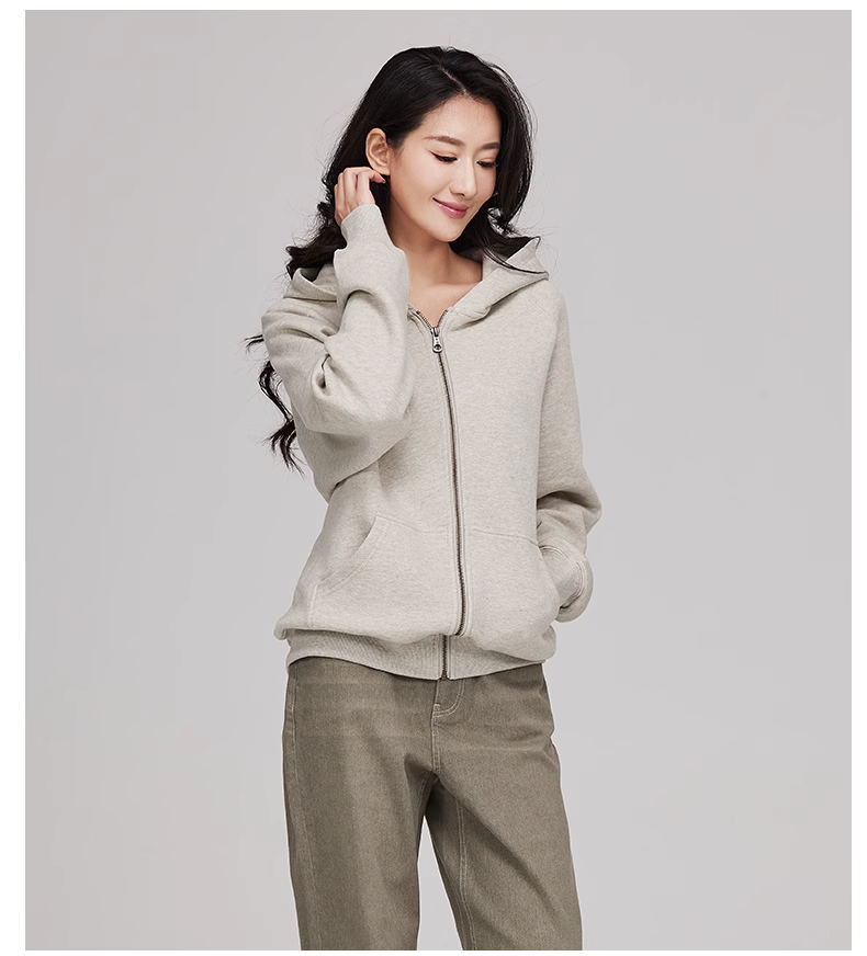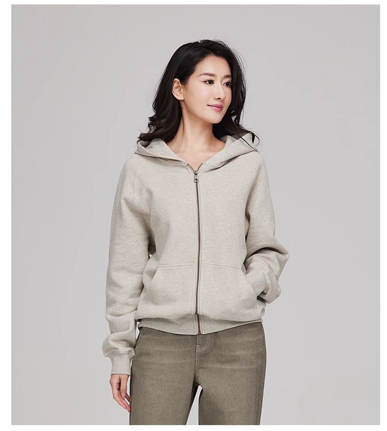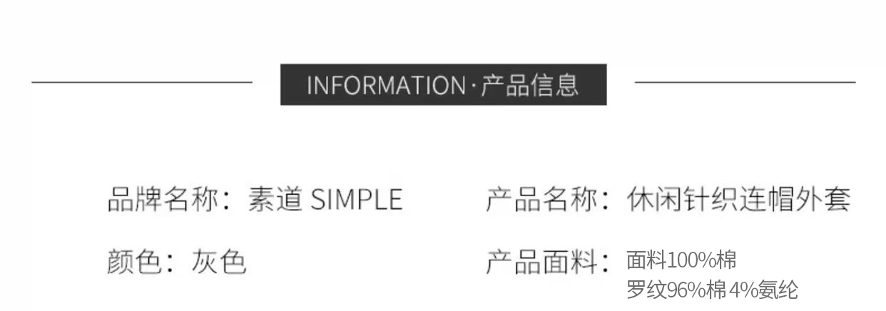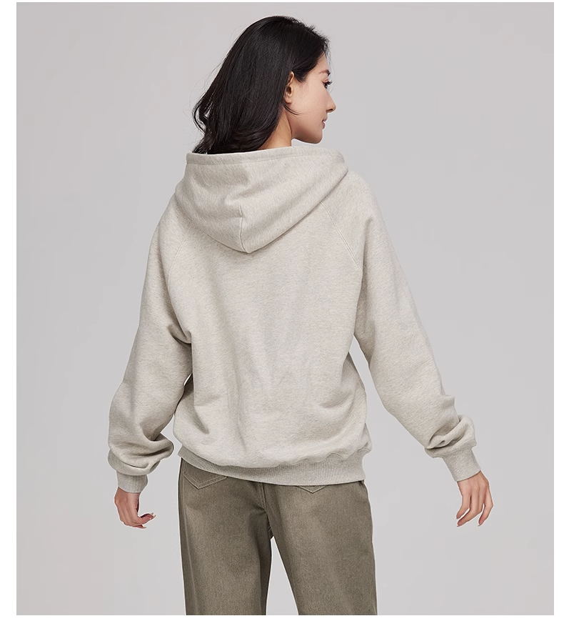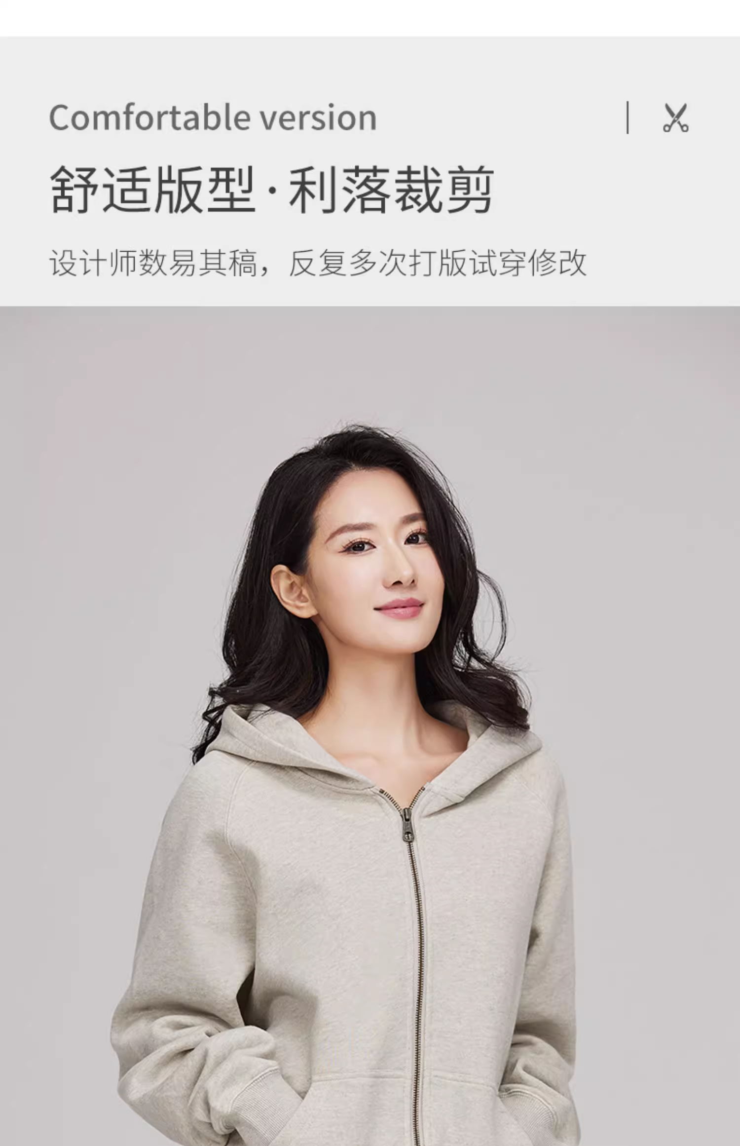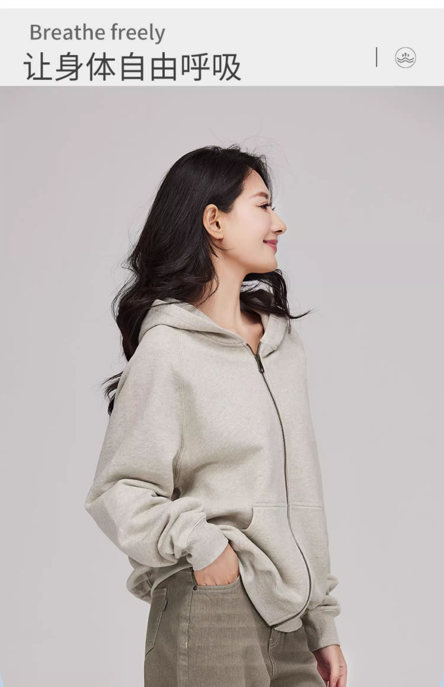 设计理念:这款男女连帽卫衣外套,宽松的版型,随性自由,休闲百搭,满足日常穿搭、运动健身的需求。开衫连帽的设计,插肩袖的款式,穿着舒适健康又时尚,纯灰色更显高级,袖口的九叠篆印花,国潮设计元素(是一种非常特别的篆书,原本是一种流行于宋代的“国朝官印”字体,唐宋多用于官印上面。九叠篆盛行于唐、宋、元、明。)