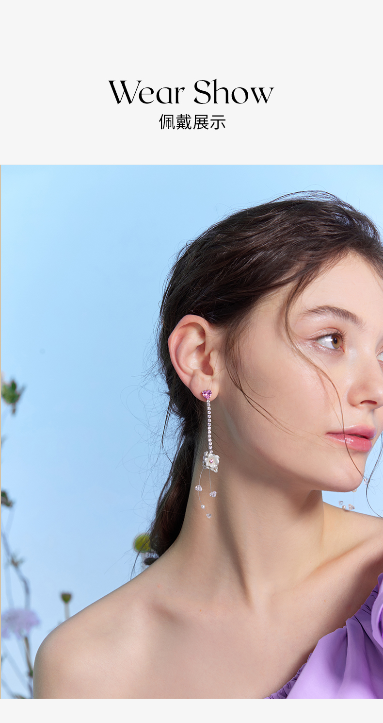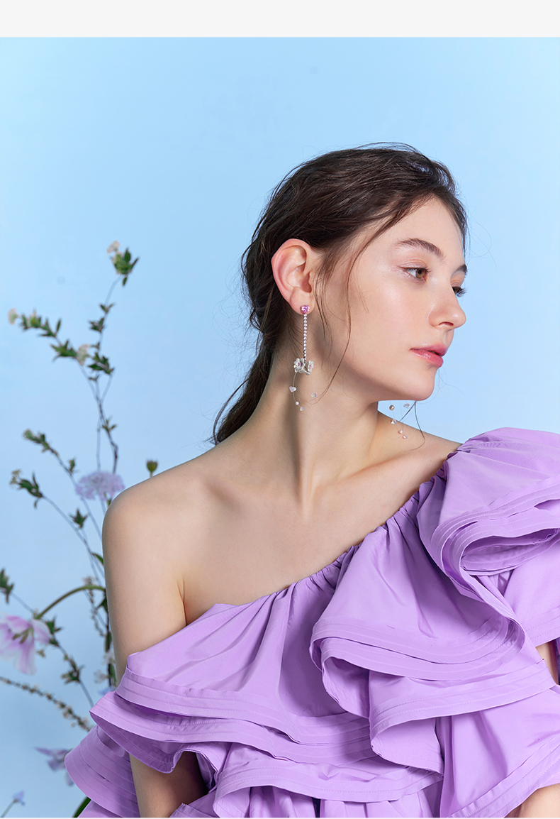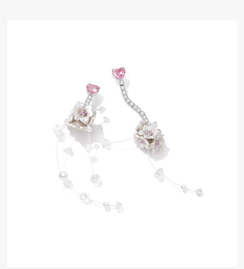 ZEGL设计师花园系列花朵流苏耳环人造珍珠耳钉925银针不对称耳饰
