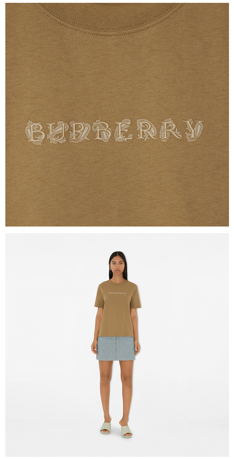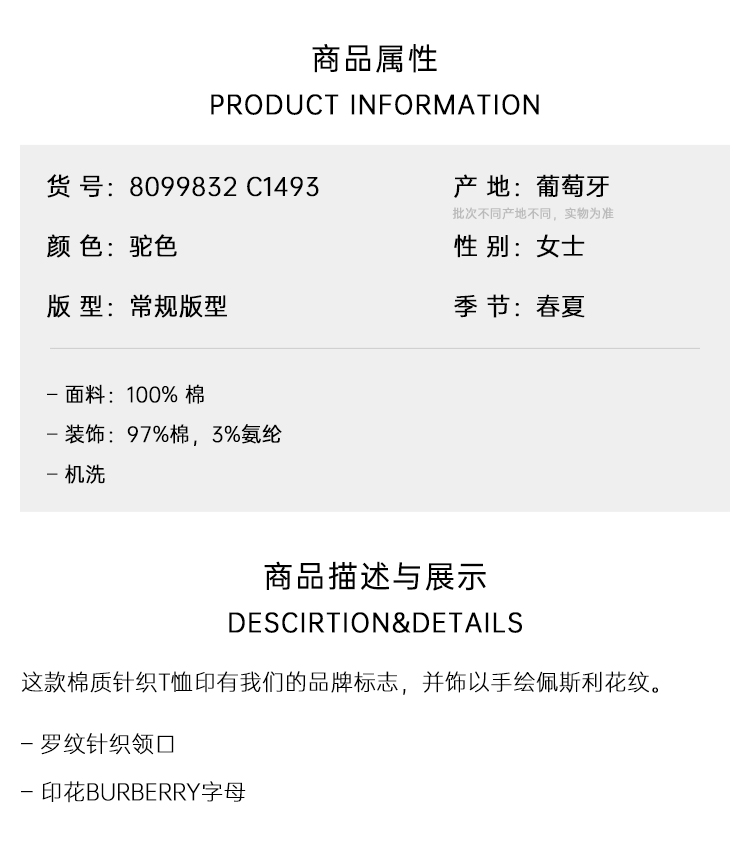 【一】BURBERRY 巴宝莉 女士佩斯利徽标棉质圆领短袖T恤 驼色 8099832 C1493