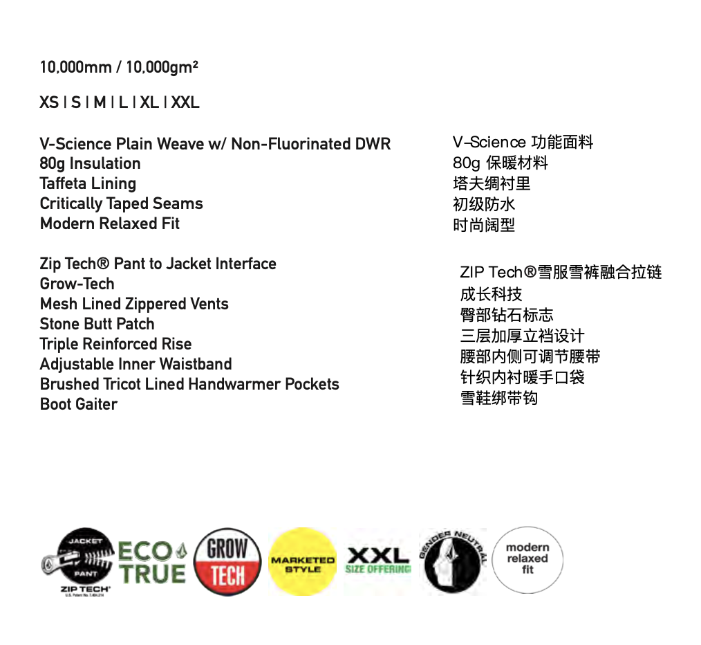 22/23VOLCOM雪服BARKLEY INS BIB OVERALL 儿童款