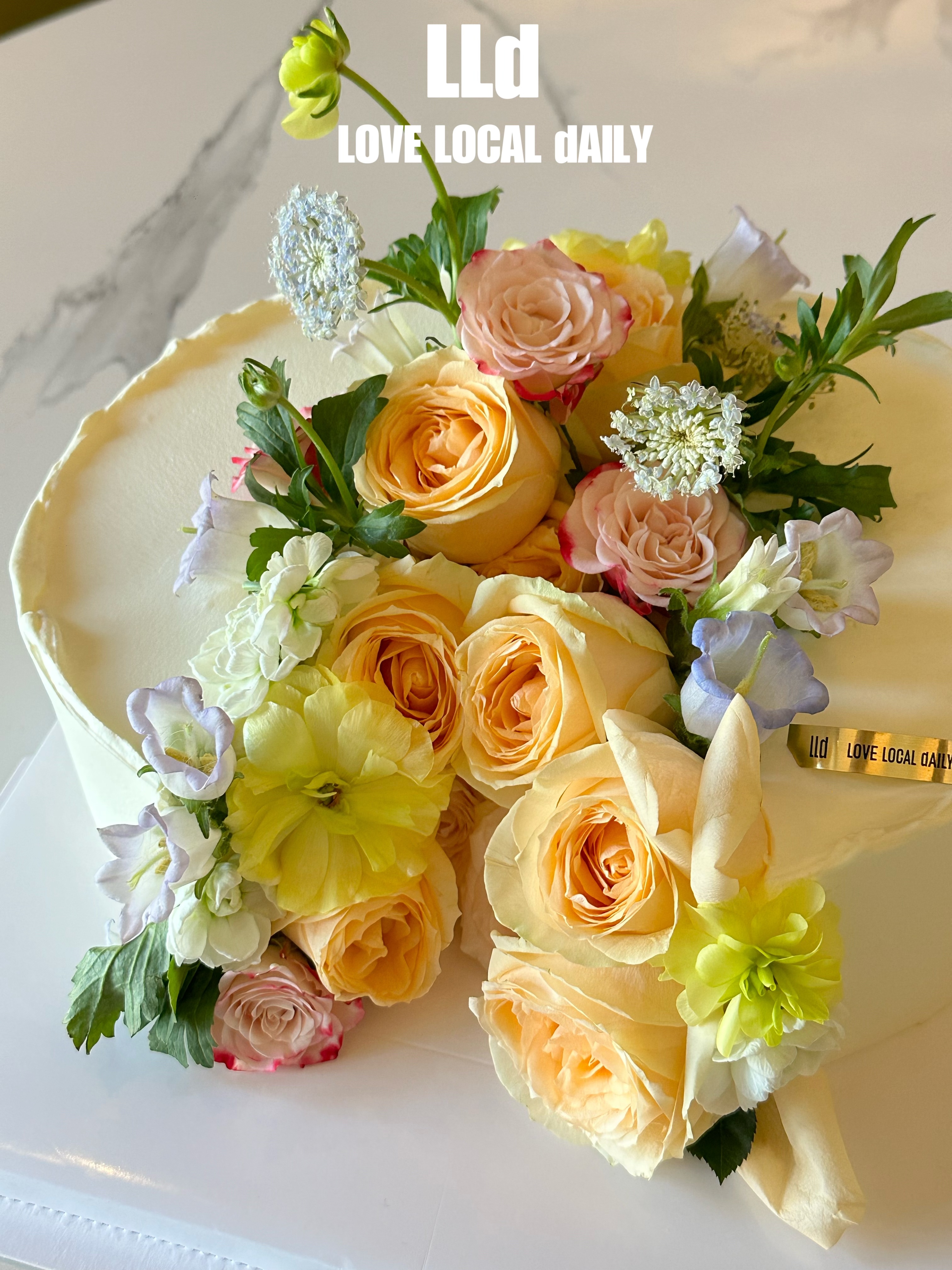 *鲜花不可食用,每一朵花会用保鲜膜或者锡纸把花根部包裹与蛋糕隔离开。 因每年四季每天花卉市场的鲜花不一样,每一朵大小形状也不太一样所以鲜花蛋糕只能保证色系一样。不能保证鲜花一模一样哦!