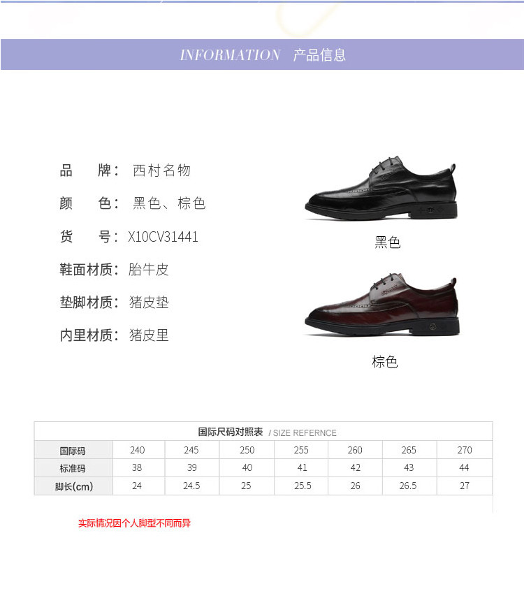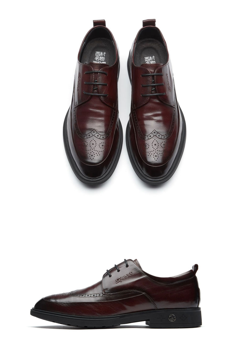 西村名物2021年商场同款英伦简约男士皮鞋尖头百搭男士商务休闲皮鞋男鞋X10CV31441