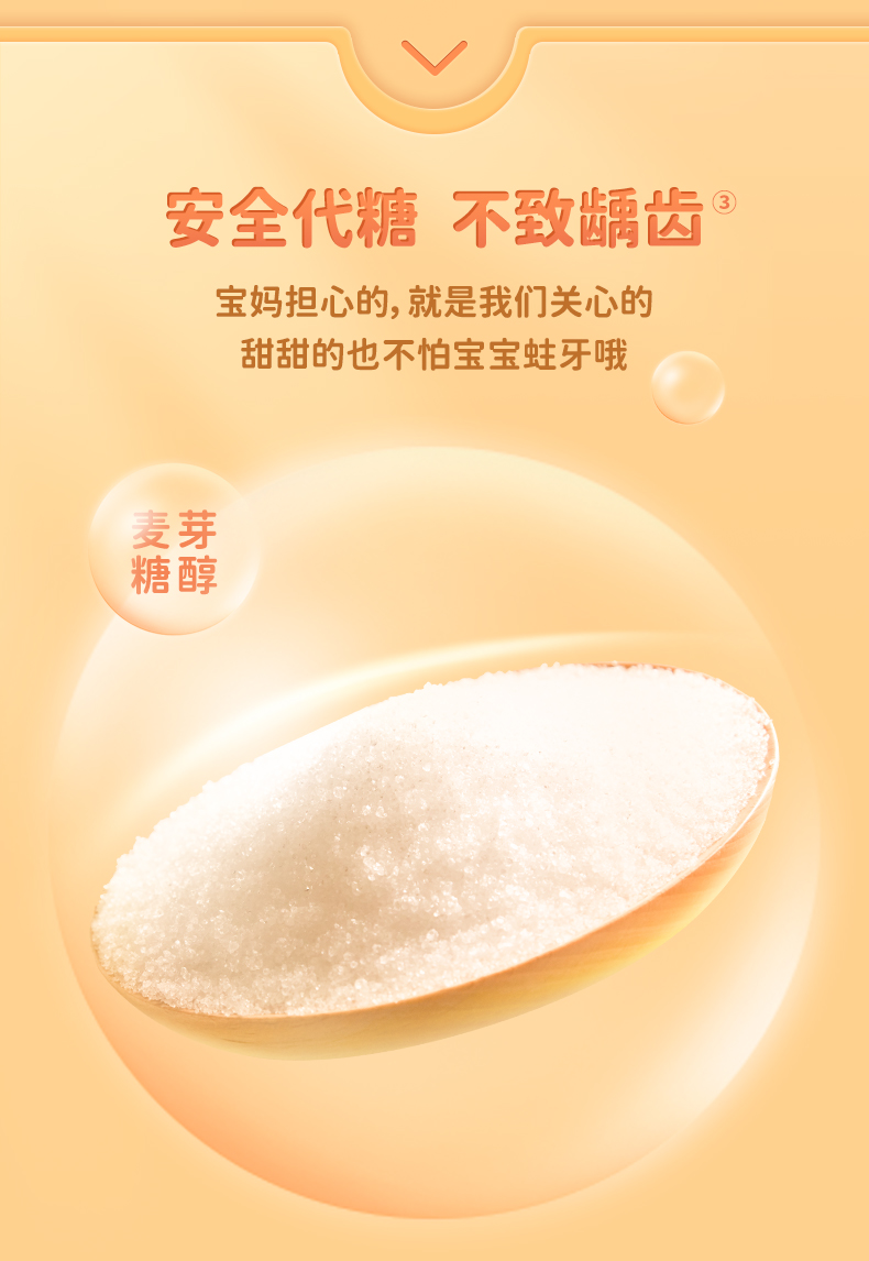 同时,使用的是健康代糖——麦芽糖醇调味,不致龋齿,不引起血糖波动,宝宝、老人都可以放心吃。